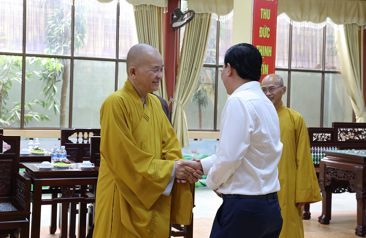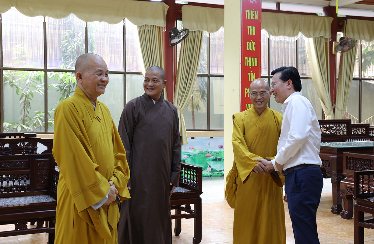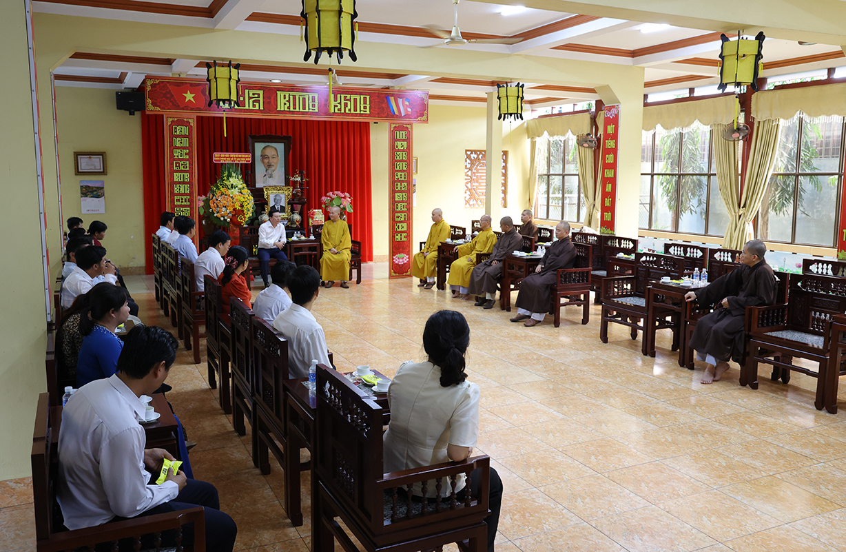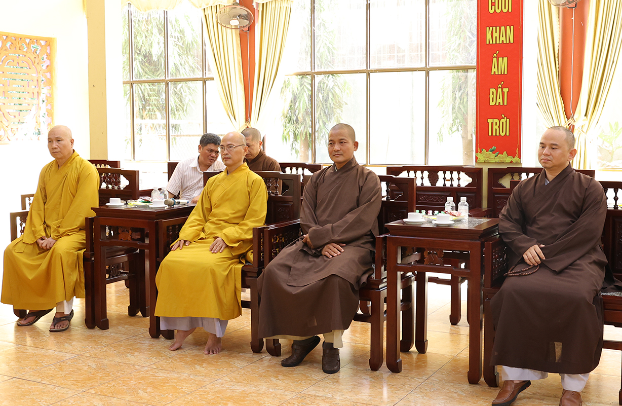 Tiếp đón phái đoàn có HT Thích Minh Thiện- Ủy viên HĐTSTƯ, Phó Ban Hoằng pháp trung ương, Trưởng BTS GHPGVN tỉnh Long An; TT Thích Lệ Trí- Ủy viên HĐTSTƯ, Phó BTS GHPGVN tỉnh Long An; TT Thích Đức Hoàng- Phó BTS GHPGVN tỉnh Long An; ĐĐ Thích Lệ Duyên- Phó BTS kiêm Chánh thư ký BTS GHPGVN tỉnh Long An;ĐĐ Thích Lệ Ngôn- Phó BTS, trưởng Ban Hoằng pháp GHPGVN tỉnh Long An cùng chư tôn đức trong thường trực Ban Trị sự Phật giáo tỉnh.