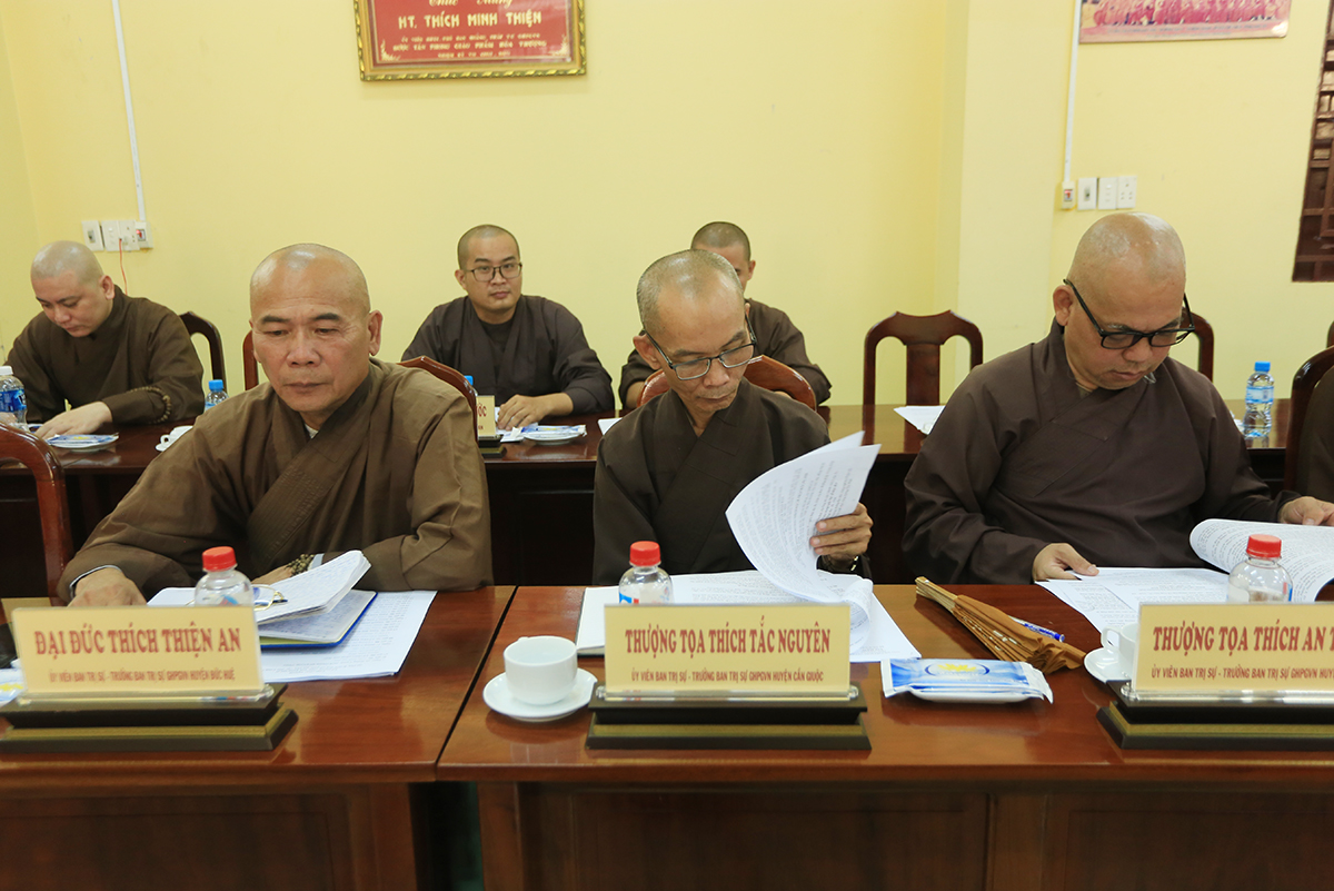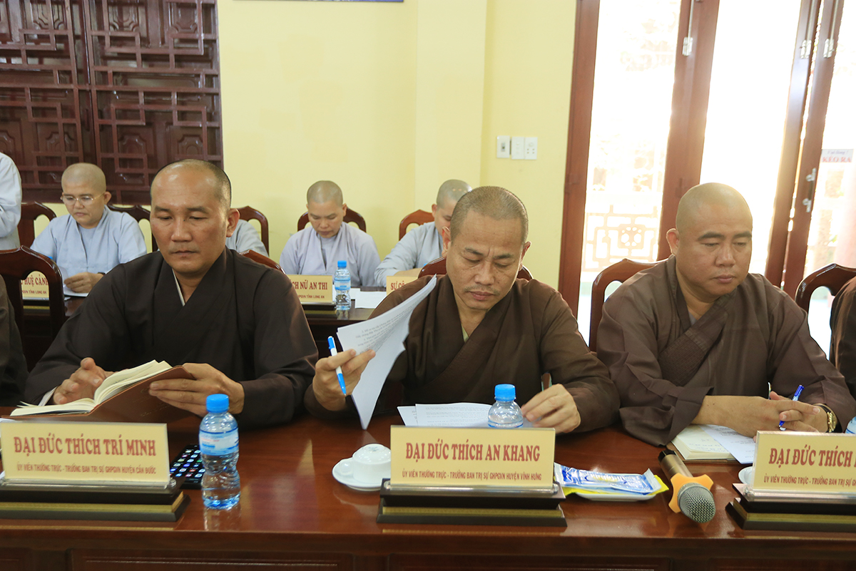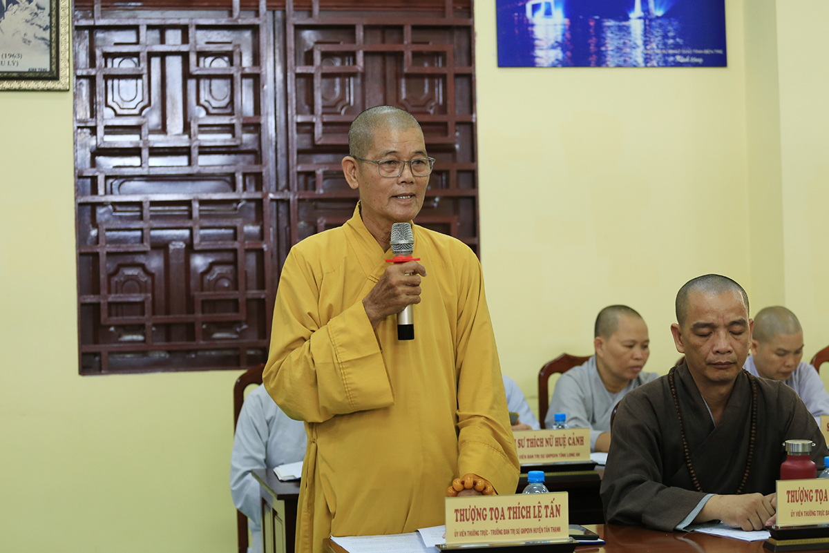 Buổi họp có nhiều ý kiến đóng góp của: TT. Thích Lệ Trí, TT. Thích Lệ Tấn, TT. Thích Tắc Nguyên, ĐĐ. Thích Lệ Ngôn, TT. Thích Tâm Hướng, ĐĐ. Thích An Khang, ĐĐ. Thích An Phúc,…