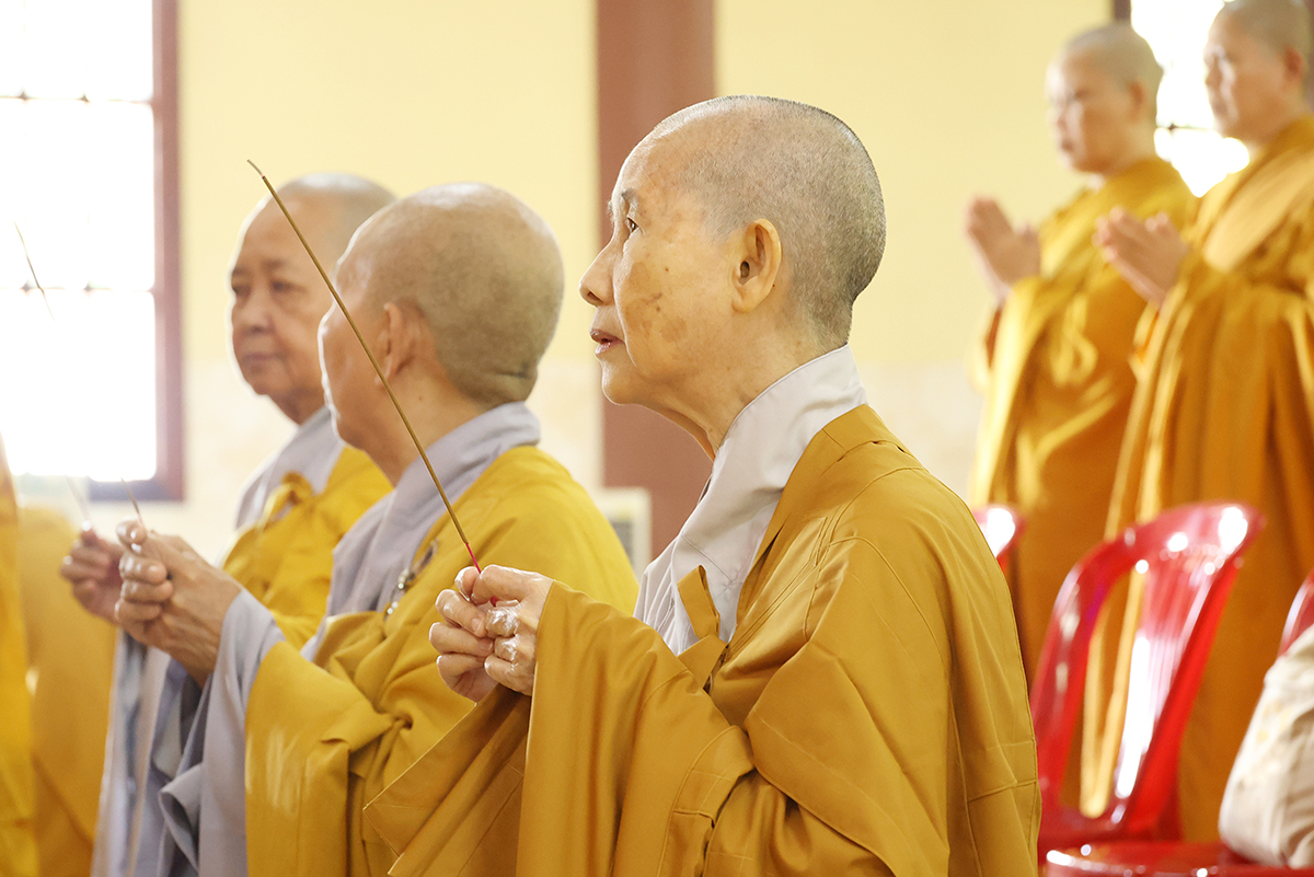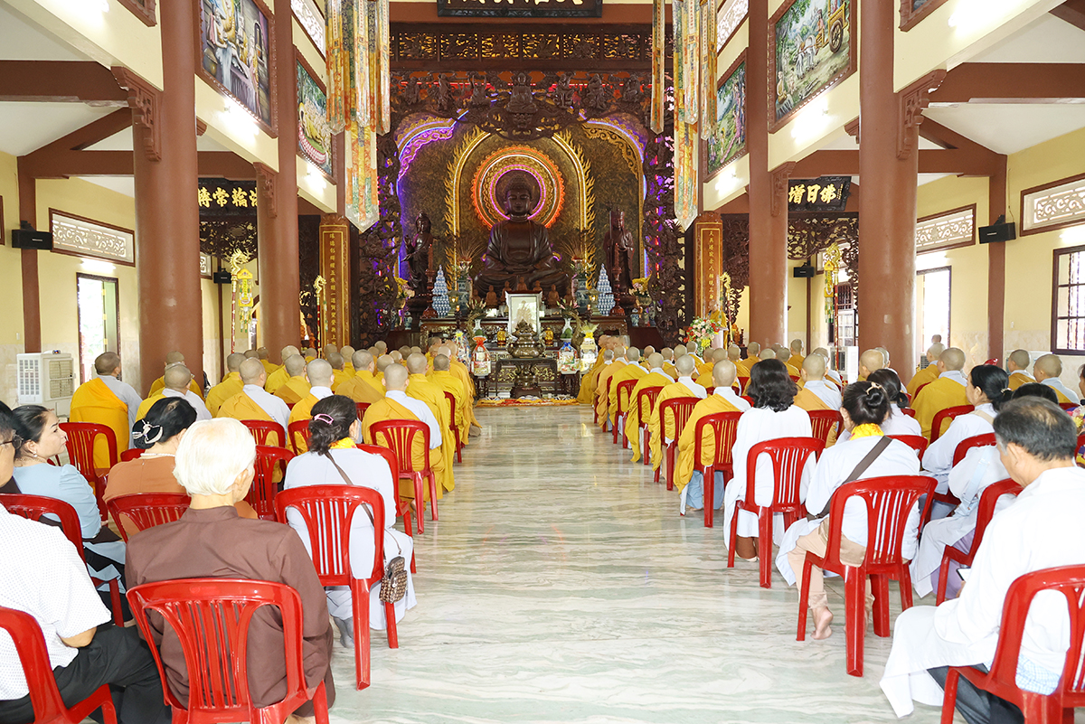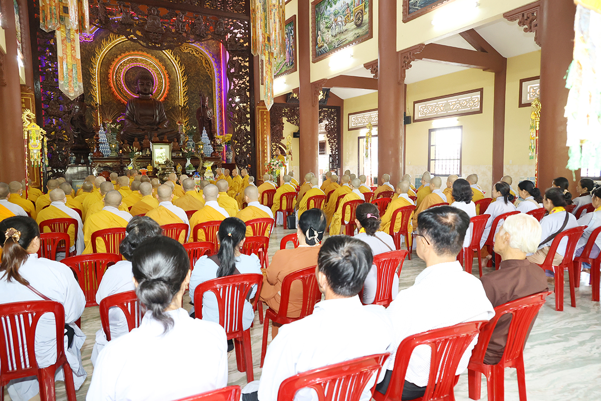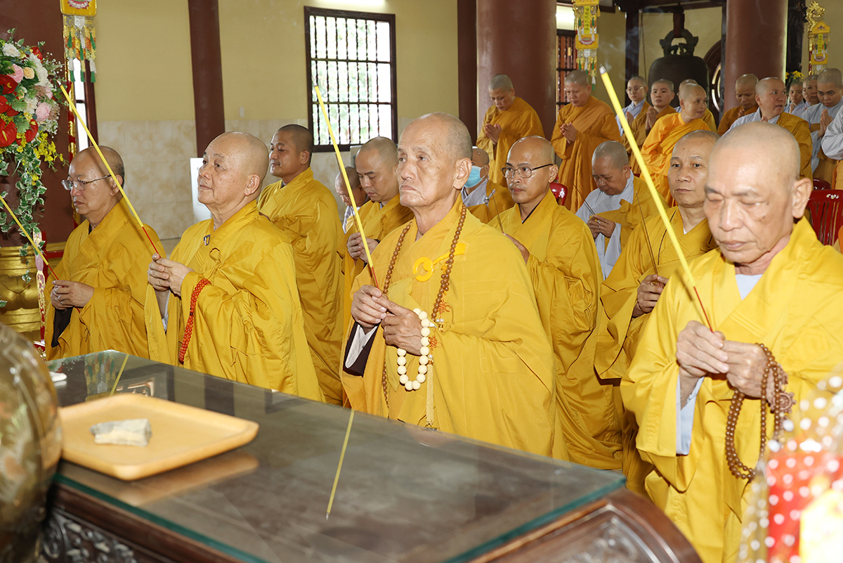Chứng minh tham dự có HT. Thích Thiện Huệ- Thành viên Hội đồng chứng minh GHPGVN, Chứng minh Ban Trị sự GHPGVN tỉnh Long An; HT. Thích Huệ Hồng, HT. Thích Quảng Ý- Chứng Minh Ban Trị sự GHPGVN tỉnh Long An; HT. Thích Minh Thiện- Uỷ viên HĐTSTƯ, Phó Ban Hoằng Pháp trung ương, Trưởng Ban Trị sự GHPGVN tỉnh Long An (trưởng Ban tổ chức); TT. Thích Quảng Tâm – Uỷ viên HĐTSTƯ, Phó Ban Từ thiện trung ương, Phó trưởng ban Thường trực Ban Trị sự GHPGVN tỉnh Long An; TT. Thích Minh Thọ- Uỷ viên HĐTSTƯ, Phó Ban Trị sự GHPGVN tỉnh; TT. Thích Lệ Trí- Uỷ viên HĐTSTƯ, Phó Ban Văn Hoá trung ương, Phó Ban Trị sự GHPGVN tỉnh ; ĐĐ. Thích Lệ Duyên- Phó Ban kiêm Chánh thư ký Ban Trị sự GHPGVN tỉnh Long An; ĐĐ. Thích Lệ Ngôn- Phó Ban Trị sự GHPGVN tỉnh Long An; cùng Chư tôn đức Tăng Ni trong Thường trực Ban Trị sự Ban Trị sự tỉnh, Chư tôn đức thường trực 13 Ban Tri sự huyện, thị xã thành phố trong tỉnh; Tăng Ni sinh trường trung cấp Phật học tỉnh Long An; Chư tôn đức trụ trì các tự viện trong thành phố Tân An và quý Phật tử trong tỉnh đồng về tham dự.