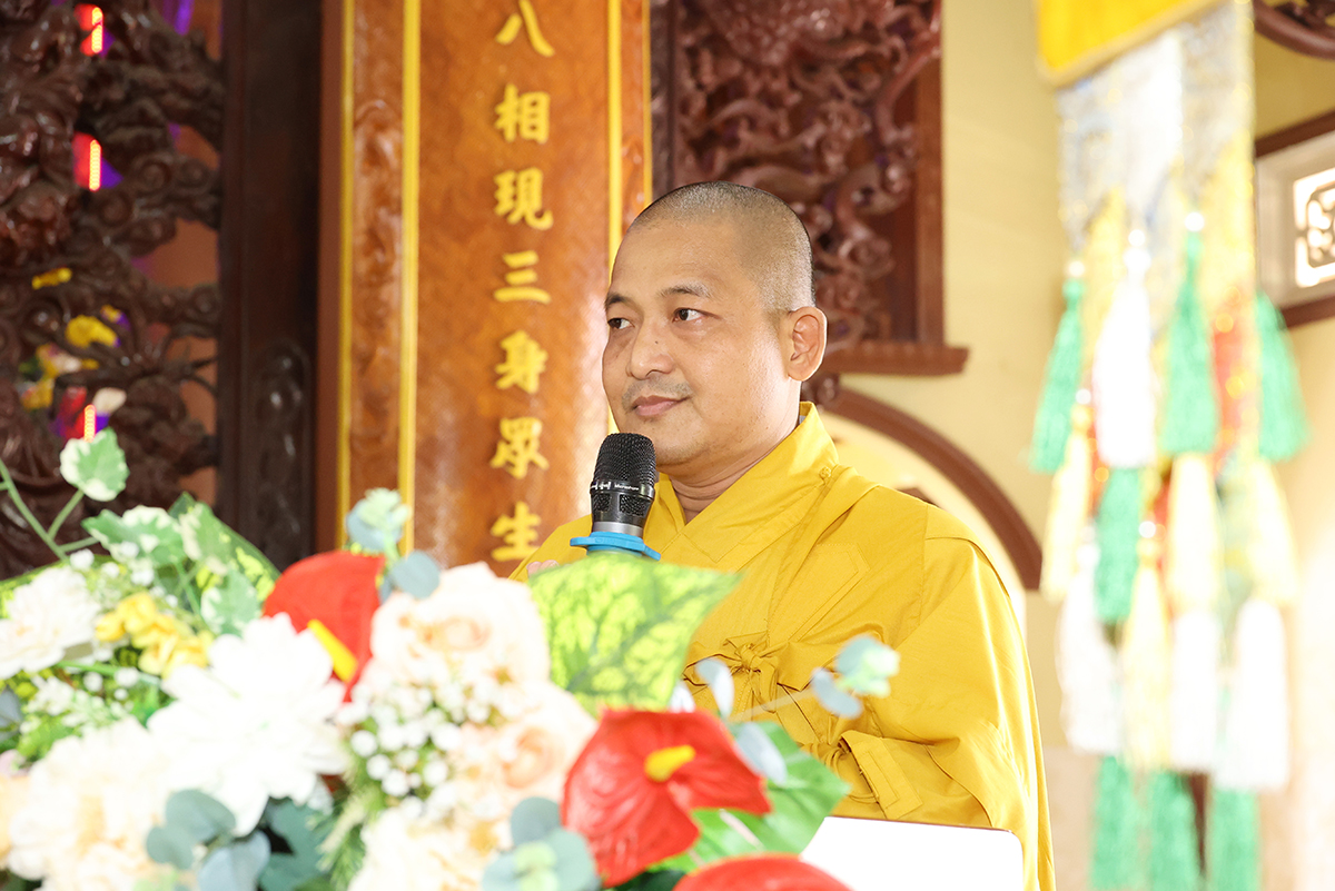 Tại buổi lễ, TT. Thích Quảng Tâm – Uỷ viên HĐTSTƯ, Phó Ban Từ thiện trung ương, Phó trưởng ban Thường trực Ban Trị sự GHPGVN tỉnh Long An cung tuyên đôi nét tiểu sử Đức Phật hoàng Trần Nhân Tông, vị hoàng đế anh hùng lãnh đạo quân dân Đại Việt hai lần đánh tan đế quốc Nguyên Mông (1258 và 1288), giành độc lập, hòa bình cho đất nước.