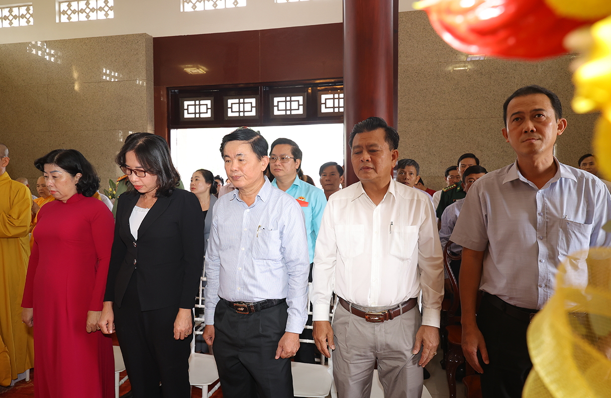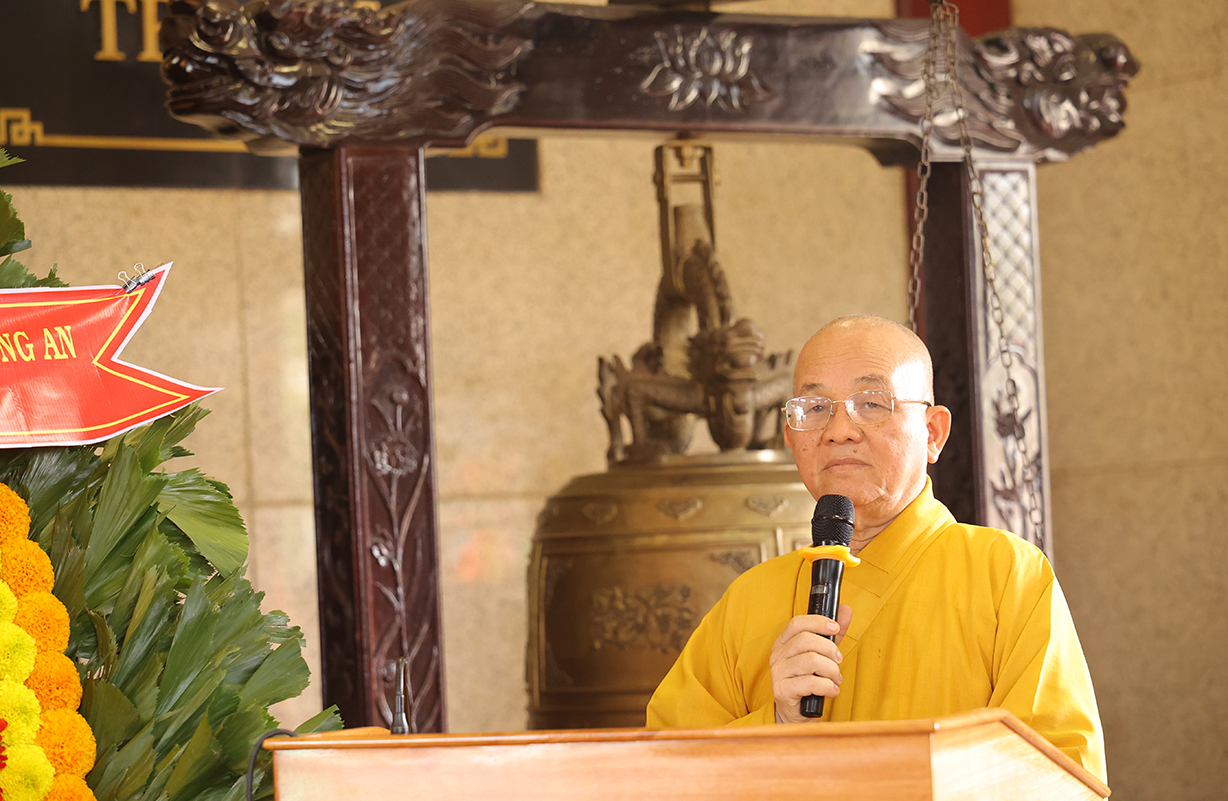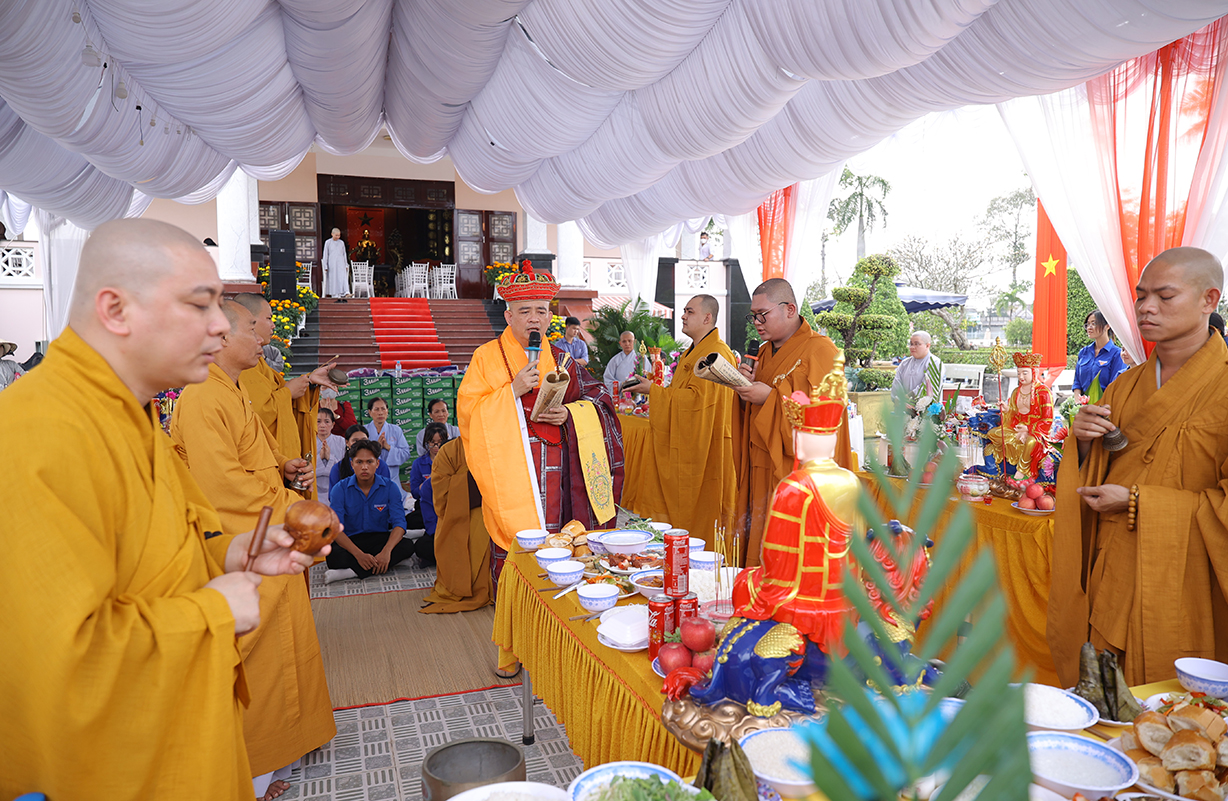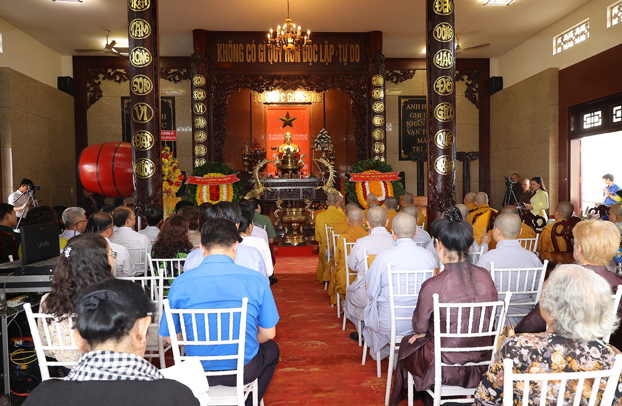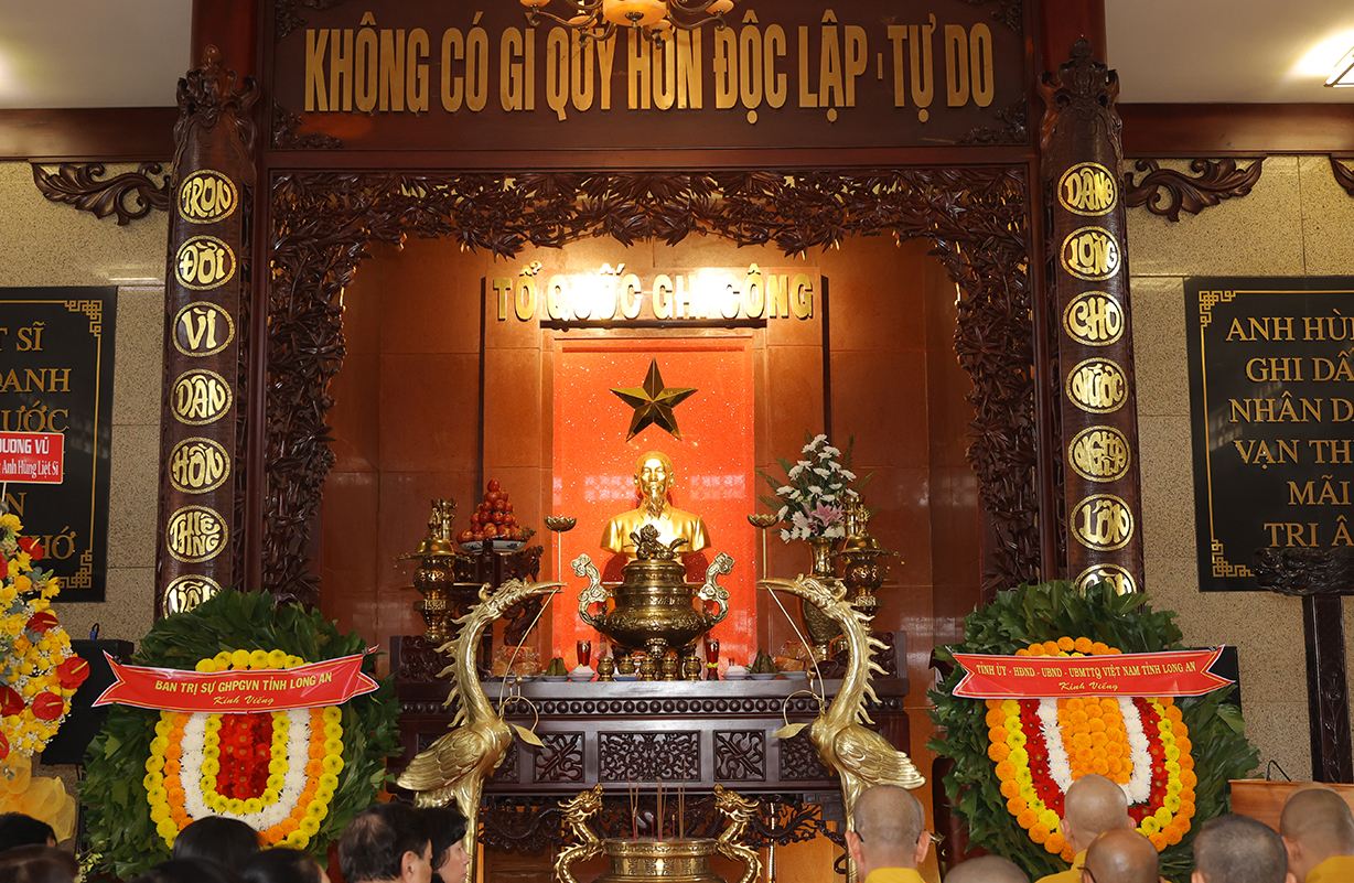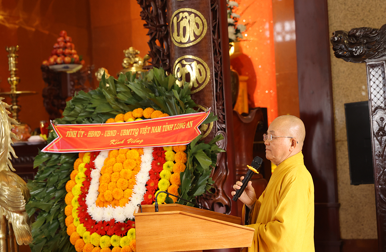 Tại buổi lễ, lãnh đạo tỉnh, đại diện sở, ban, ngành đoàn thể và toàn thể Tăng, ni, Phật tử cùng lắng nghe diễn văn tưởng niệm sự hy sinh cao cả của các anh hùng liệt sĩ do HT Thích Minh Thiện – Ủy viên HĐTSTƯ, Phó Trưởng Ban Hoằng pháp Trung ương, Trưởng Ban Trị sự Giáo hội Phật giáo Việt Nam tỉnh Long An tuyên đọc. Sau đó, đại biểu cùng thực hiện phút mặc niệm thể hiện lòng tri ân các anh hùng đã ngã xuống vì Tổ quốc.