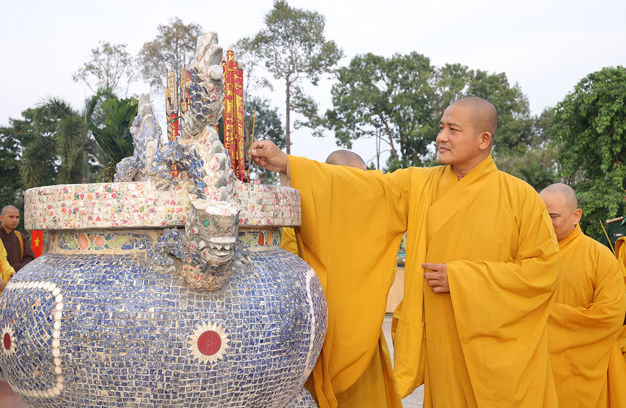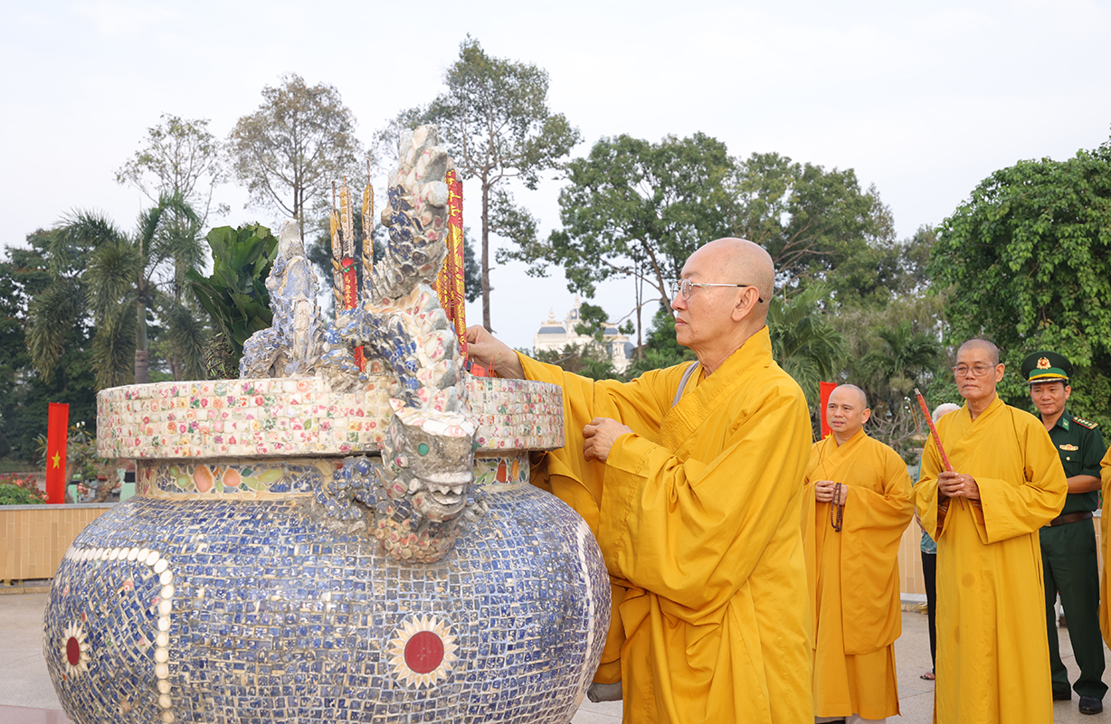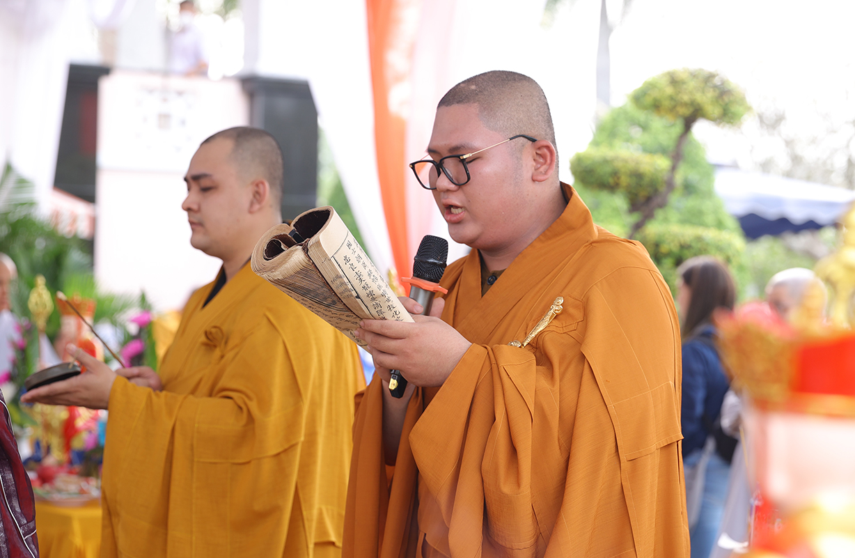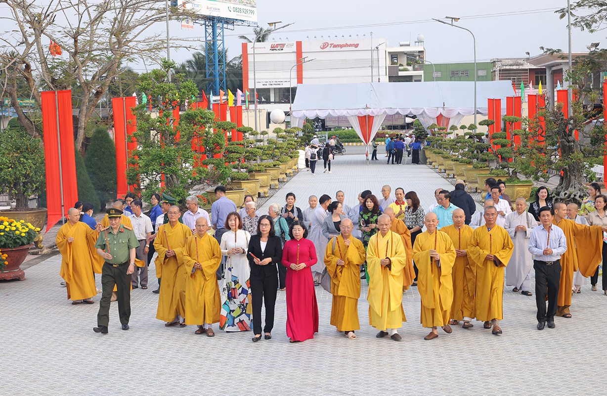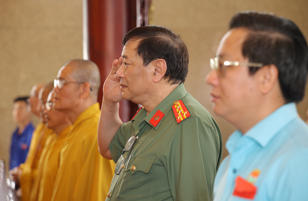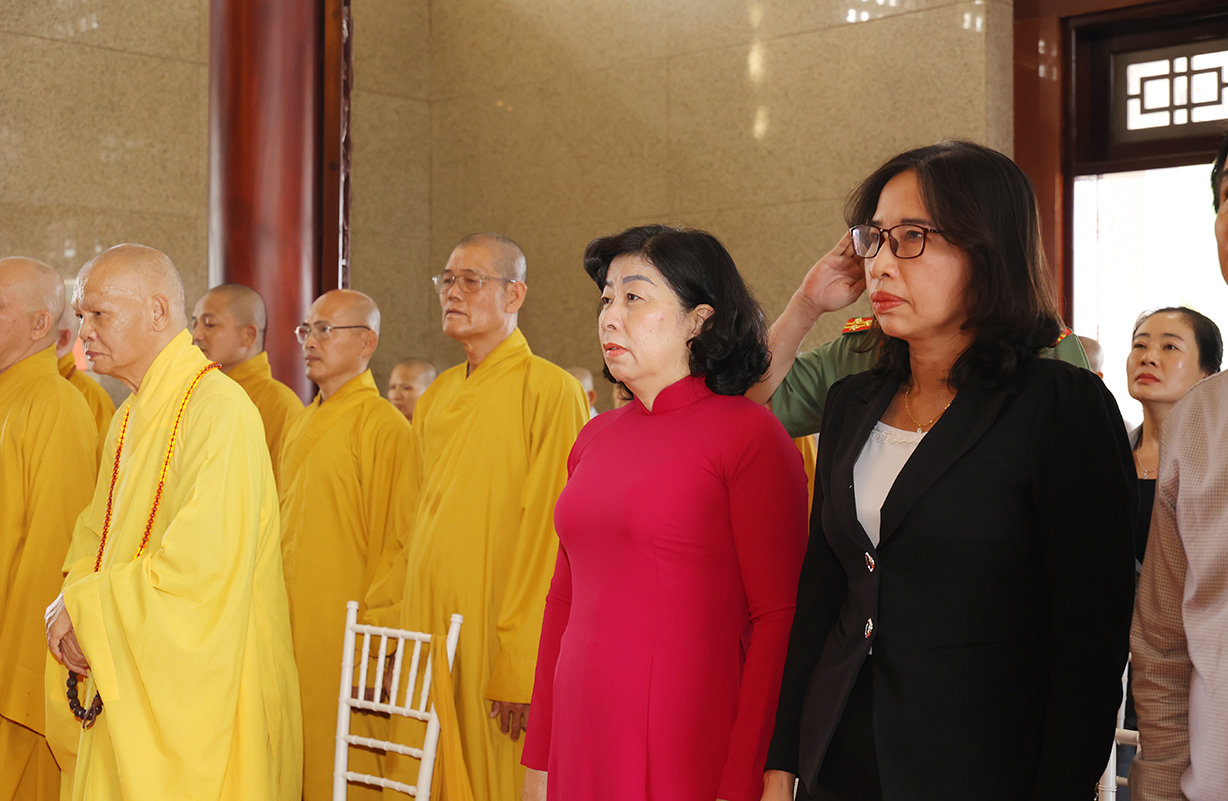 Tại buổi lễ, lãnh đạo tỉnh, đại diện sở, ban, ngành đoàn thể và toàn thể Tăng, ni, Phật tử cùng lắng nghe diễn văn tưởng niệm sự hy sinh cao cả của các anh hùng liệt sĩ do HT Thích Minh Thiện – Ủy viên HĐTSTƯ, Phó Trưởng Ban Hoằng pháp Trung ương, Trưởng Ban Trị sự Giáo hội Phật giáo Việt Nam tỉnh Long An tuyên đọc. Sau đó, đại biểu cùng thực hiện phút mặc niệm thể hiện lòng tri ân các anh hùng đã ngã xuống vì Tổ quốc.
