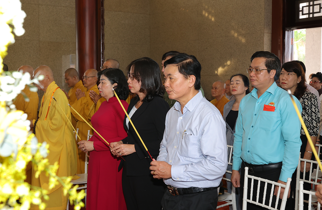 Chứng minh tham dự có HT Thích Phước Toàn- Chứng minh BTS GHPGVN quận Bình Tân, Viện chủ chùa Vạn Đức, quận Bình Tân, TP HCM; HT Thích Minh Thiện – Ủy viên HĐTSTƯ, Phó Trưởng Ban Hoằng pháp Trung ương, Trưởng Ban Trị sự Giáo hội Phật giáo Việt Nam tỉnh; TT Thích Quảng Tâm- Ủy viên HĐTSTƯ, Phó ban Thường trực BTS GHPGVN tỉnh Long An; TT Thích Lệ Trí- Phó Ban Trị sự, Trưởng ban Giáo dục Tăng Ni GHPGVN tỉnh Long An; TT Thích Đức Hoàng- Phó Ban Trị sự GHPGVN tỉnh; ĐĐ Thích Lệ Duyên- Phó Ban trị sự, Chánh thư ký BTS GHPGVN tỉnh Long An, cùng quý Chư tôn đức Tăng Ni trong Thường trực BTSGHPGVN tỉnh tham dự.