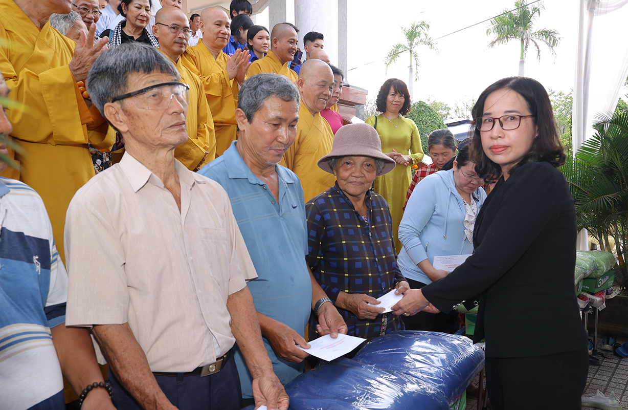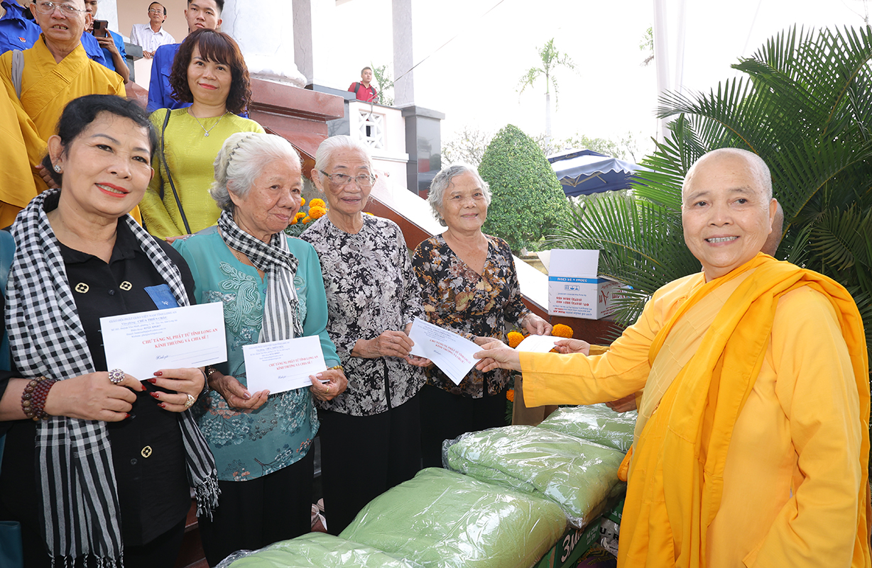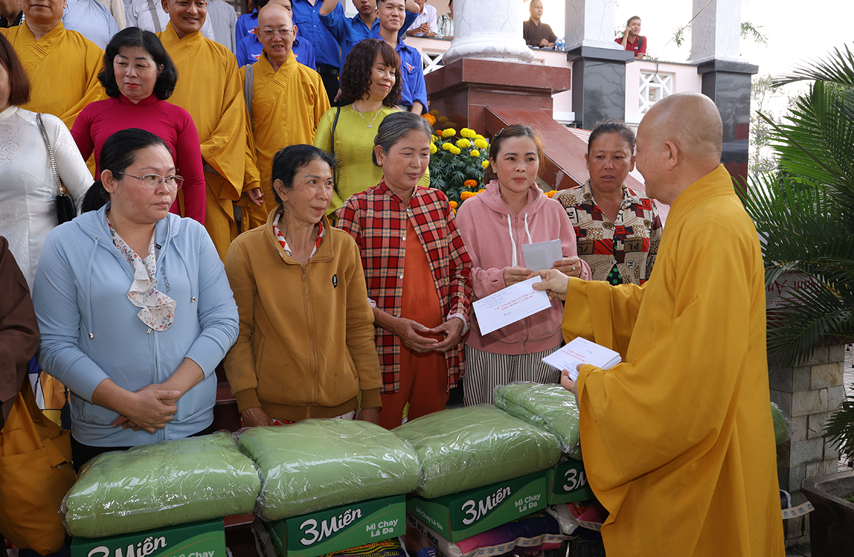 Dịp này, Ban Trị sự Giáo hội Phật giáo Việt Nam tỉnh Long An đã vận động các tổ chức, cá nhân tặng 200 phần quà cho gia đình chính sách và gia đình có hoàn cảnh khó khăn trên địa bàn,Mỗi phần quà trị giá 800 ngàn đồng, gồm bao thư 500 ngàn đồng và nhu yếu phẩm.