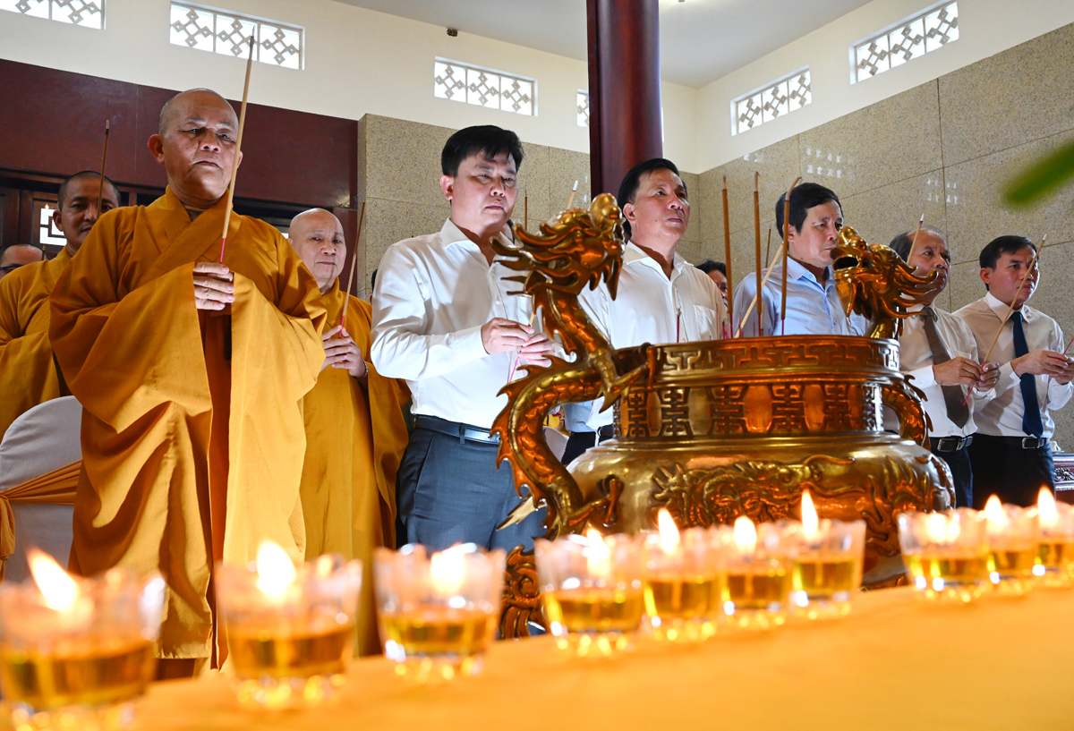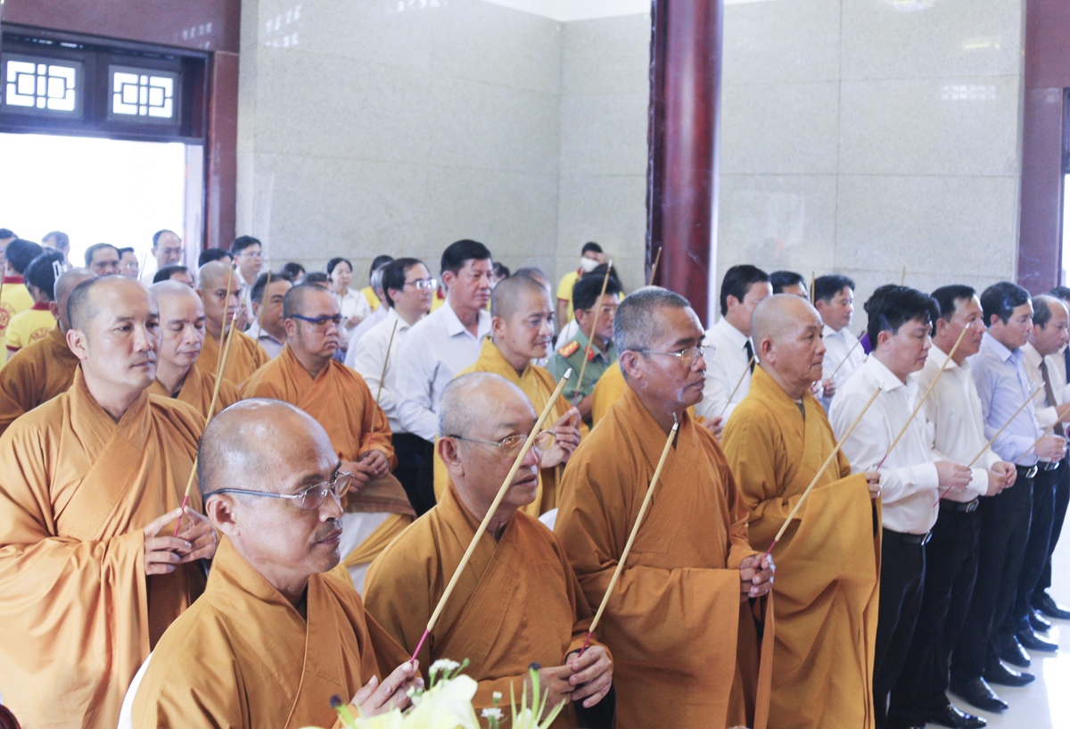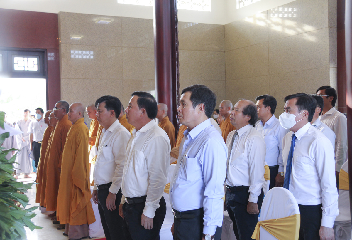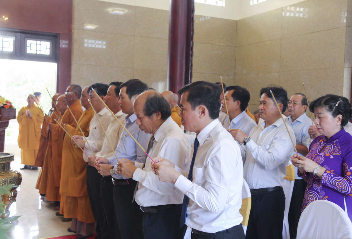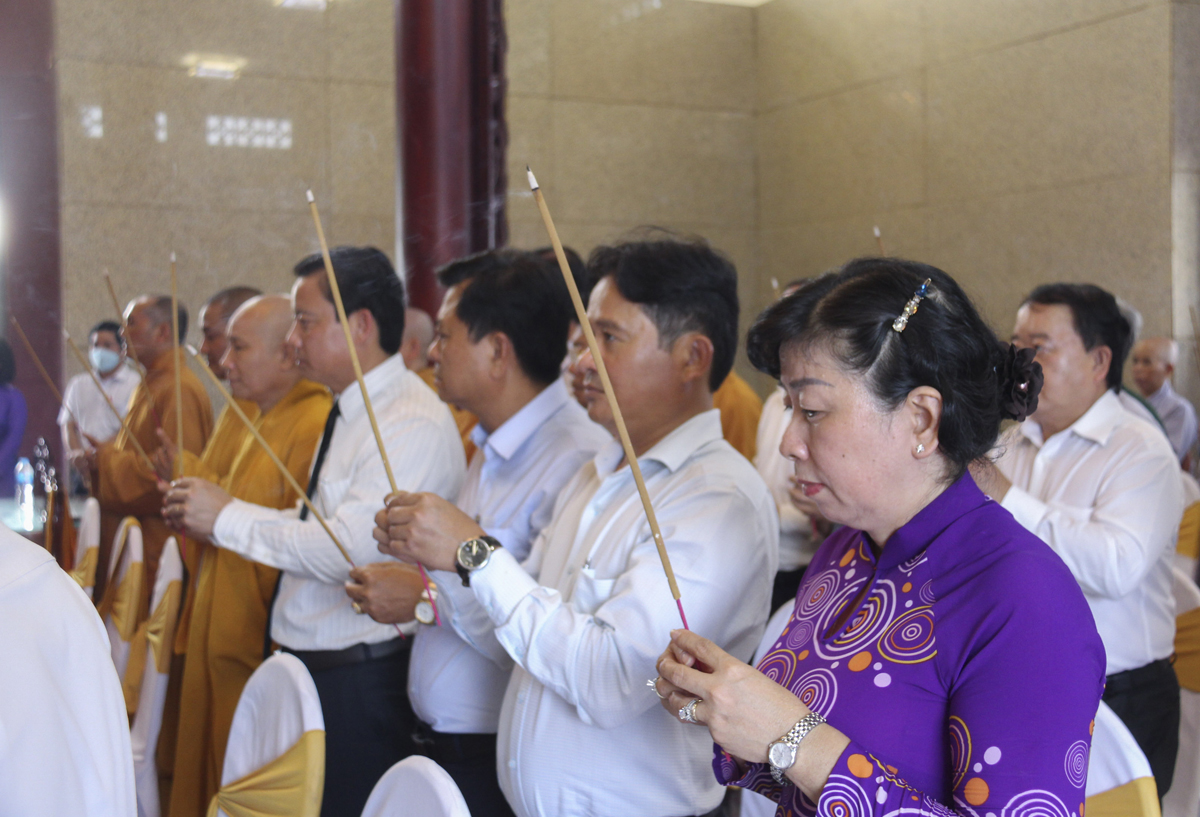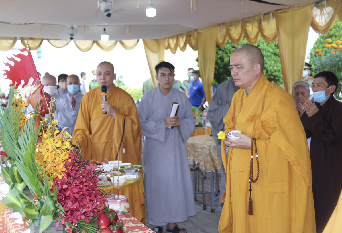 Sau nghi thức truyền thống của Phật giáo, Chư tôn đức, các cấp lãnh đạo chính quyền đồng nhất tâm chào Quốc kỳ, Đạo kỳ Phật giáo và dành phút mặc niệm tưởng nhớ các anh hùng liệt sĩ đã chiến đấu hy sinh vì sự nghiệp giải phóng dân tộc, vì Chủ nghĩa xã hội, vì hạnh phúc của nhân dân.