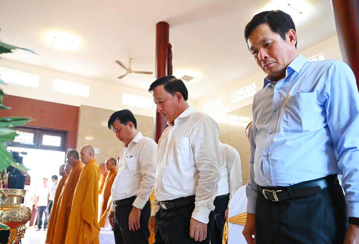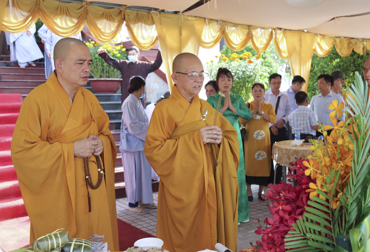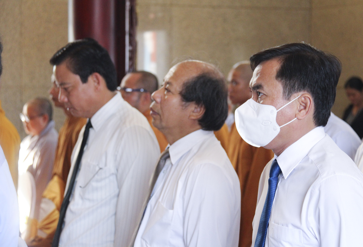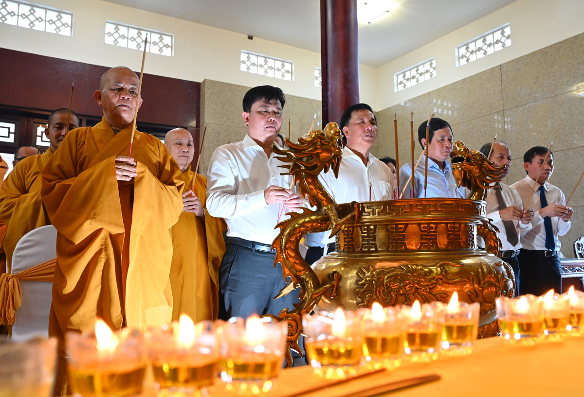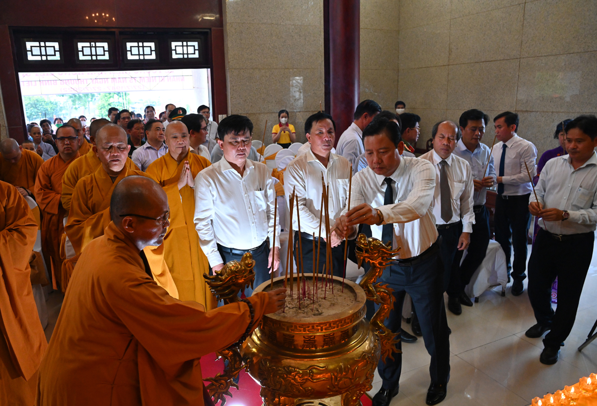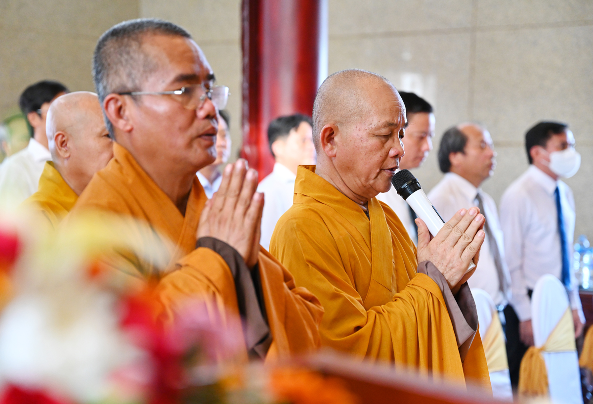 Sau nghi thức truyền thống của Phật giáo, Chư tôn đức, các cấp lãnh đạo chính quyền đồng nhất tâm chào Quốc kỳ, Đạo kỳ Phật giáo và dành phút mặc niệm tưởng nhớ các anh hùng liệt sĩ đã chiến đấu hy sinh vì sự nghiệp giải phóng dân tộc, vì Chủ nghĩa xã hội, vì hạnh phúc của nhân dân.