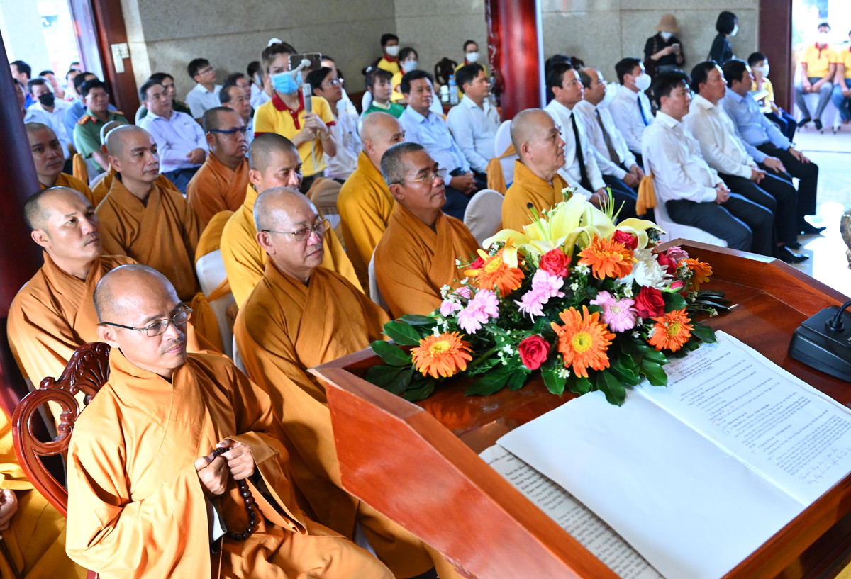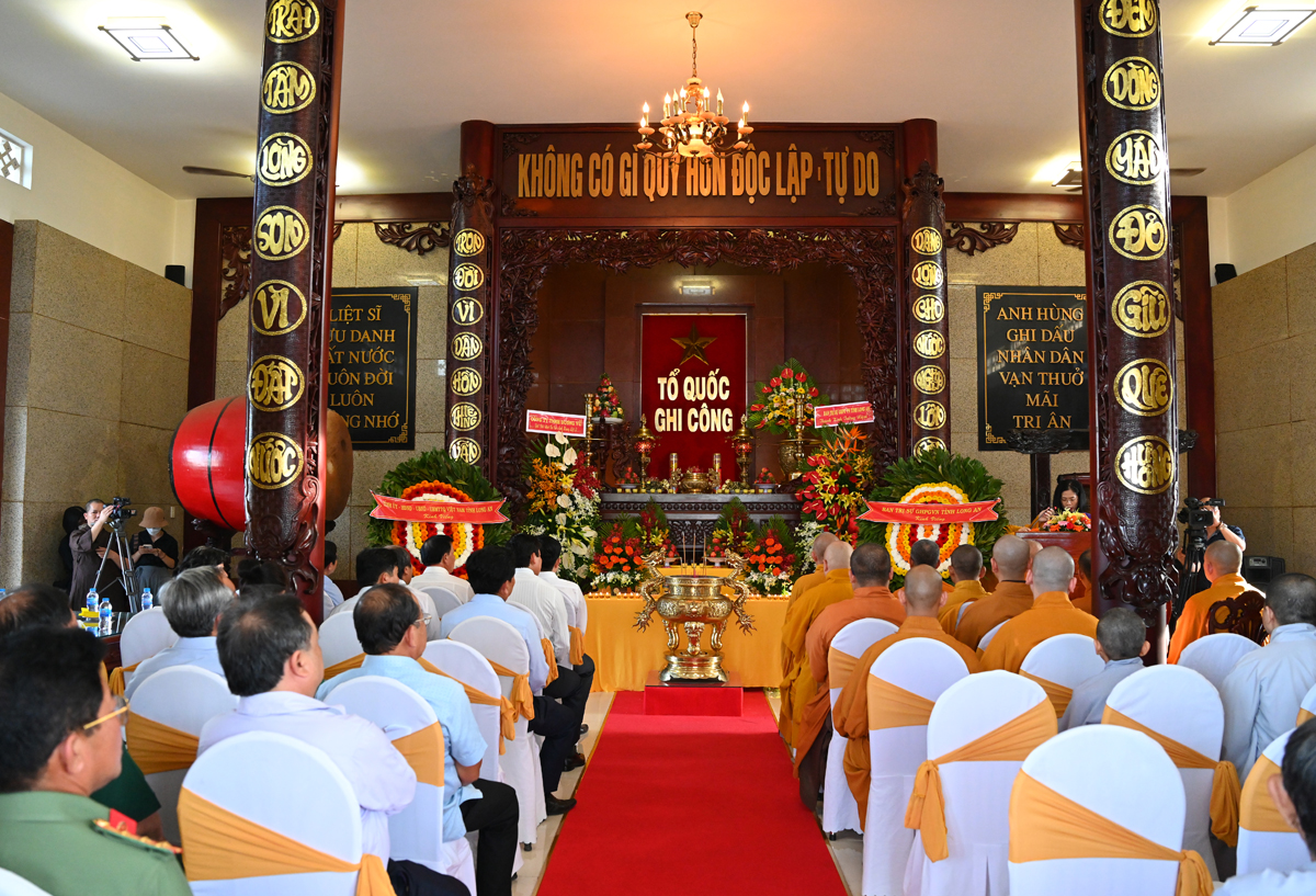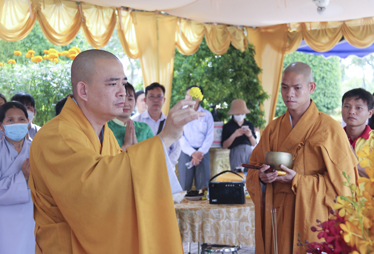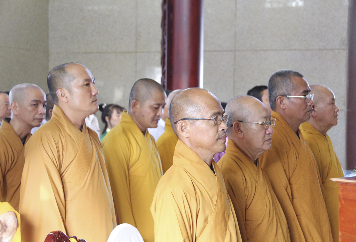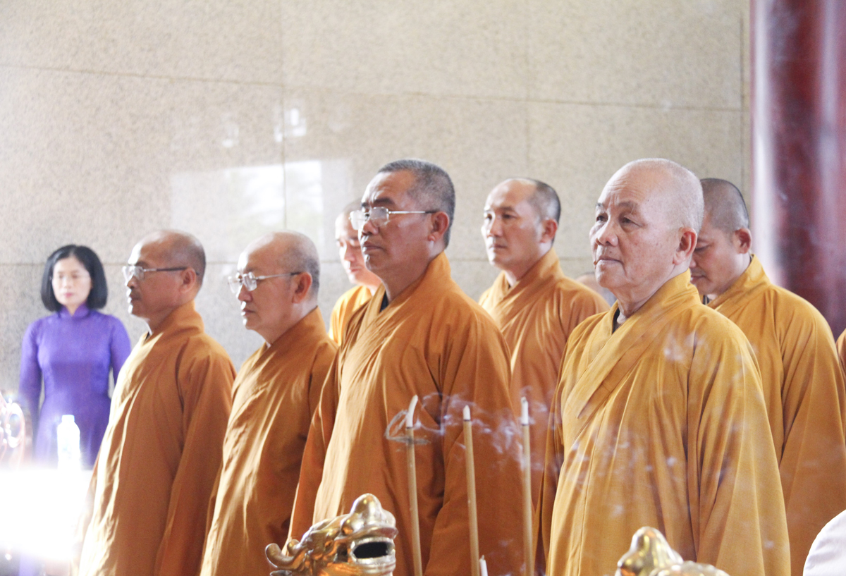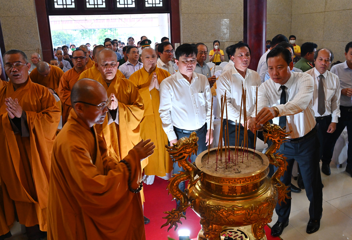 Sau nghi thức truyền thống của Phật giáo, Chư tôn đức, các cấp lãnh đạo chính quyền đồng nhất tâm chào Quốc kỳ, Đạo kỳ Phật giáo và dành phút mặc niệm tưởng nhớ các anh hùng liệt sĩ đã chiến đấu hy sinh vì sự nghiệp giải phóng dân tộc, vì Chủ nghĩa xã hội, vì hạnh phúc của nhân dân.