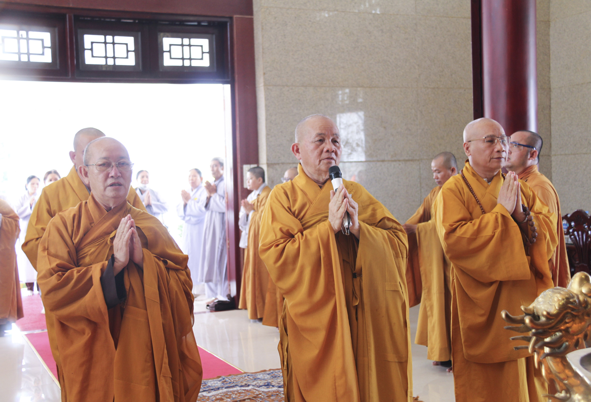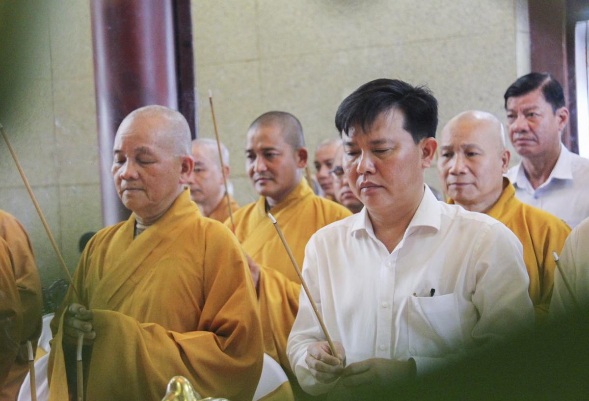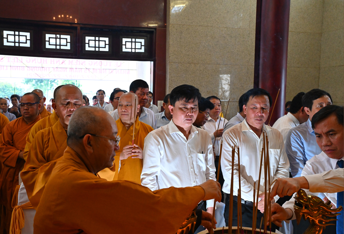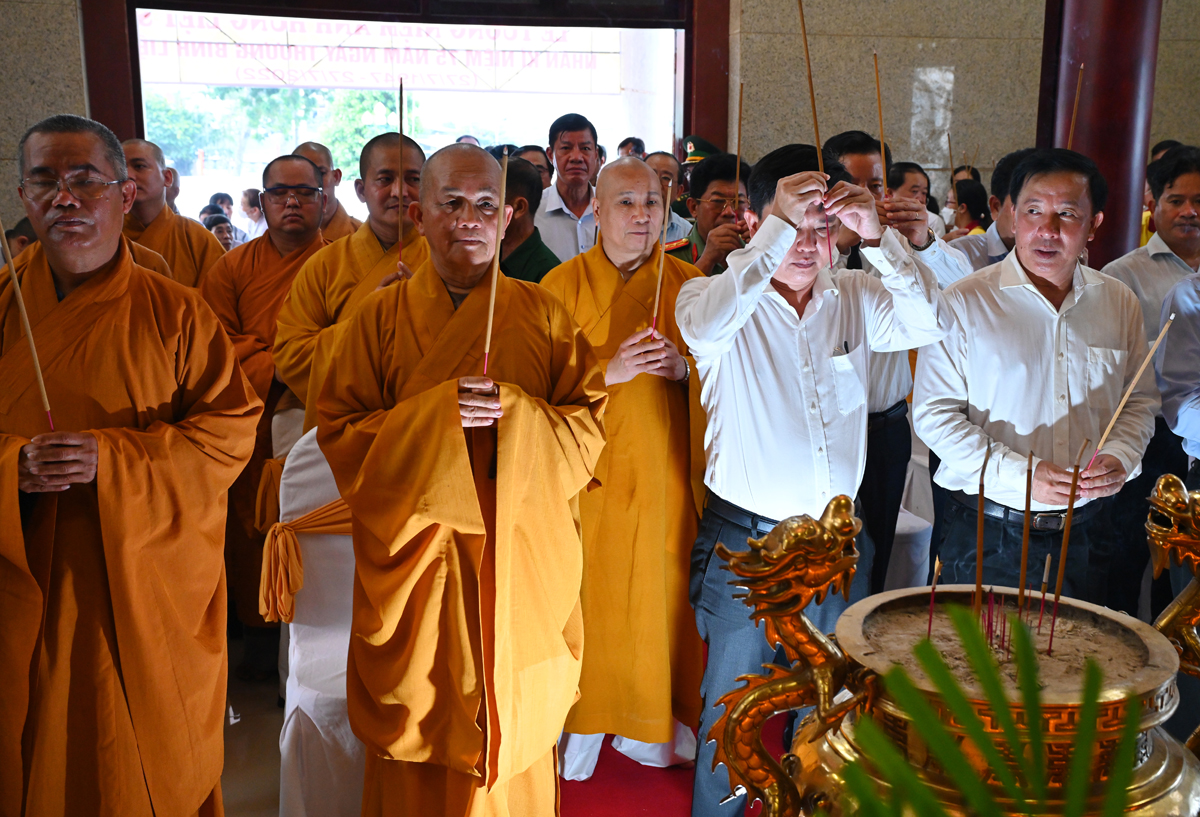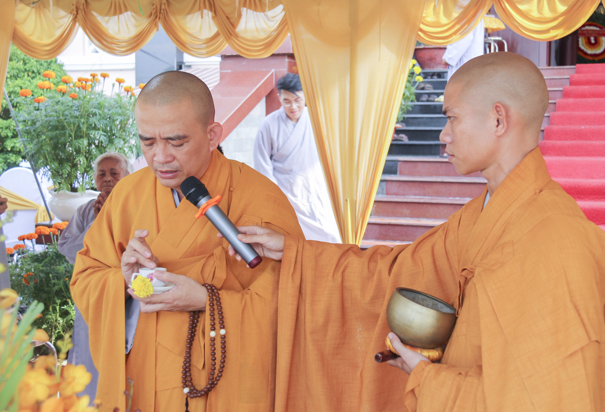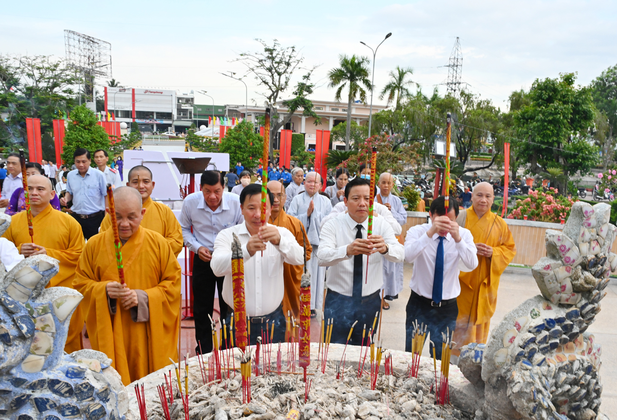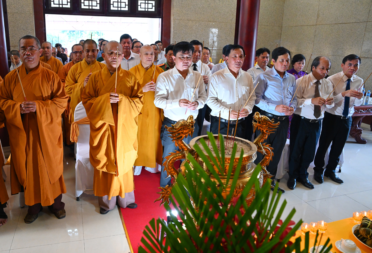 Sau nghi thức truyền thống của Phật giáo, Chư tôn đức, các cấp lãnh đạo chính quyền đồng nhất tâm chào Quốc kỳ, Đạo kỳ Phật giáo và dành phút mặc niệm tưởng nhớ các anh hùng liệt sĩ đã chiến đấu hy sinh vì sự nghiệp giải phóng dân tộc, vì Chủ nghĩa xã hội, vì hạnh phúc của nhân dân.
