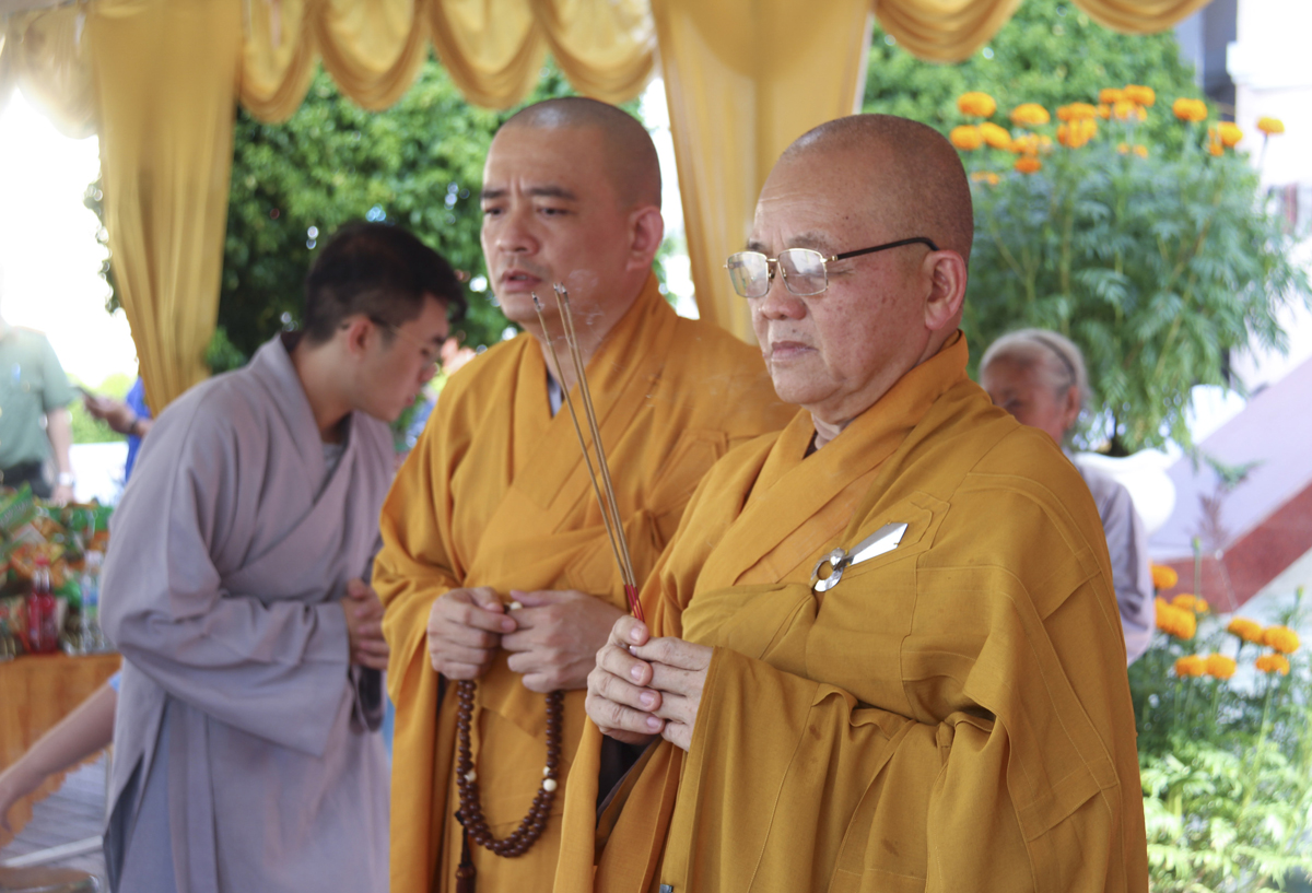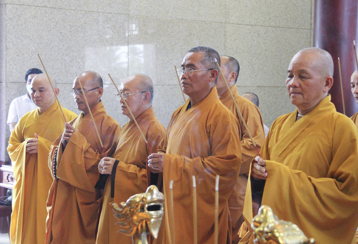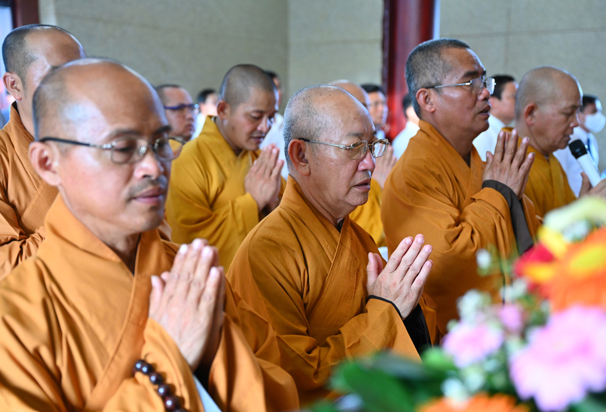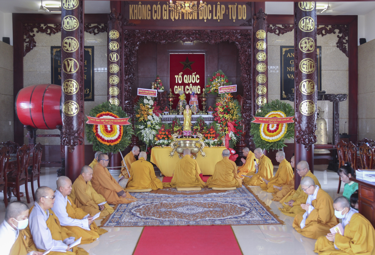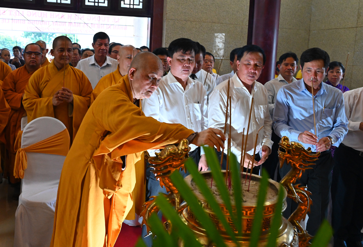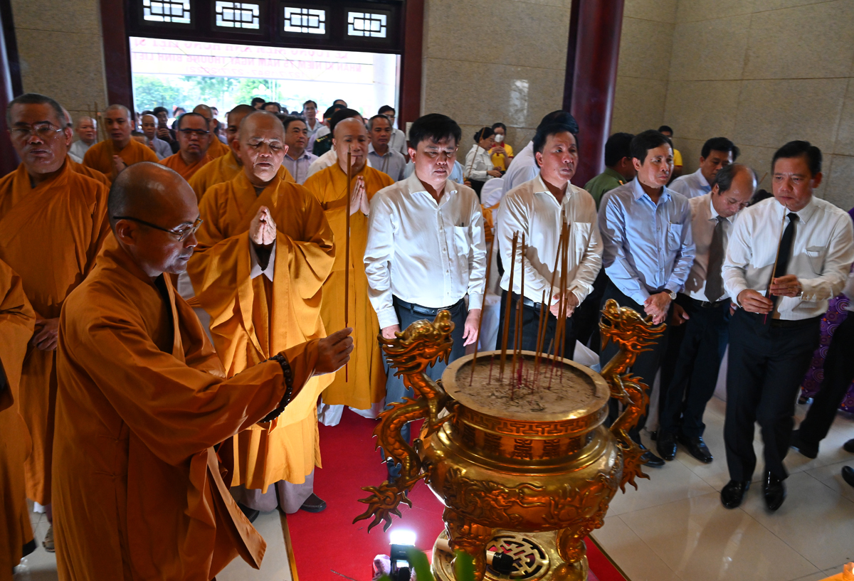Sau nghi thức truyền thống của Phật giáo, Chư tôn đức, các cấp lãnh đạo chính quyền đồng nhất tâm chào Quốc kỳ, Đạo kỳ Phật giáo và dành phút mặc niệm tưởng nhớ các anh hùng liệt sĩ đã chiến đấu hy sinh vì sự nghiệp giải phóng dân tộc, vì Chủ nghĩa xã hội, vì hạnh phúc của nhân dân.