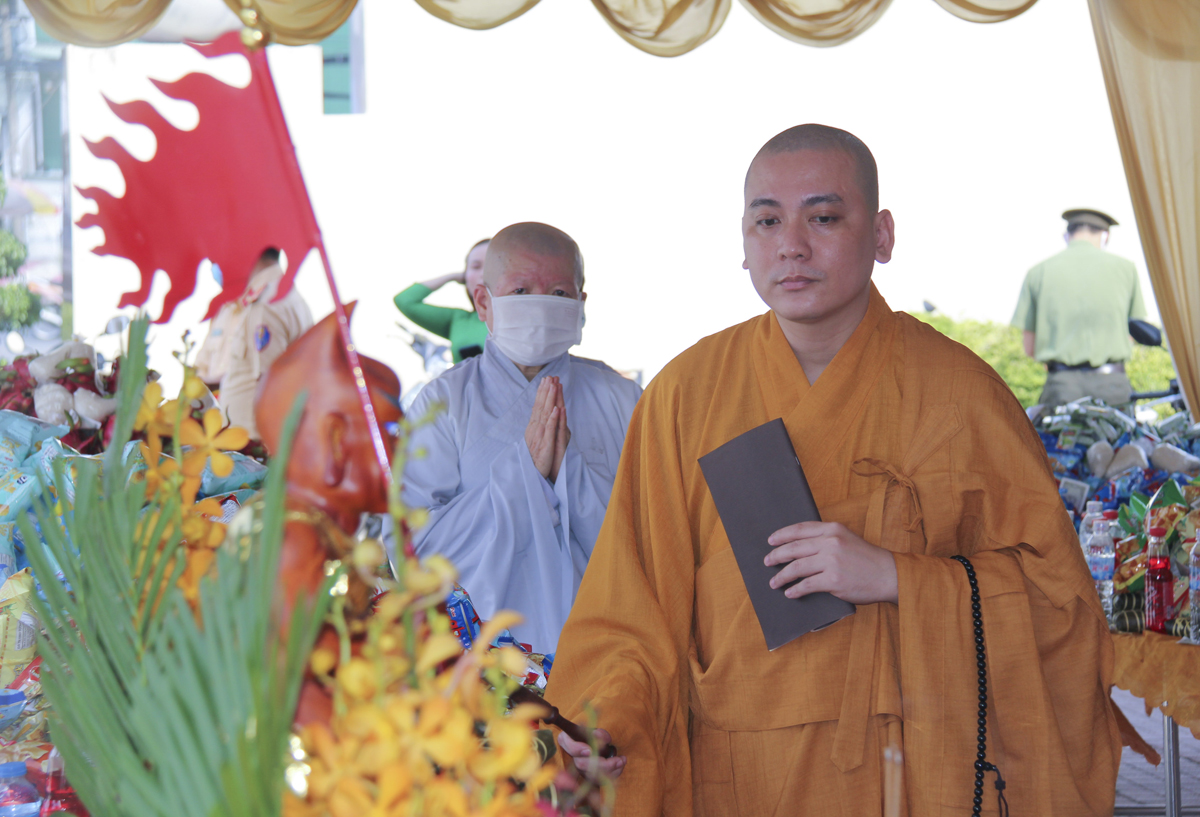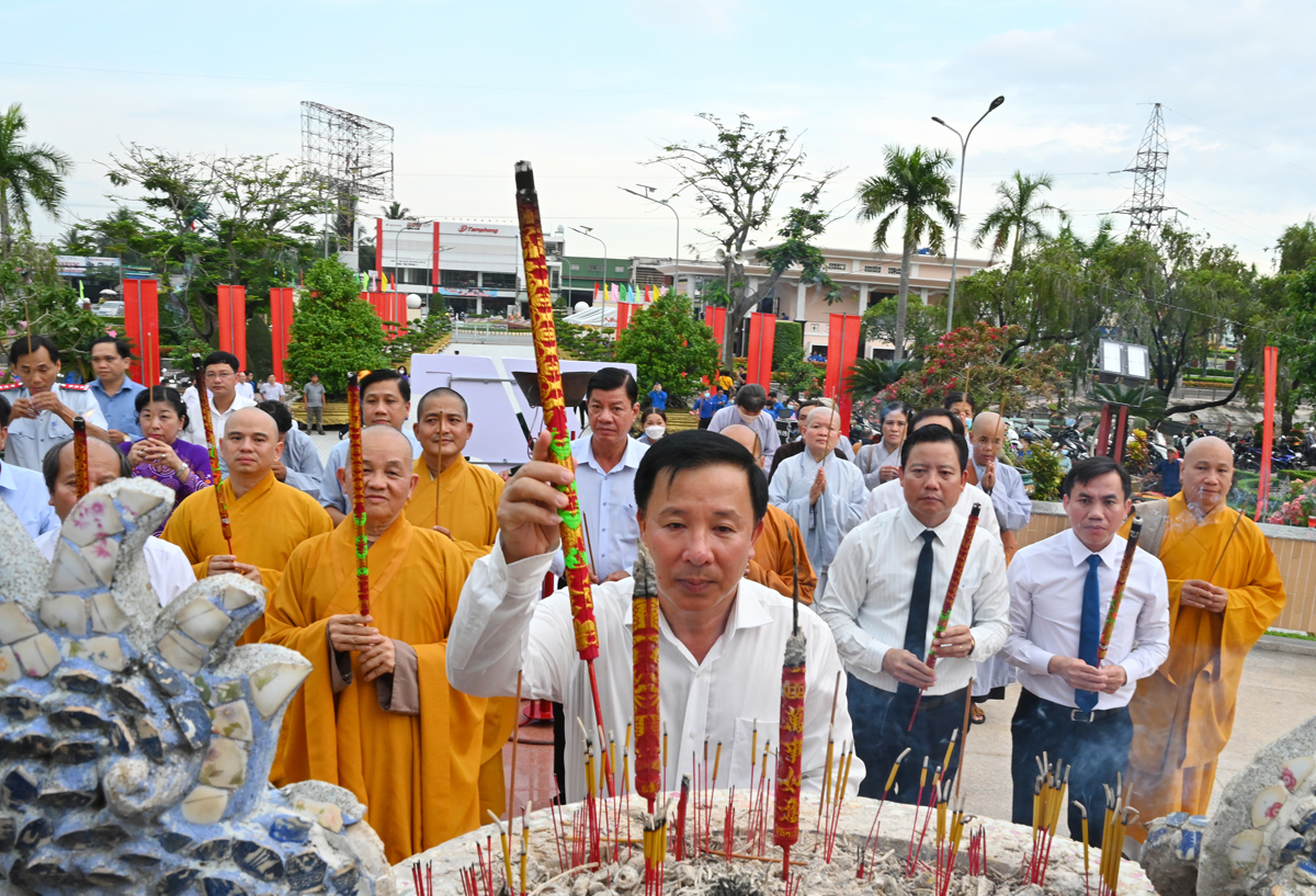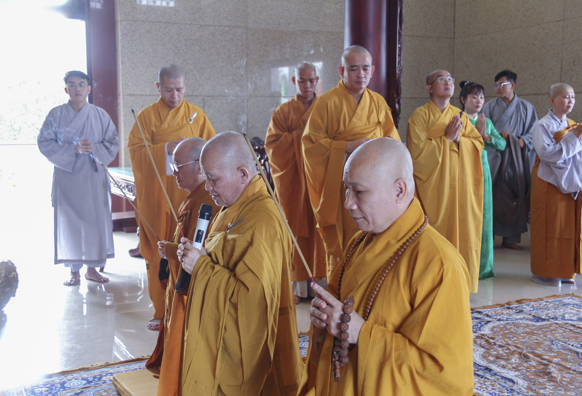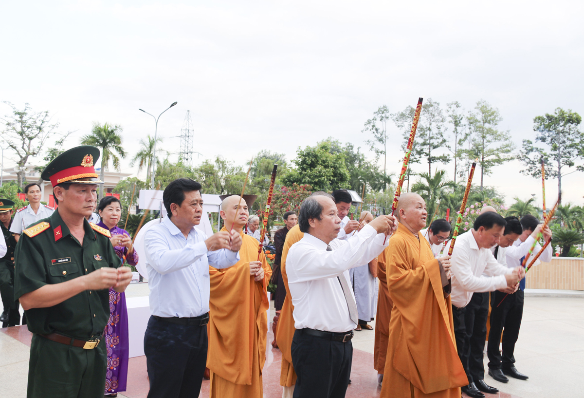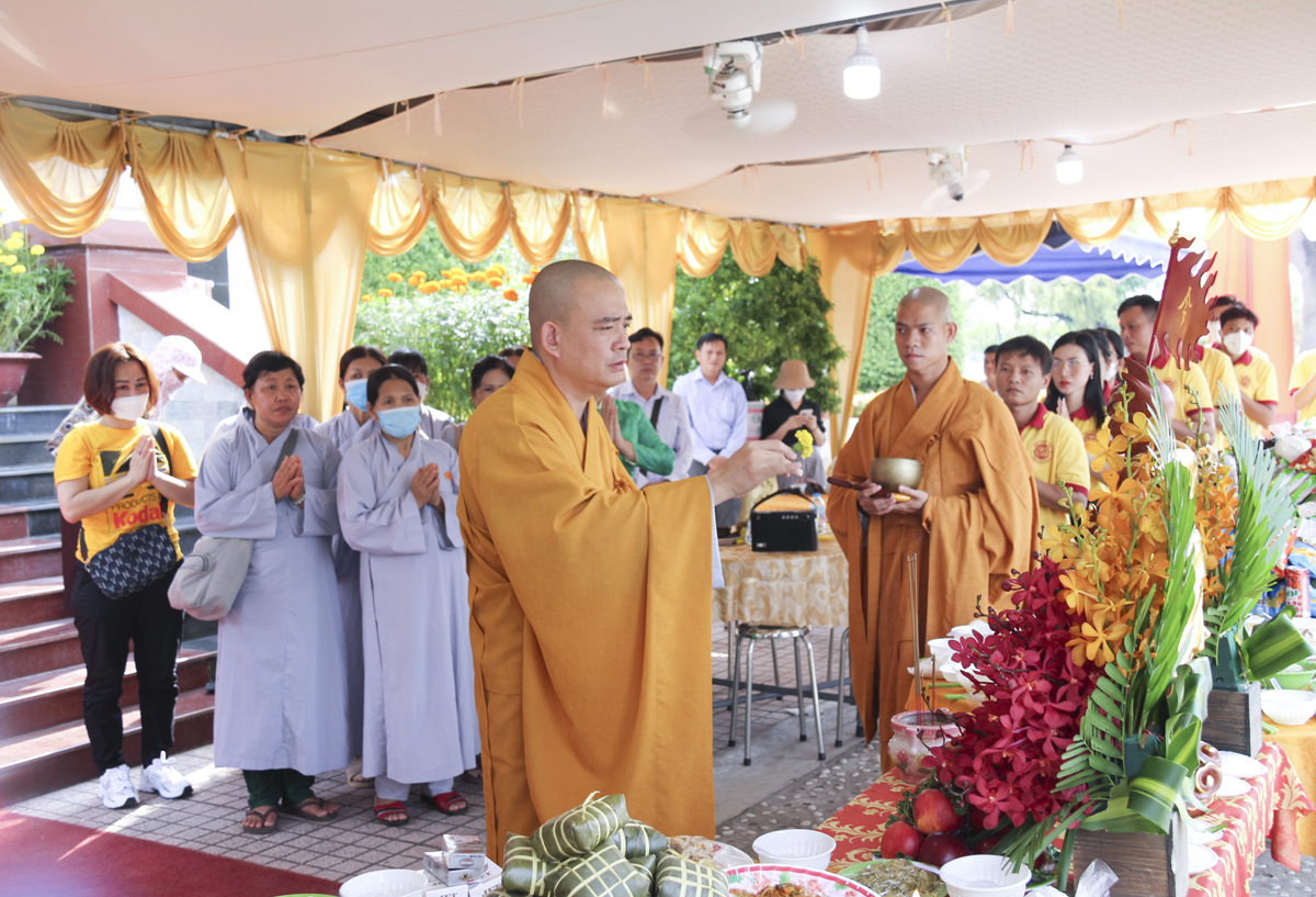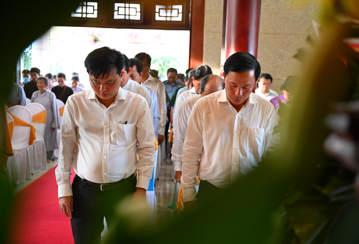 Sau nghi thức truyền thống của Phật giáo, Chư tôn đức, các cấp lãnh đạo chính quyền đồng nhất tâm chào Quốc kỳ, Đạo kỳ Phật giáo và dành phút mặc niệm tưởng nhớ các anh hùng liệt sĩ đã chiến đấu hy sinh vì sự nghiệp giải phóng dân tộc, vì Chủ nghĩa xã hội, vì hạnh phúc của nhân dân.