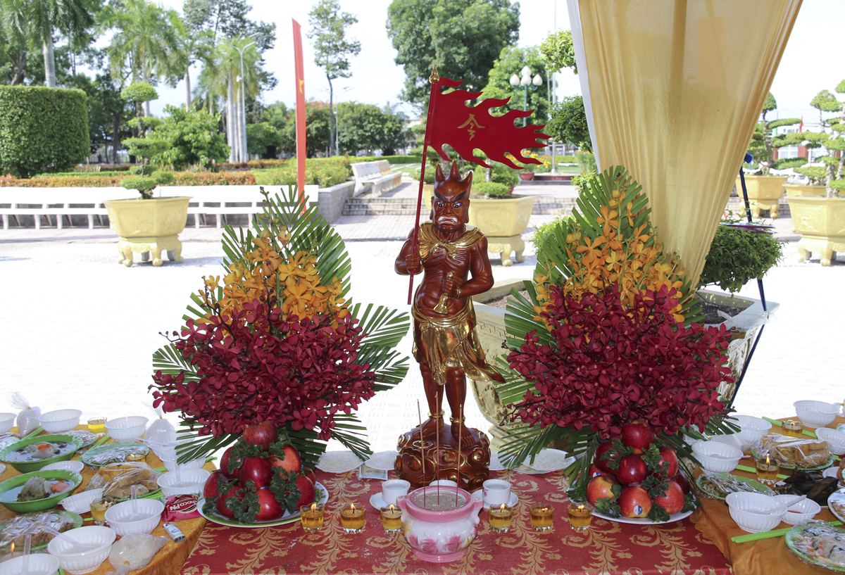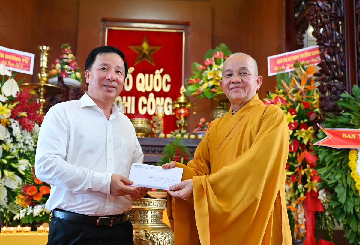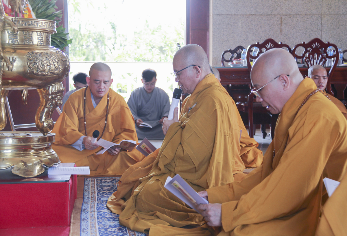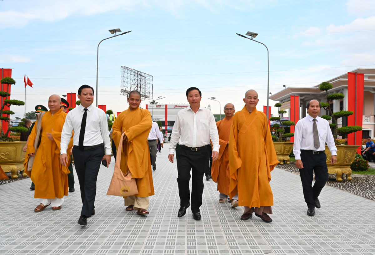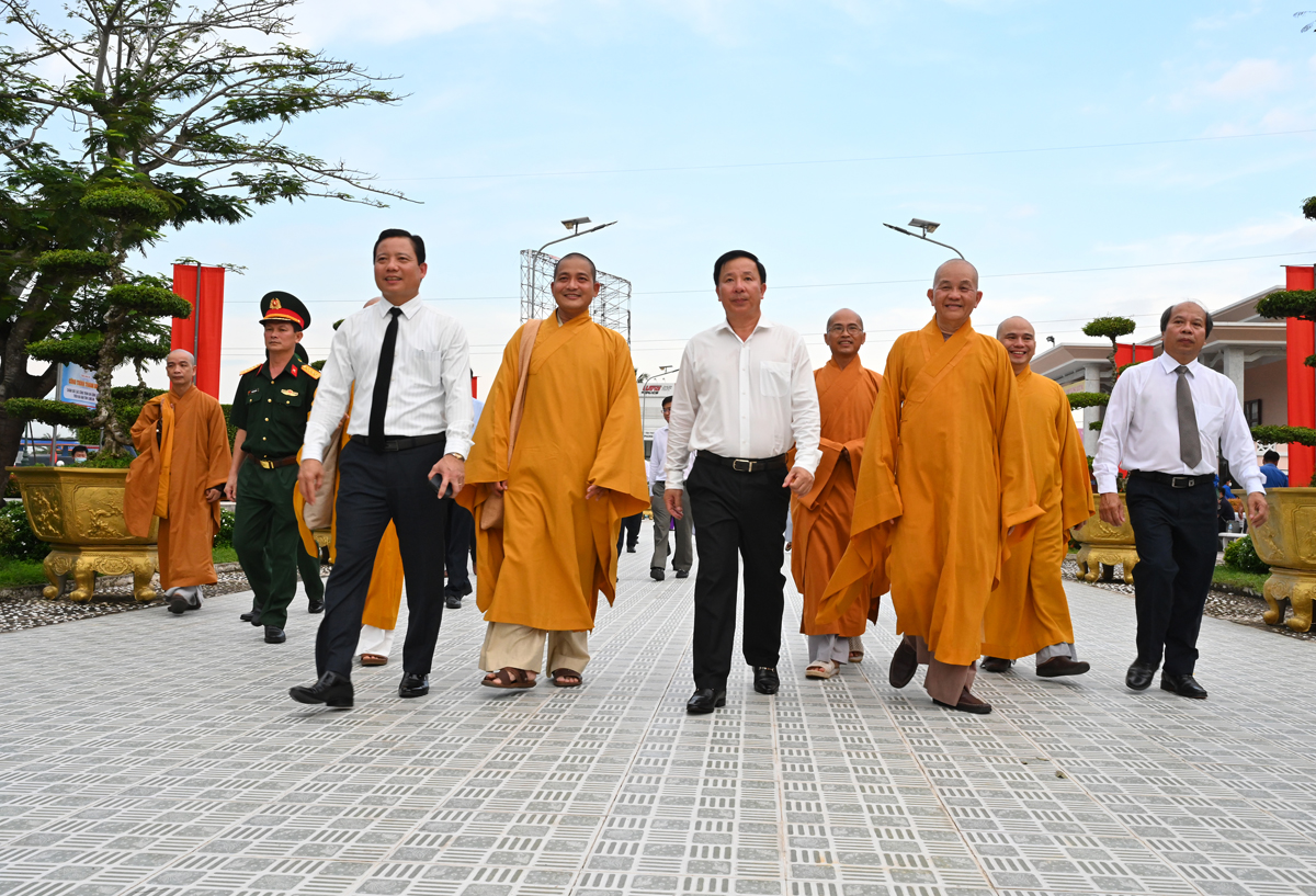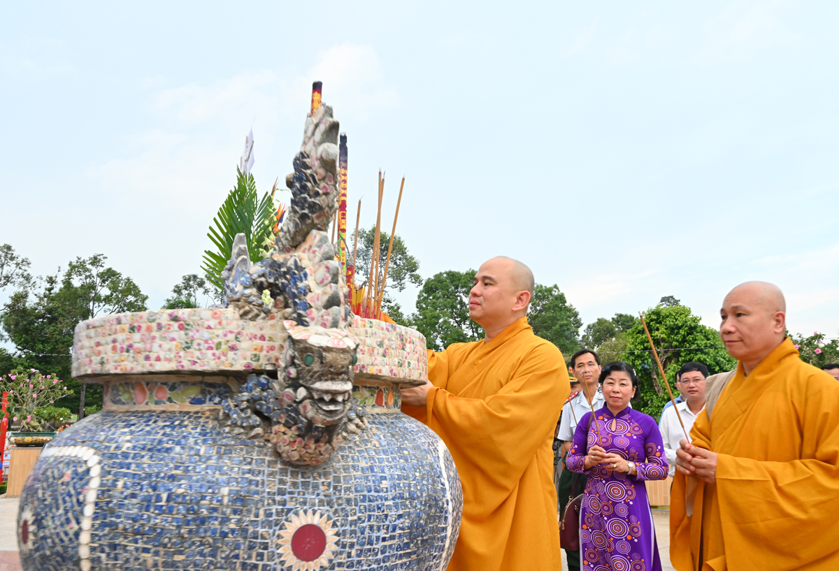 Sau nghi thức truyền thống của Phật giáo, Chư tôn đức, các cấp lãnh đạo chính quyền đồng nhất tâm chào Quốc kỳ, Đạo kỳ Phật giáo và dành phút mặc niệm tưởng nhớ các anh hùng liệt sĩ đã chiến đấu hy sinh vì sự nghiệp giải phóng dân tộc, vì Chủ nghĩa xã hội, vì hạnh phúc của nhân dân.