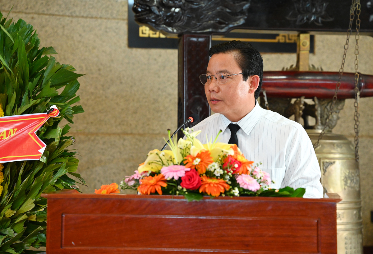 Đại diện chính quyền, Ông Phạm Tấn Hoà, Phó Chủ tịch UBND tỉnh đã tiếp lời tưởng niệm của Hòa thượng. Thích Minh Thiện. Ông đã gửi lời thăm hỏi sức khoẻ ân cần, vạn sự bình an đến hội chúng có mặt tại buổi lễ. Ông nêu rõ trong những năm qua tỉnh đã có các công tác xây dựng nhà tưởng niệm, nghĩa trang liệt sĩ, nhà thờ cúng Mẹ Việt Nam Anh Hùng, nhà tình nghĩa,… nhằm bày tỏ lòng biết ơn, đạo lý “Uống nước nhớ nguồn” nhưng ông nhấn mạnh rằng các việc làm ấy là quá khiêm tốn với sự hy sinh to lớn của các anh hùng liệt sĩ, những người có công với đất nước, những người hiên ngang “thề quyết tử cho Tổ quốc quyết sinh”. Ông đã thành kính, nghiêng mình mong hương hồn các anh hùng liệt sĩ sớm sinh về miền Cực lạc. Ông gửi lời tri ân Hòa thượng Thích Minh Thiện và GHPGVN tỉnh Long An, chư Tôn đức Tăng – Ni và quý Phật tử đã vân tập về để tổ chức buổi lễ này và những đóng góp của Giáo hội Phật giáo tỉnh trong thời gian vừa qua. Cuối lời, ông gửi lời kính tri ân quý vị lãnh đạo, quý đại biểu, chư Tôn đức nhiều sức khoẻ, ông cũng gửi lời đến gia đình của các liệ sĩ thương binh – bệnh binh, gia đình có công với cách mạng được nhiều sức khoẻ, bình an trong cuộc sống.
