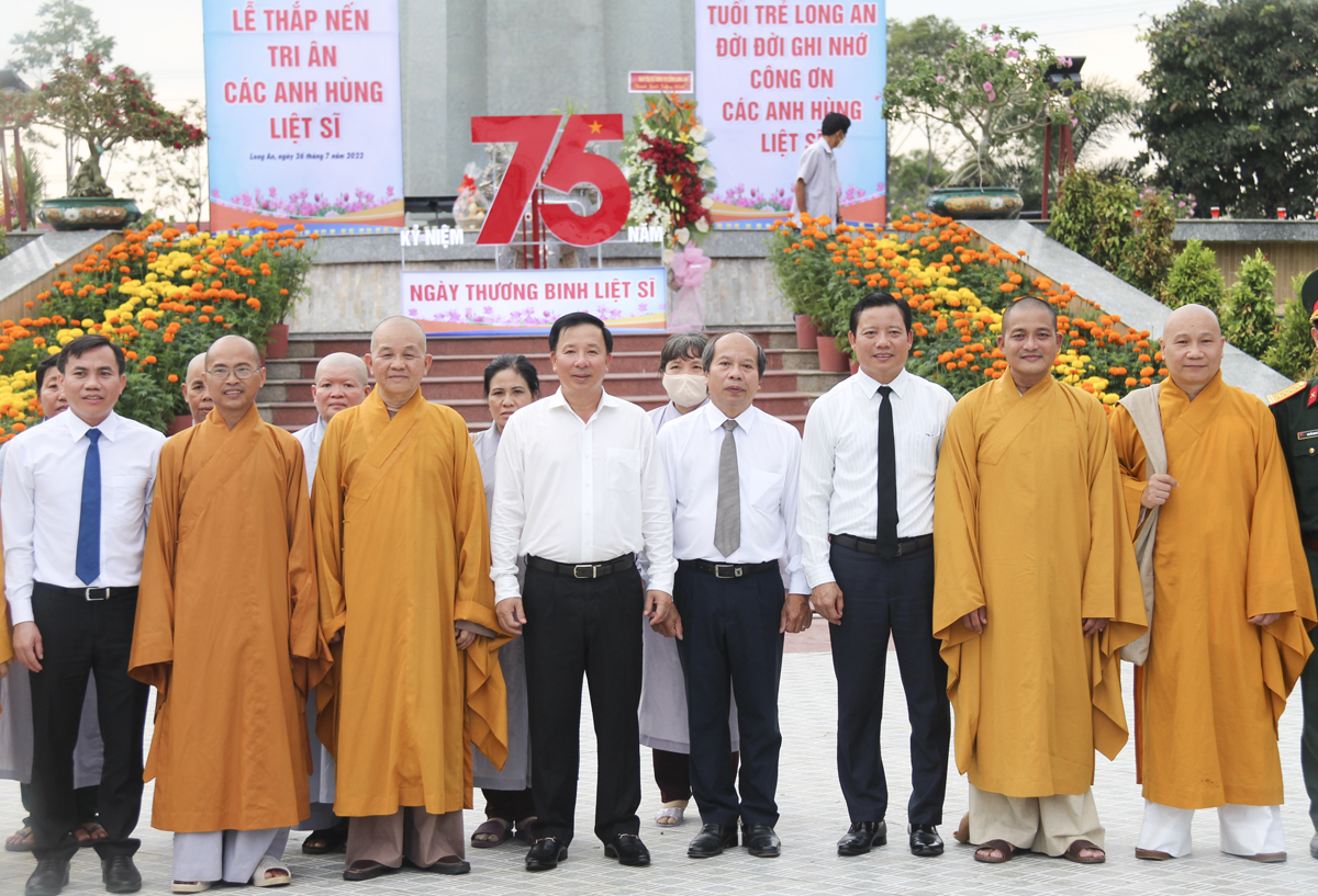 Nhằm tri ân, tôn kính và bày tỏ lòng biết ơn sâu sắc đến công lao to lớn, sự hy sinh cao cả của các Anh hùng liệt sĩ đối với sự nghiệp cách mạng, giành lại nền độc lập cho dân tộc, đồng thời phát huy và giáo dục truyền thống “Uống nước nhớ nguồn”, cầu nguyện cho anh linh Anh hùng liệt sĩ được siêu thoát. Chiều ngày 26 tháng 7 năm 2022 (nhằm ngày 28/6/Nhâm Dần), Ban Trị sự GHPGVN tỉnh Long An phối hợp cùng Sở Lao động Thương binh và Xã hội tỉnh Long An long trọng tổ chức Lễ Tưởng niệm Anh hùng liệt sĩ nhân kỷ niệm 75 năm ngày Thương binh – Liệt sĩ tại Nghĩa trang liệt sĩ tỉnh Long An.