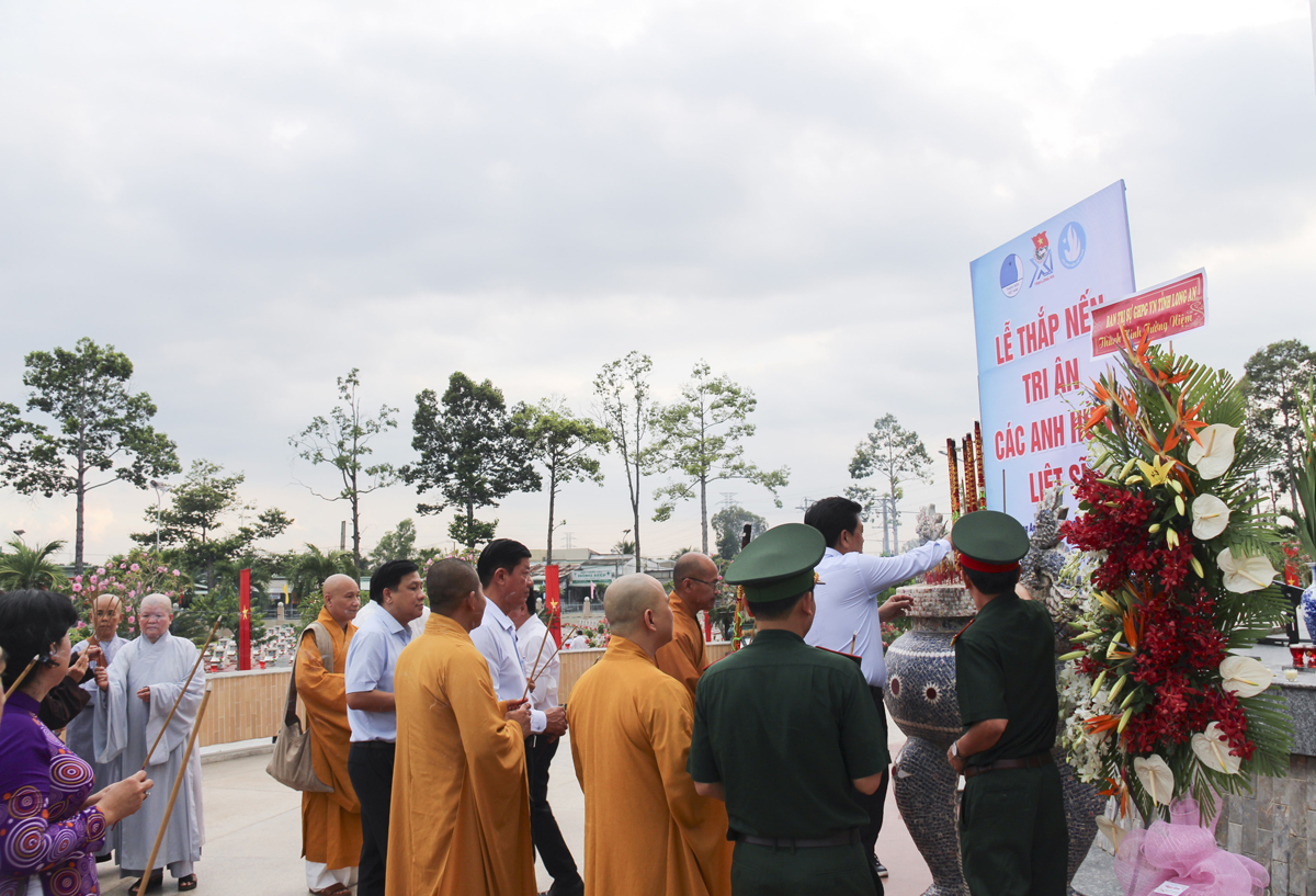 Trước khi Lễ Tưởng niệm diễn ra, Chư tôn đức Phật giáo tỉnh Long An với sự hướng dẫn của Hòa thượng Thích Minh Thiện đã thực hiện Nghi thức tụng kinh A Di Đà và Khóa lễ Mông Sơn Thí Thực, hồi hướng kỳ siêu Chư anh linh Anh hùng Liệt sĩ đã quên mình cho nền độc lập của đất nước Việt Nam