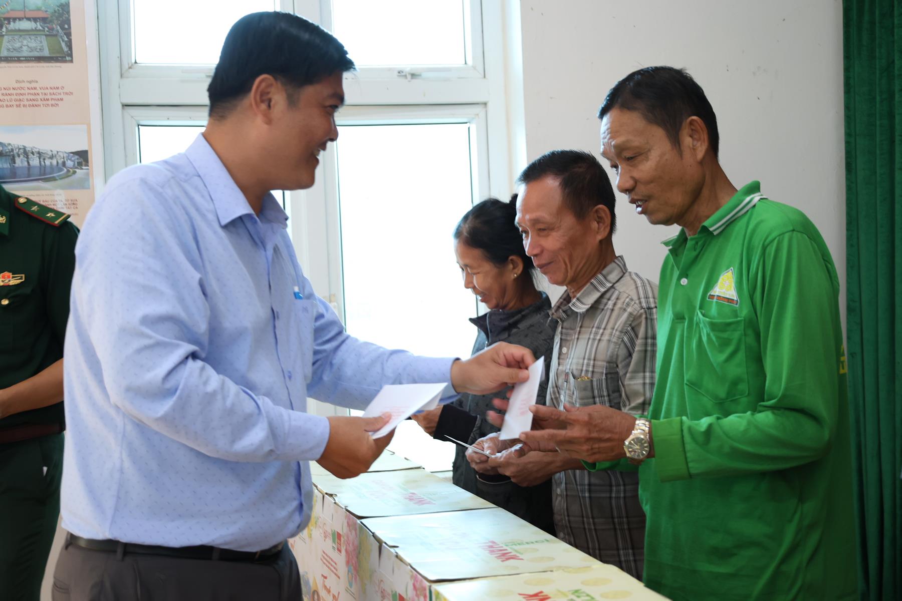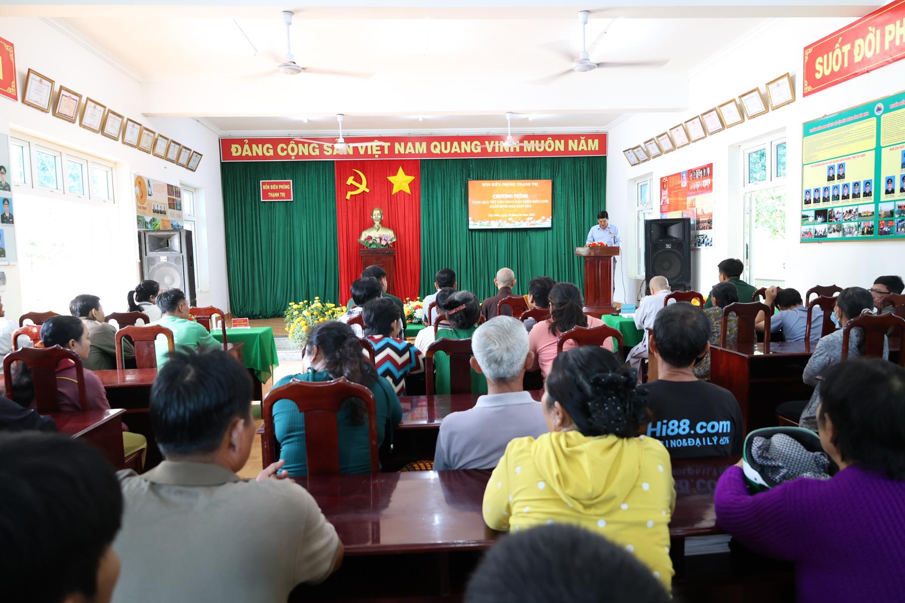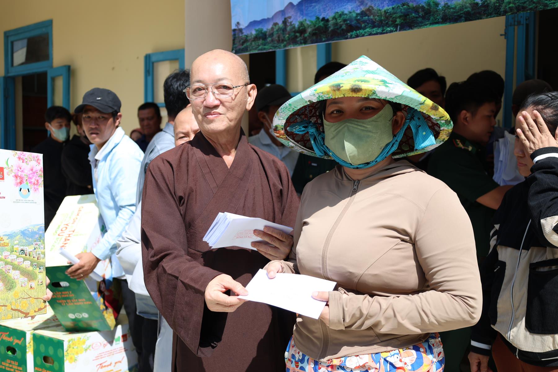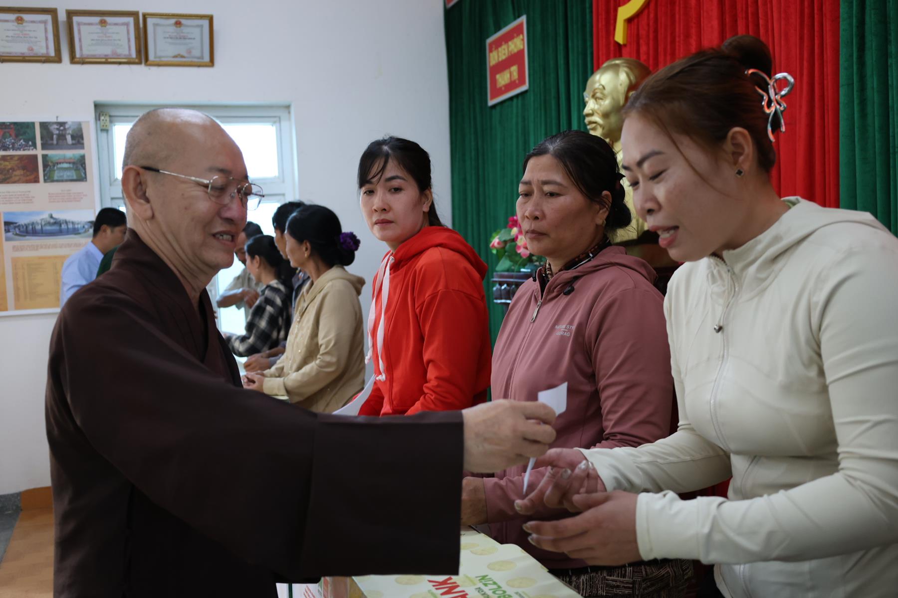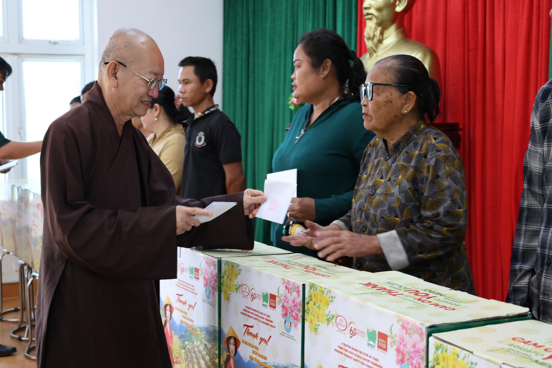 Tham dự buổi phát quà có: TT. Thích Quảng Tâm – UV HĐTS, Phó ban Từ thiện Xã hội TW, Trưởng BTS GHPGVN tỉnh Tây Ninh; NS. TN. Diệu Huệ – UVTT BTS GHPGVN tỉnh; ông Nguyễn Thanh Phú – Chủ tịch UBMTTQVN xã Bình Hiệp; ông Nguyễn Tuân – Nguyên Phó Chỉ huy Trưởng Bộ đội Biên phòng tỉnh Long An; Thiếu tá Phan Đình Huy – Phó Đội trưởng Đội Biên phòng Thạnh Trị; cùng đại diện mạnh thường quân.