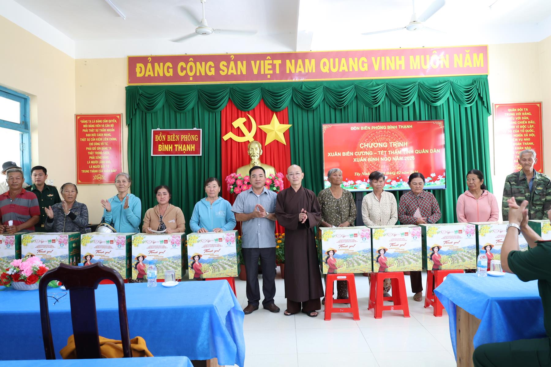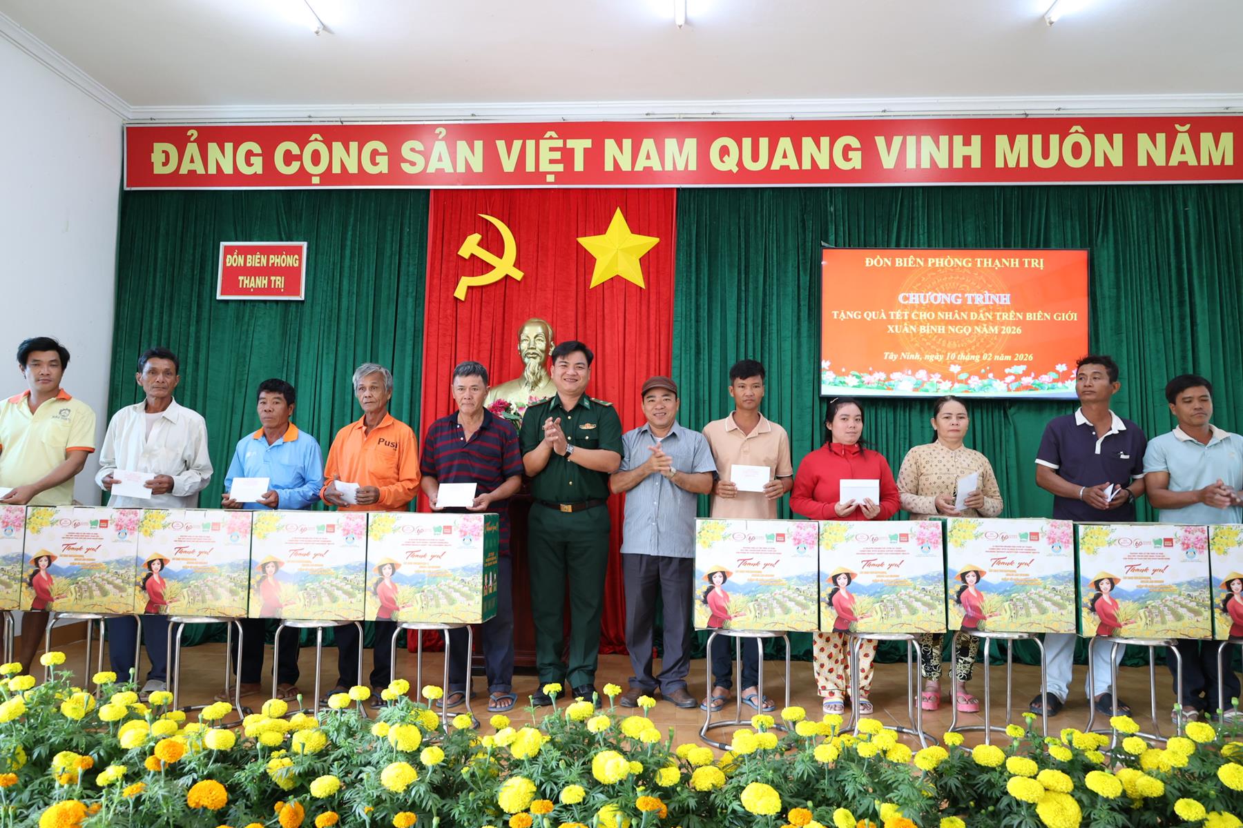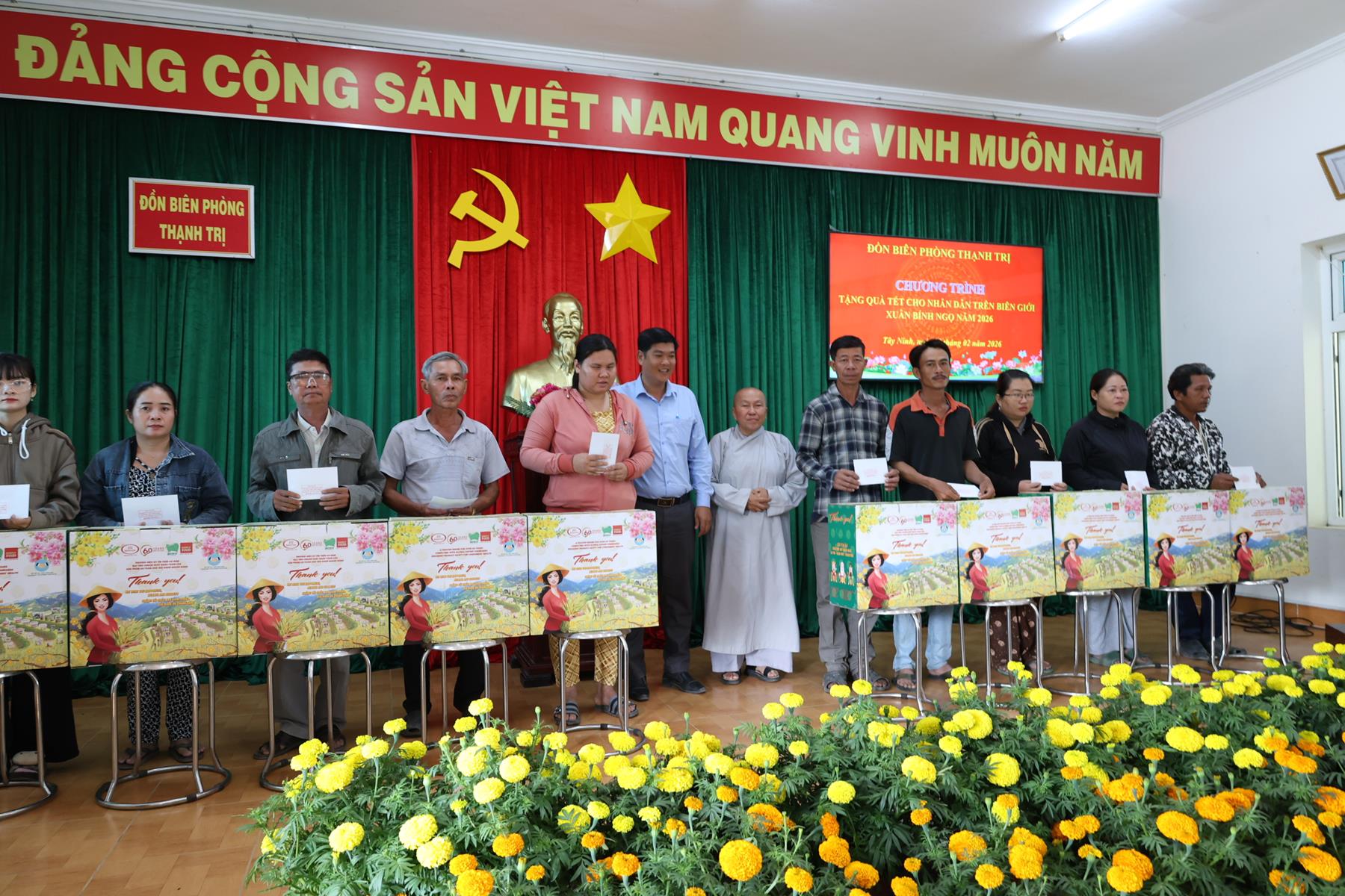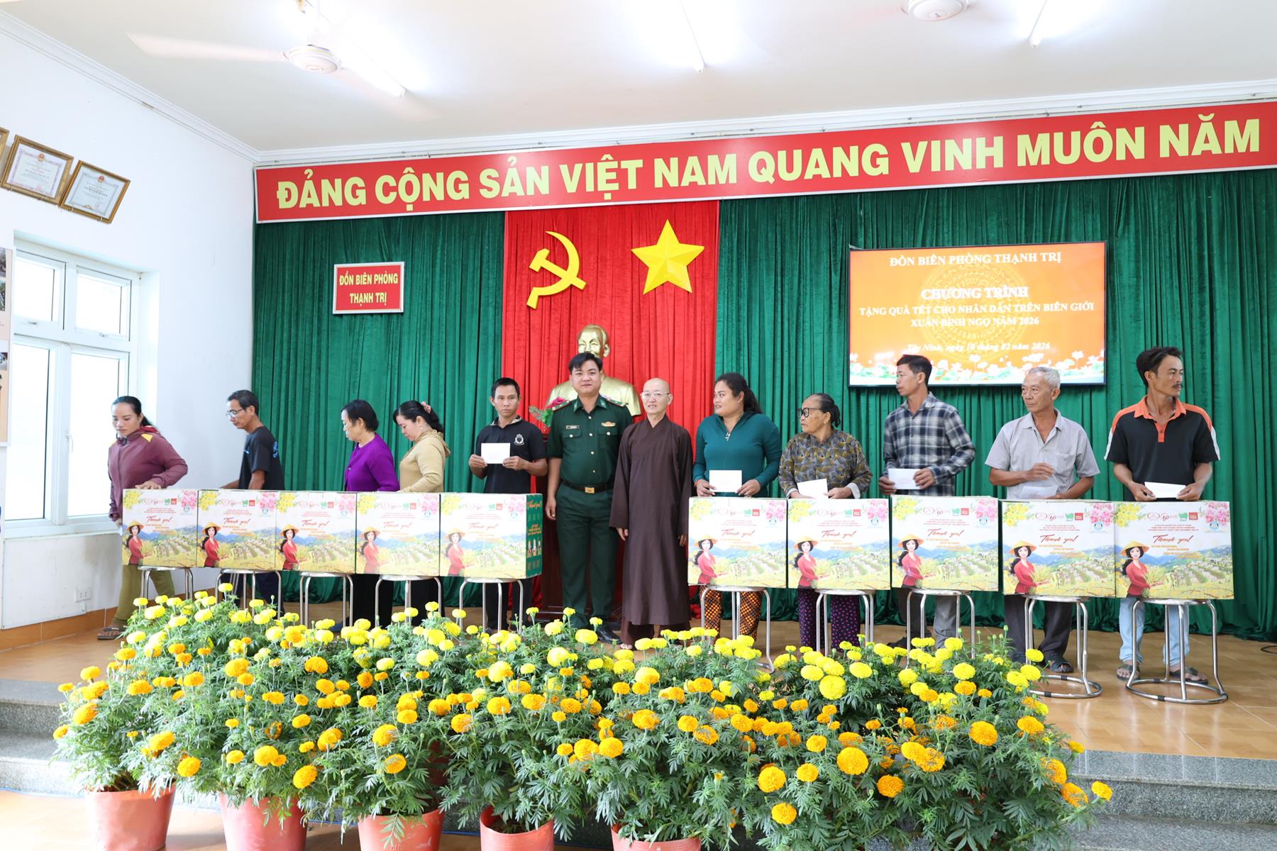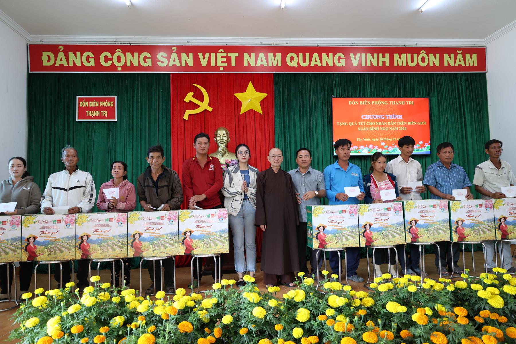 Ngày 10/02/2026, Ban Trị sự Giáo hội Phật giáo Việt Nam tỉnh Tây Ninh phối hợp Đồn Biên phòng Thạnh Trị, xã Bình Hiệp và Đồn biên phòng Bình Thạnh xã Bình Hòa tỉnh Tây Ninh tổ chức trao quà tết cho người dân biên giới nhân dịp Tết Nguyên đán Bính Ngọ năm 2026.