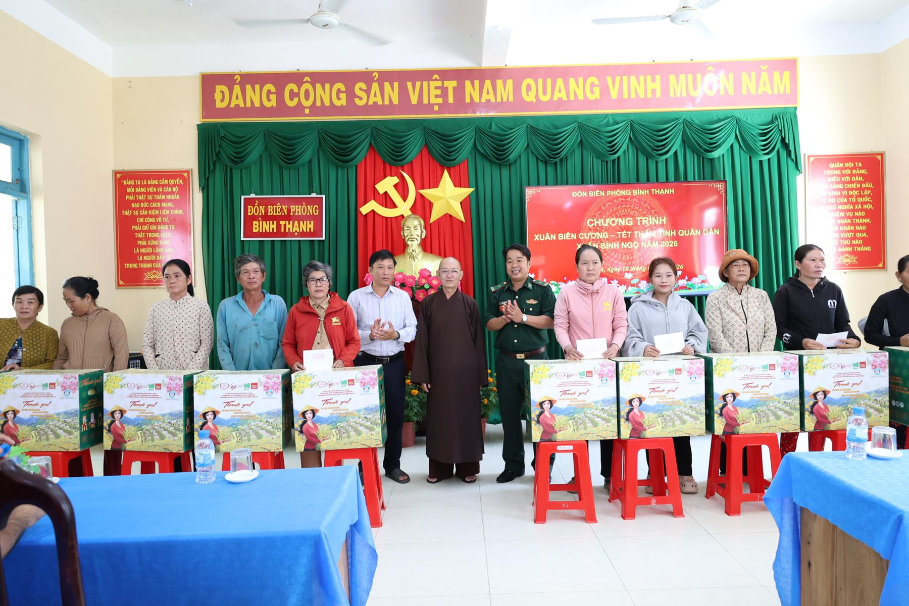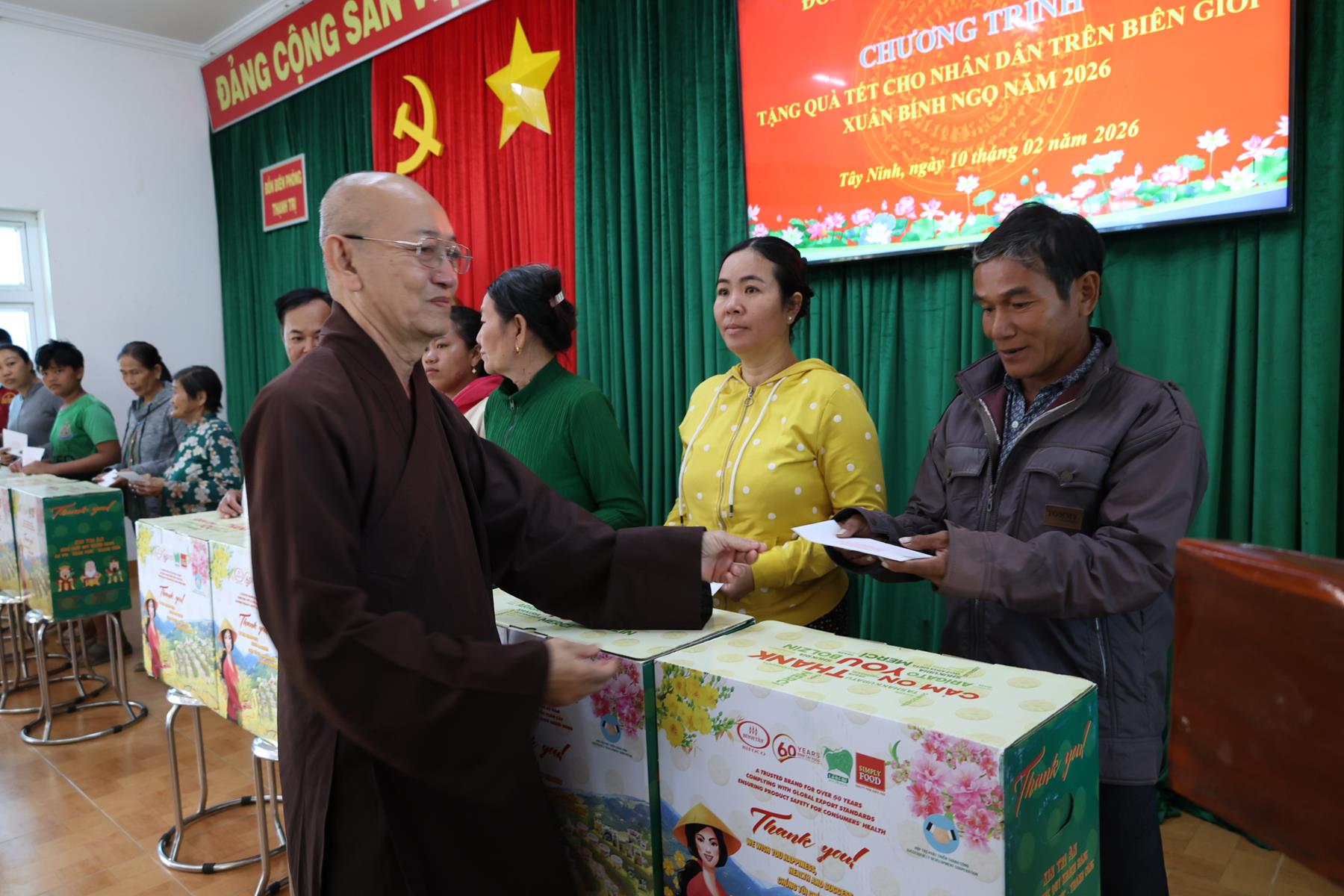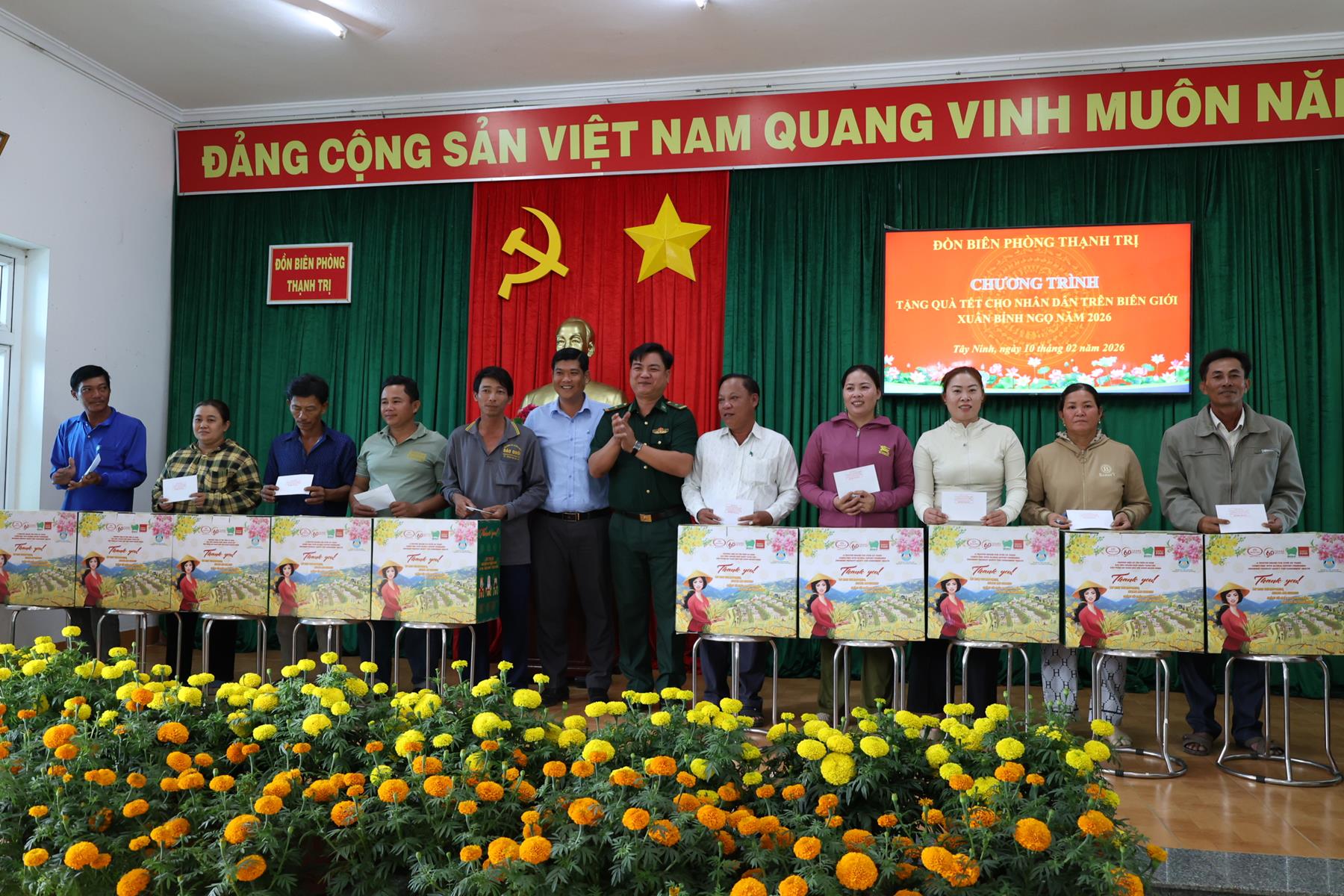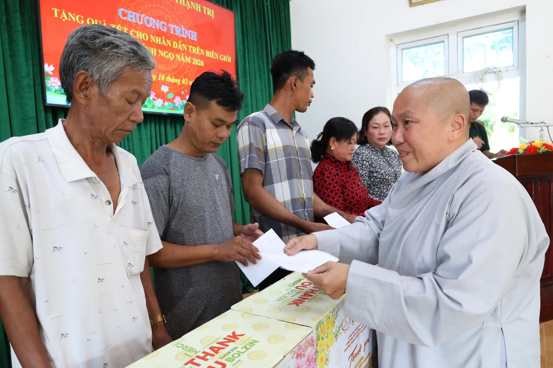 Ngày 10/02/2026, Ban Trị sự Giáo hội Phật giáo Việt Nam tỉnh Tây Ninh phối hợp Đồn Biên phòng Thạnh Trị, xã Bình Hiệp và Đồn biên phòng Bình Thạnh xã Bình Hòa tỉnh Tây Ninh tổ chức trao quà tết cho người dân biên giới nhân dịp Tết Nguyên đán Bính Ngọ năm 2026.