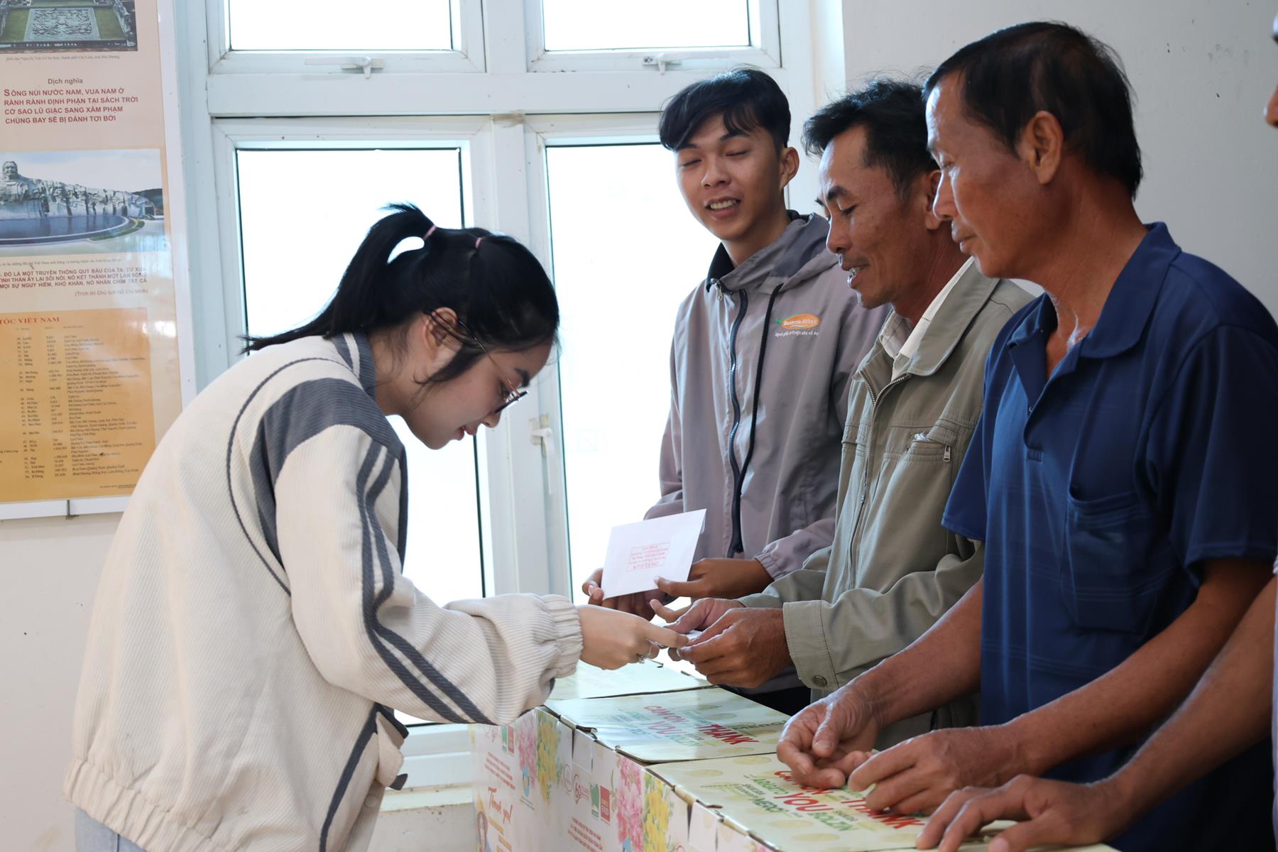 Tại đây, các đơn vị phối hợp tổ chức trao tặng 500 phần quà cho gia đình chính sách, hộ nghèo, hộ có hoàn cảnh đặc biệt khó khăn và các em học sinh trong chương trình “Nâng bước em tới trường” trên địa bàn xã Bình Hiệp. Mỗi phần quà trị giá 1 triệu đồng (gồm tiền mặt và nhu yếu phẩm), tổng trị giá quà tặng 500 triệu đồng.