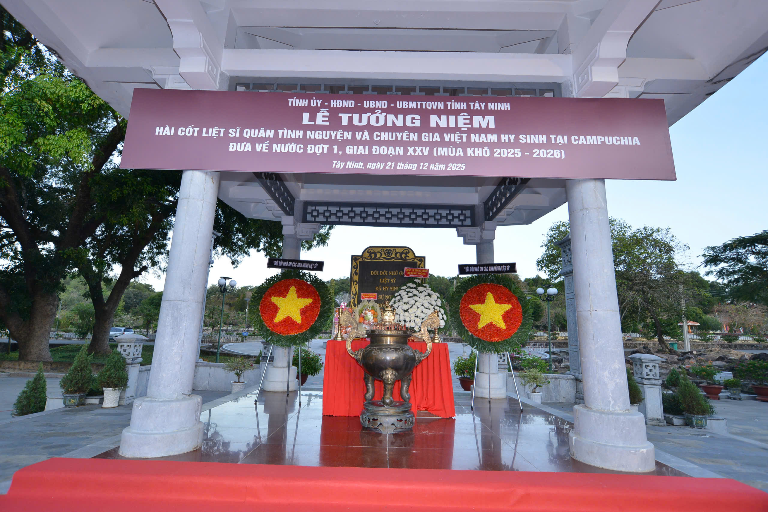 Chiều ngày 21/12/2025, BTS GHPGVN tỉnh Tây Ninh phối hợp lãnh đạo chính quyền tỉnh Tây Ninh tổ chức Lễ Tưởng niệm hài cốt Liệt sĩ quân tình nguyện và chuyên gia Việt Nam hy sinh tại Campuchia đưa về nước đợt 1, gia đoạn XXV (mùa khô 2025-2026) nhân kỷ niệm 81 năm ngày thành lập Quân đội nhân dân Việt Nam.