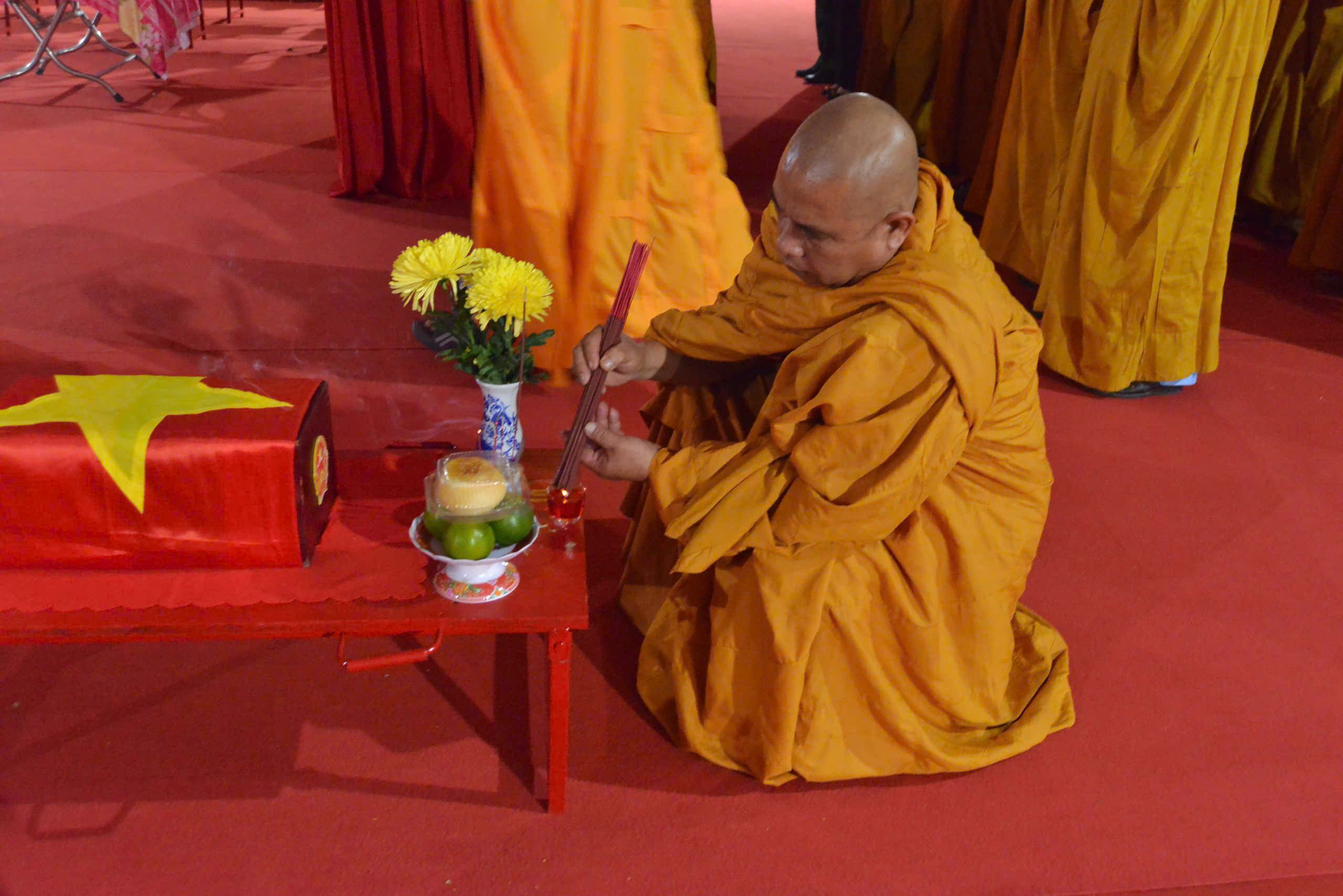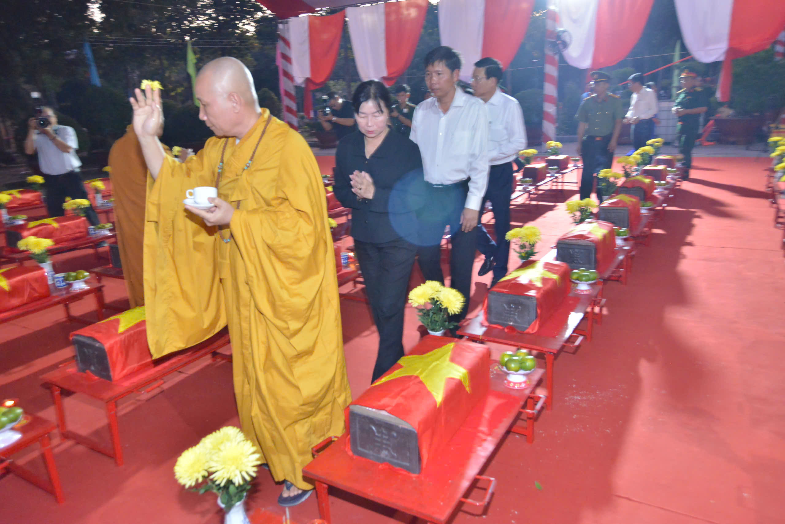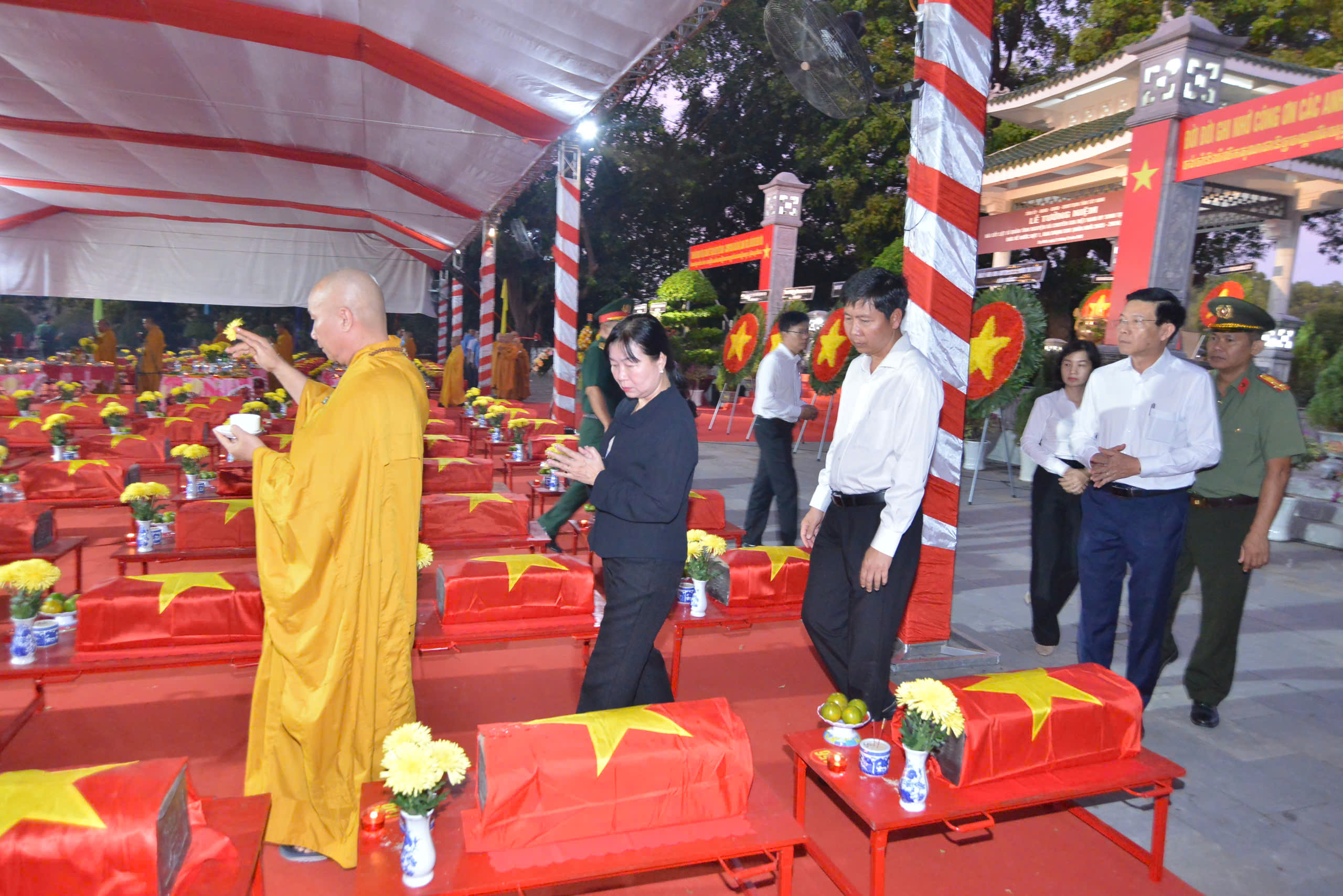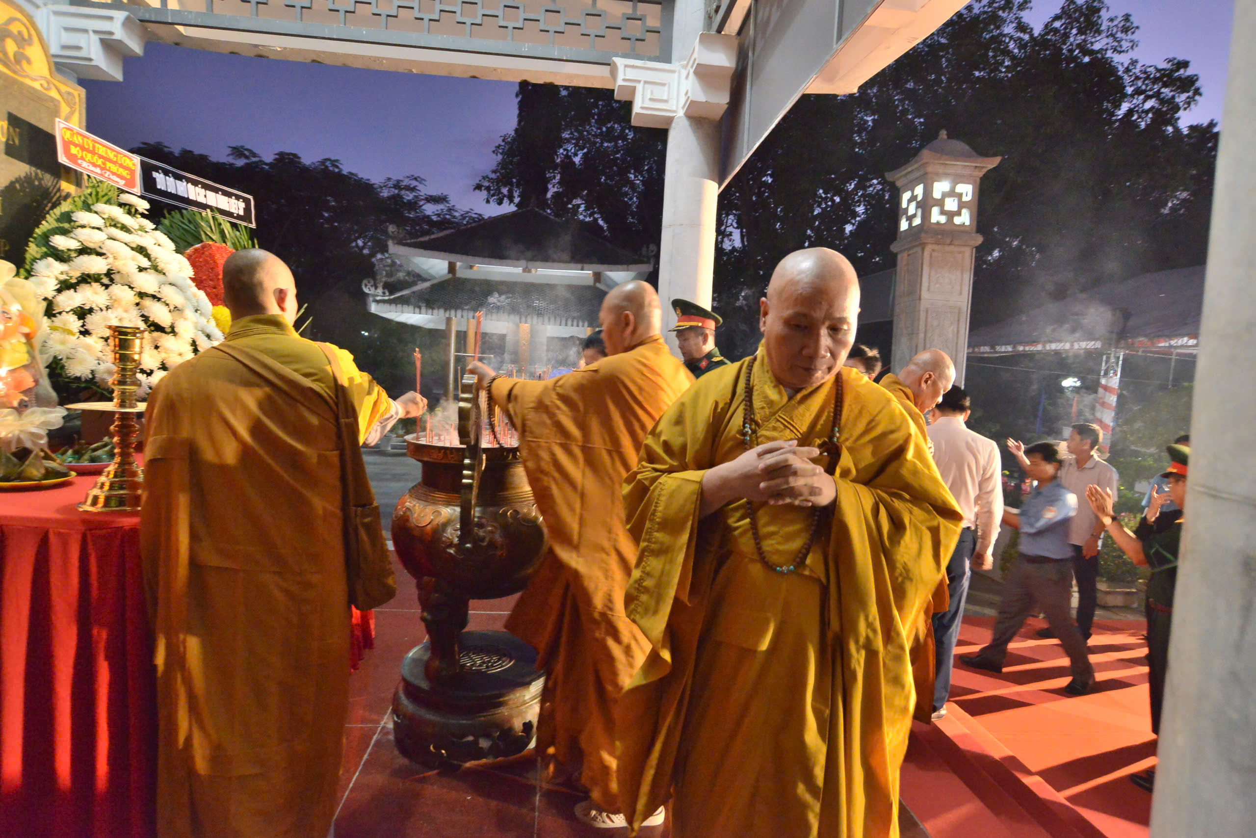 Sau lễ hành chính, Chư Tôn đức và các cấp lãnh đạo chính quyền đã thực hiện nghi thức dâng hương tưởng niệm.