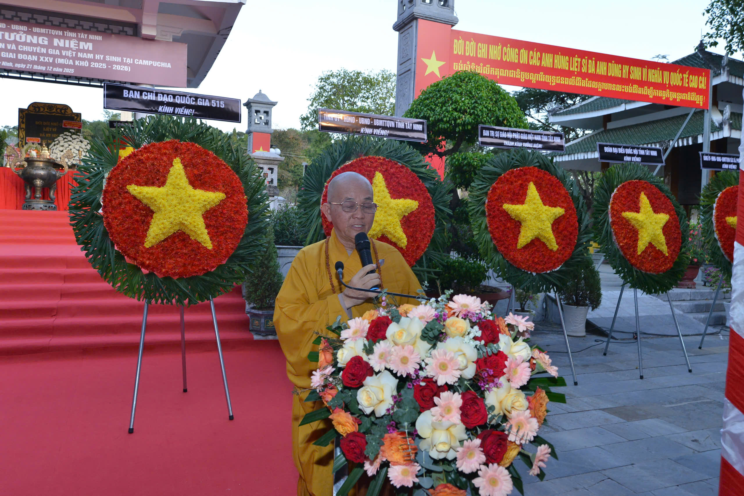 Chiều ngày 21/12/2025, BTS GHPGVN tỉnh Tây Ninh phối hợp lãnh đạo chính quyền tỉnh Tây Ninh tổ chức Lễ Tưởng niệm hài cốt Liệt sĩ quân tình nguyện và chuyên gia Việt Nam hy sinh tại Campuchia đưa về nước đợt 1, gia đoạn XXV (mùa khô 2025-2026) nhân kỷ niệm 81 năm ngày thành lập Quân đội nhân dân Việt Nam.