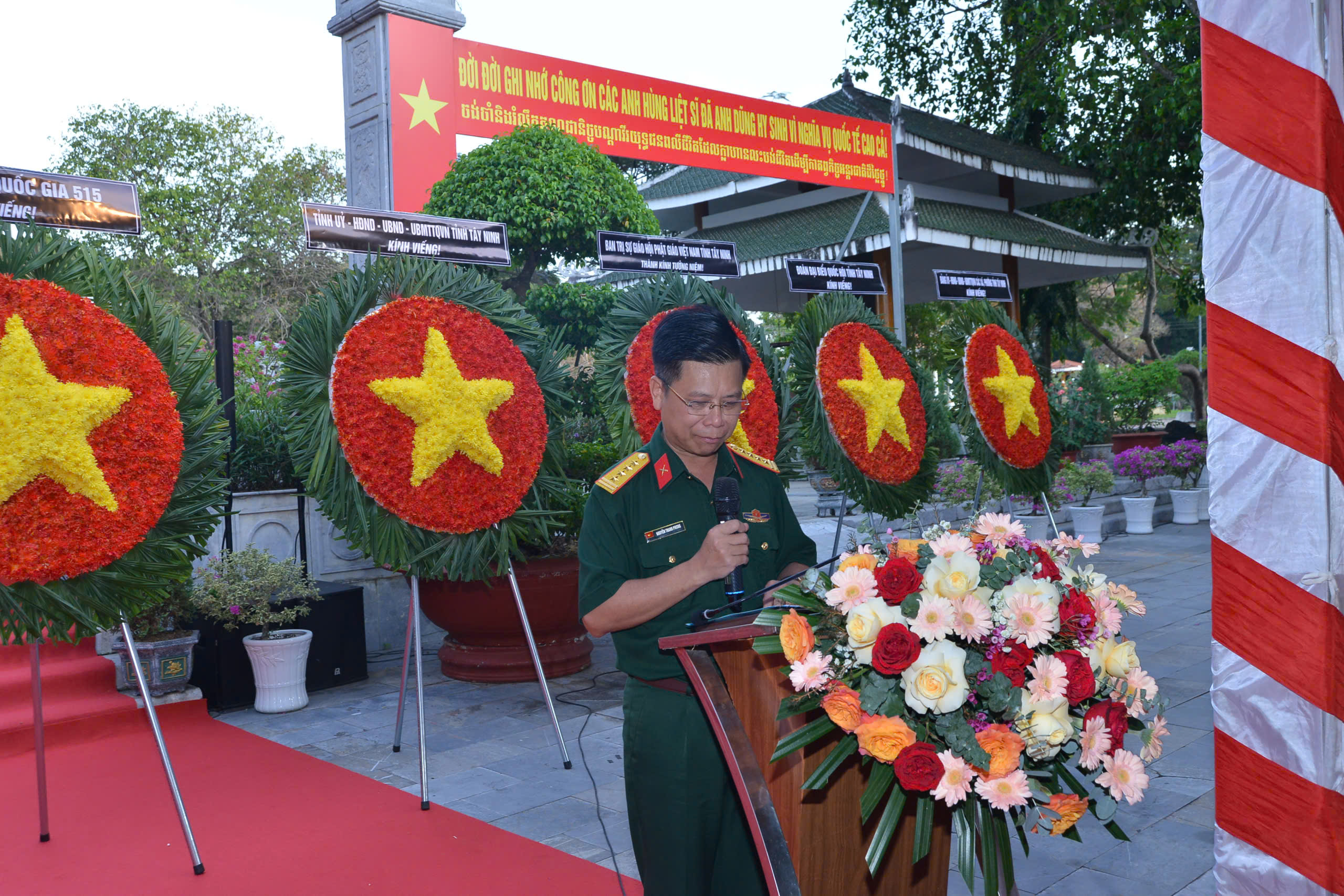 Phát biểu tại buổi lễ, Đại tá Nguyễn Thanh Phong – Chính ủy Bộ Chỉ huy Quân sự tỉnh, Phó Trưởng ban Thường trực Ban Chỉ đạo 515 tỉnh Tây Ninh cho biết, đây là dịp để ôn lại lịch sử hào hùng của dân tộc Việt Nam nói chung, quân và nhân tỉnh Tây Ninh nói riêng trong các cuộc chiến tranh bảo vệ Tổ quốc và làm nghĩa vụ quốc tế. Không có cờ độc lập nào không được tô thắm bằng máu đào của liệt sĩ, không có tượng đài tự do nào không được xây bằng xương máu của Nhân dân và các anh hùng liệt sĩ. Với truyền thống đấu tranh anh dũng, bất khuất và thành tích đặc biệt xuất sắc trong phong trào yêu nước chống ngoại xâm, quân và dân tỉnh Tây Ninh được Trung ương tặng thưởng danh hiệu vẻ vang “Trung dũng kiên cường”.