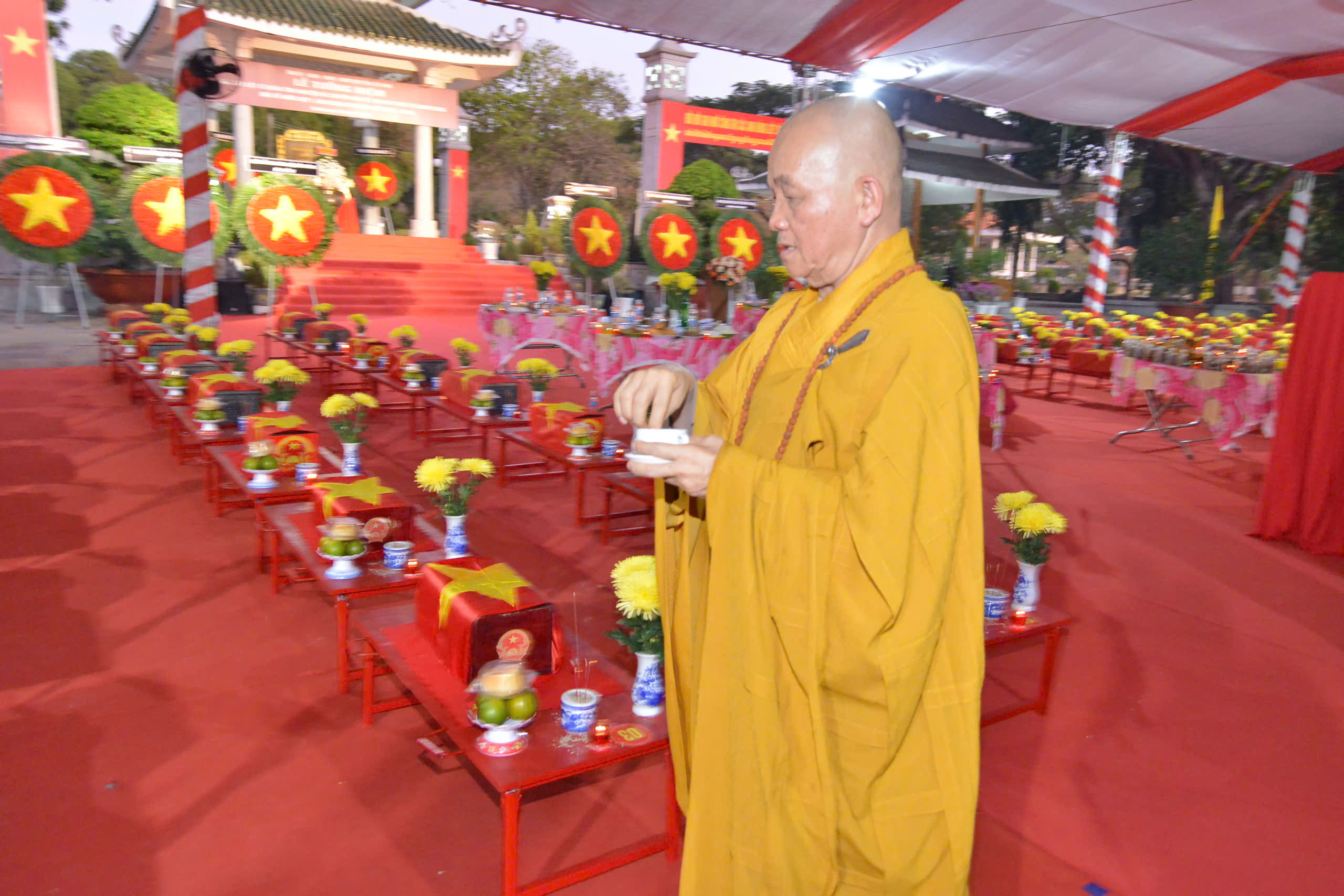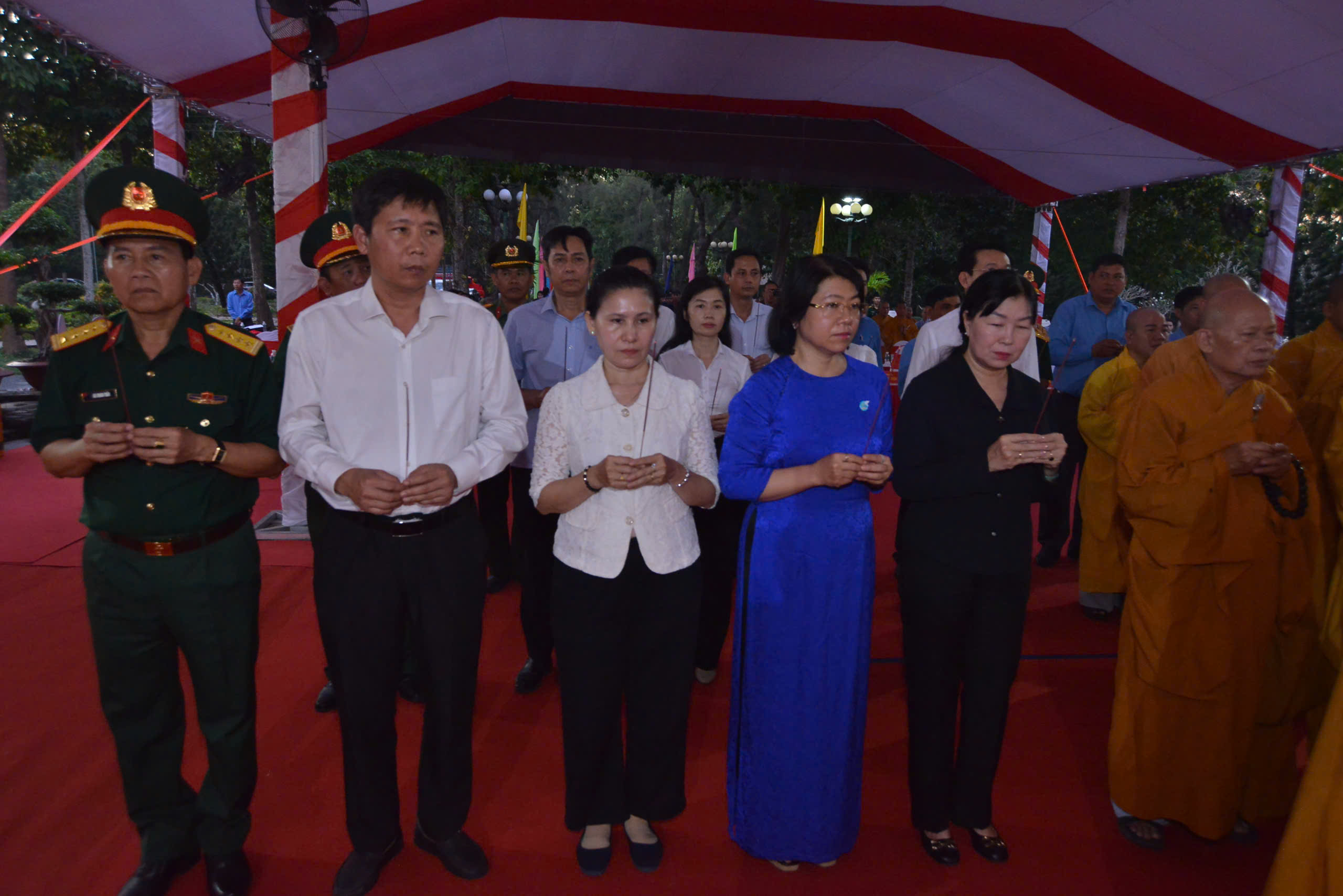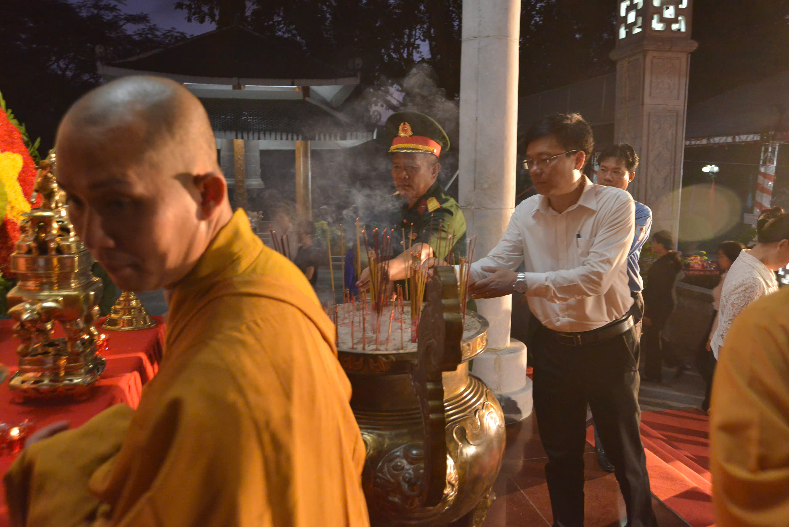 Sau lễ hành chính, Chư Tôn đức và các cấp lãnh đạo chính quyền đã thực hiện nghi thức dâng hương tưởng niệm.