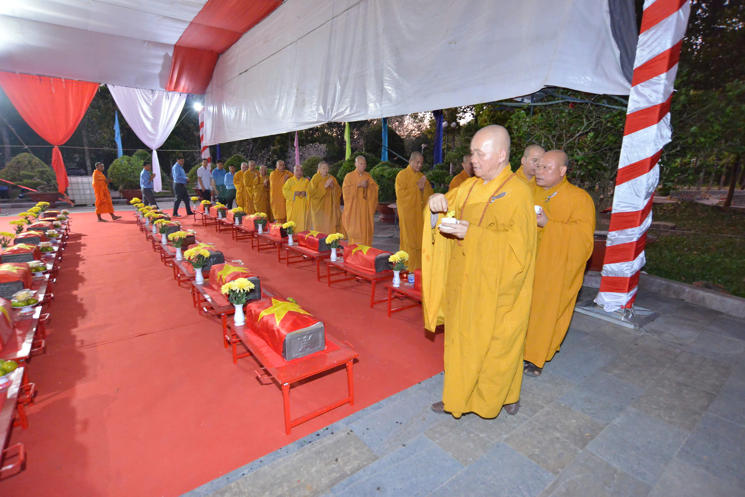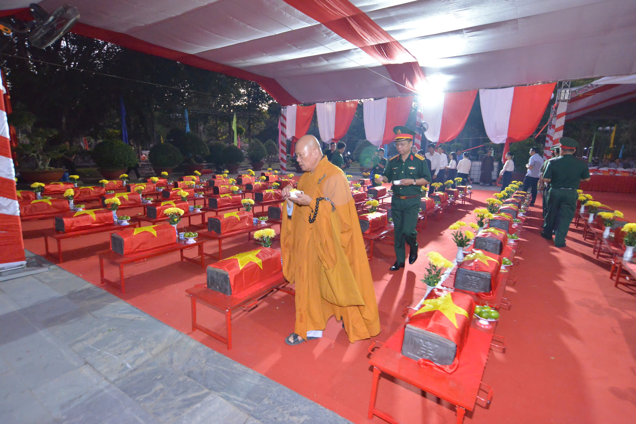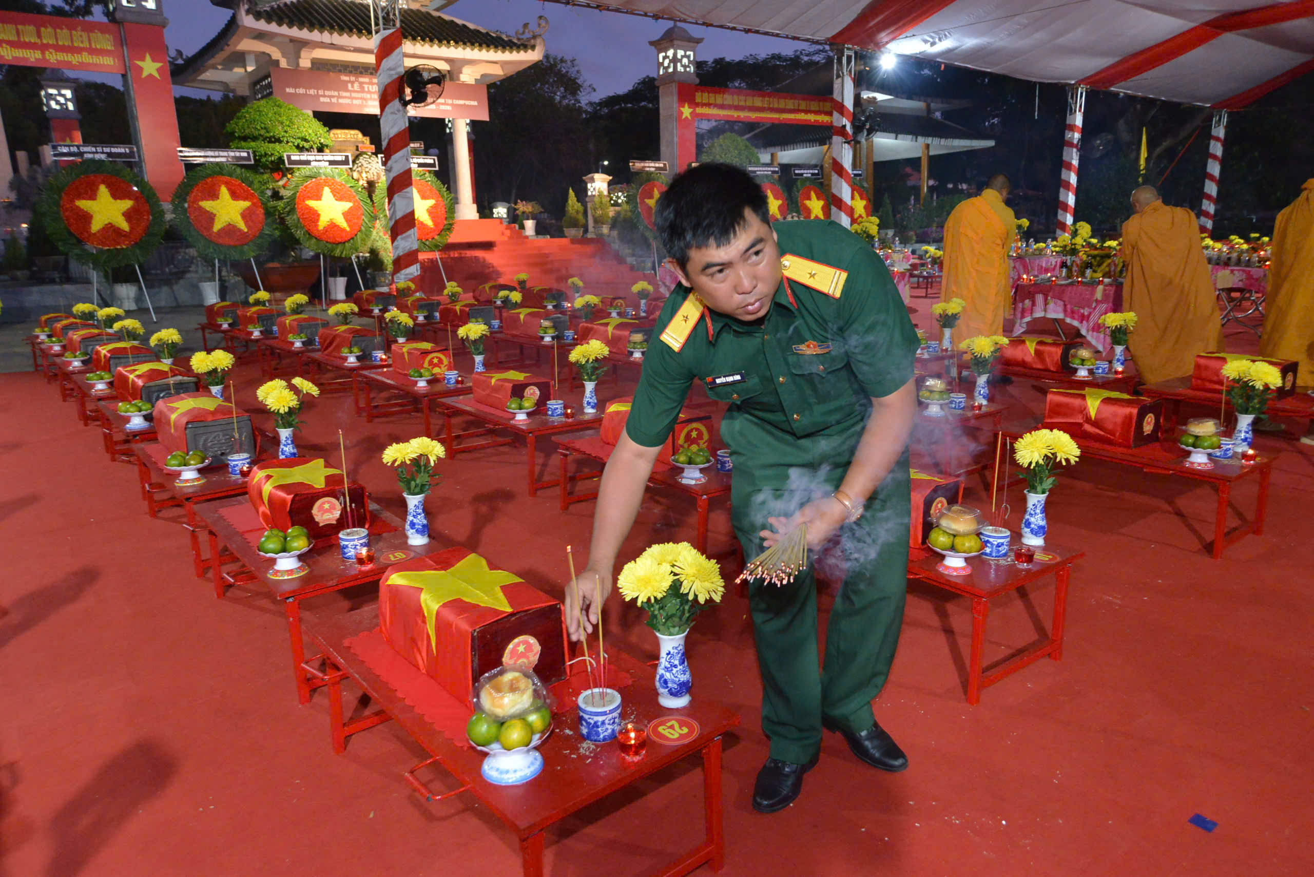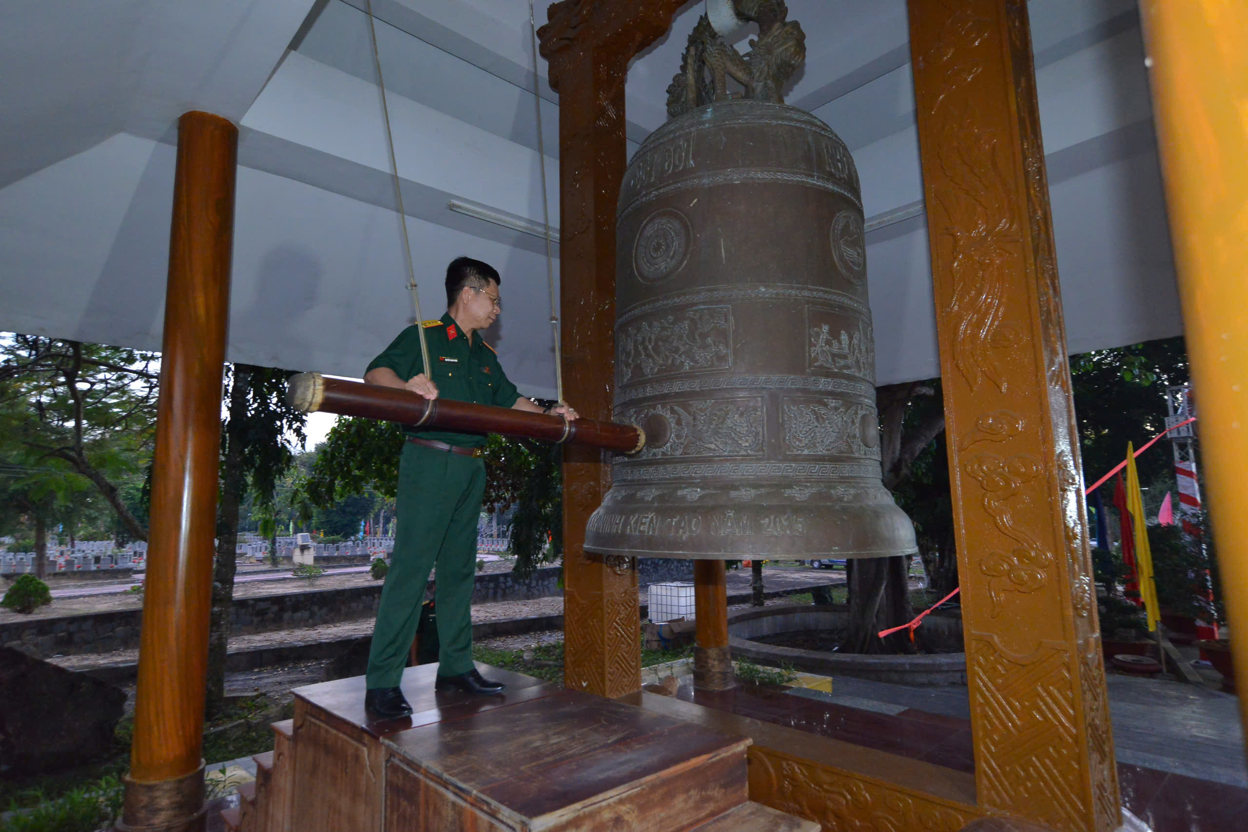 Tại buổi lễ, Đại tá Nguyễn Thanh Phong – Chính ủy Bộ Chỉ huy Quân sự tỉnh, Phó Trưởng ban Thường trực Ban Chỉ đạo 515 tỉnh Tây Ninh thực hiện nghi thức gióng ba hồi chuông chiêu tập anh linh các anh hùng liệt sĩ. Đại diện Quân khu 7, Bộ Chỉ huy Quân sự tỉnh, các sở, ban, ngành, chính quyền địa phương và các hòa thượng kính cẩn nghiêng mình mặc niệm tưởng nhớ các anh hùng liệt sĩ đã anh dũng hy sinh vì sự nghiệp giải phóng dân tộc.