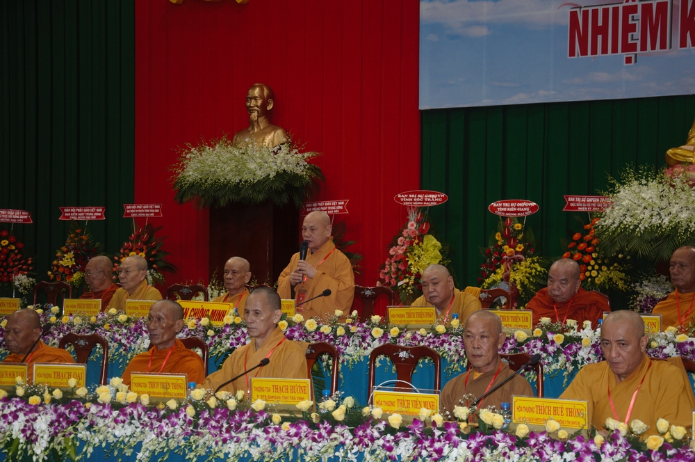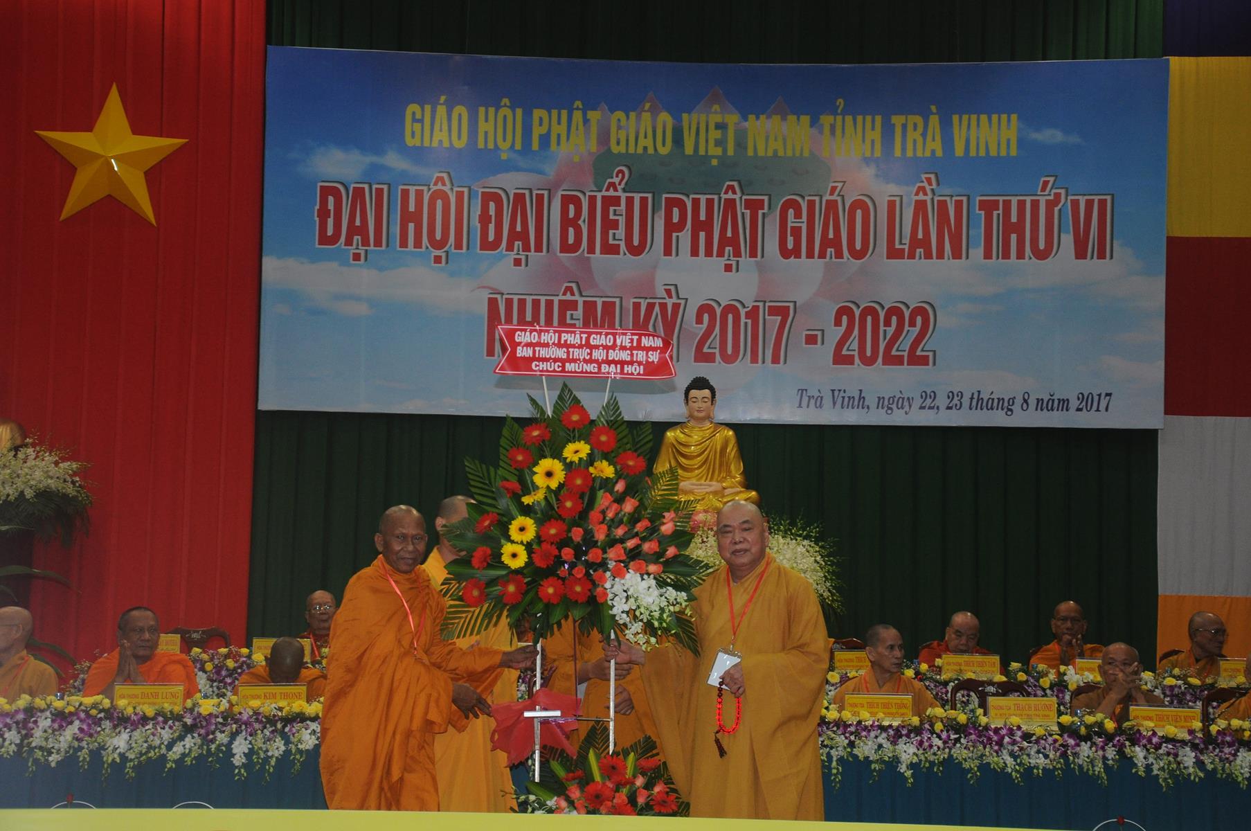 Đại hội vinh dự lắng nghe lời đạo từ của HT Thích Thiện Nhơn: Chủ tịch Hội đồng Trị sự GHPGVN. Hòa thượng vô cùng hoan hỷ bởi Đại hội hôm nay diễn ra trong không khí trang nghiêm, đoàn kết hòa hợp trên mảnh đất Trà Vinh anh dũng kiên cường, là một trong những cái nôi cách mạng của miền tây nam bộ dưới sự lãnh đạo của bác Dương Quang Đông-Bí thư Xứ uỷ Nam kỳ; Đồng thời cũng là một trong những cái nôi Phật giáo của miền tây nam bộ trong phong trào chấn hưng Phật giáo Việt Nam dưới sự lãnh đạo của ngũ tổ: Khánh Hòa, Huệ Quang, Khánh Anh, Pháp Hải, Diệu Pháp.