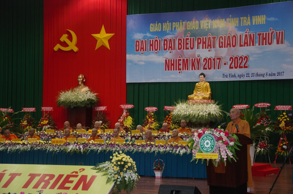 Sáng nay, vào lúc 7 giờ 30, ngày 23 tháng 8 năm 2017 (nhằm 02/7/Đinh Dậu), Ban Trị sự GHPGVN tỉnh Trà Vinh trọng thể cử hành Đại hội Đại biểu Phật giáo lần thứ VI nhiệm kỳ (2017-2022), chủ đề “Đoàn kết, ổn định, Phát triển” tại Trung tâm Hội nghị tỉnh Trà Vinh.