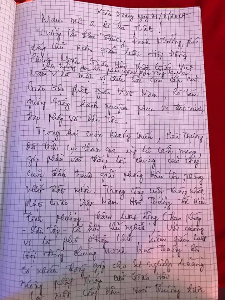 Chính phủ tri ân nhưng đóng góp của Hoà thượng cho sự nghiệp giải phóng dân tộc, xây dựng và bảo vệ tổ quốc Việt Nam Xã hội Chủ nghĩa.