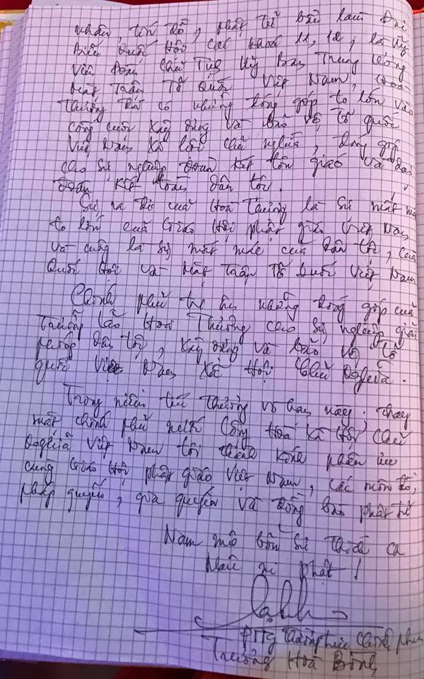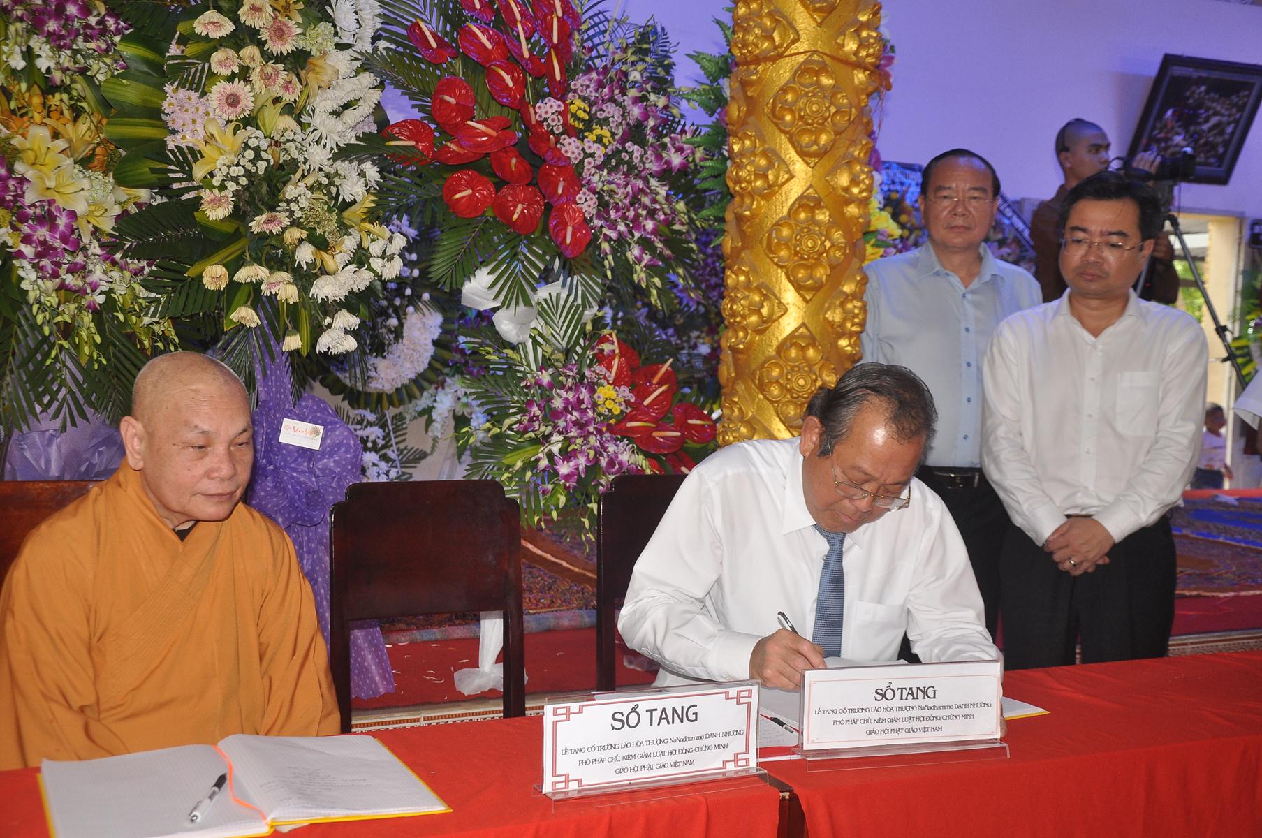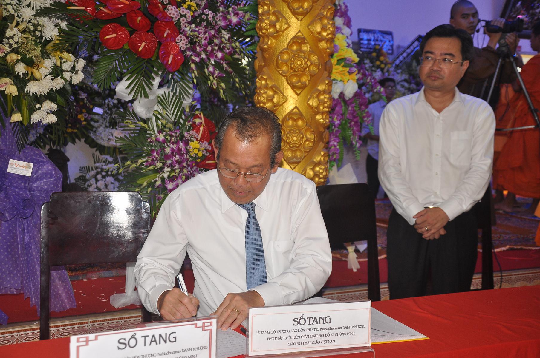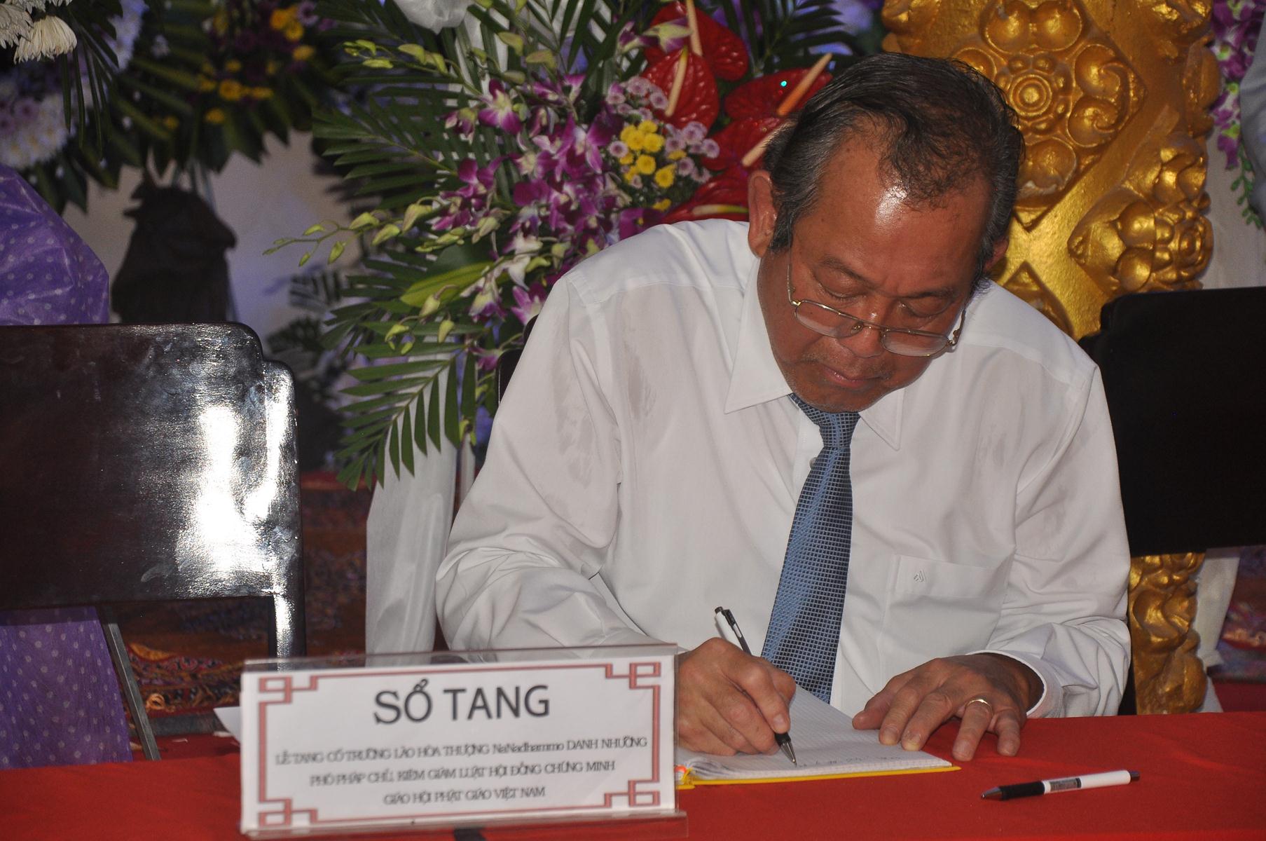 Trong niềm tiếc thương vô hạn này, thay mặt Chính phủ nước Cộng hoà xã hội chủ nghĩa Việt Nam tôi thành kính phân ưu cùng Giáo hội Phật giáo Việt Nam, các môn đồ pháp quyến, gia quyến và đồng bào Phật tử.