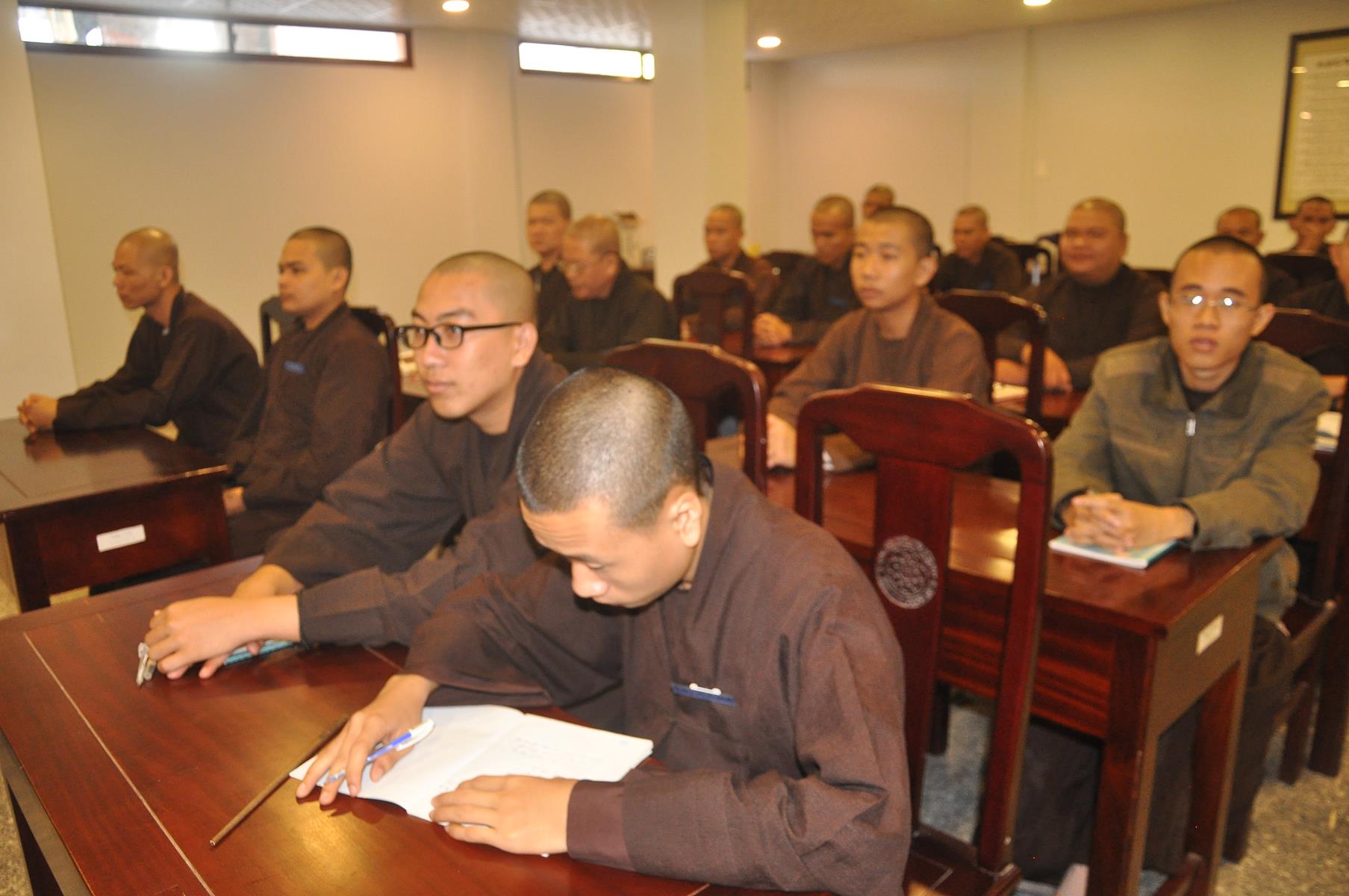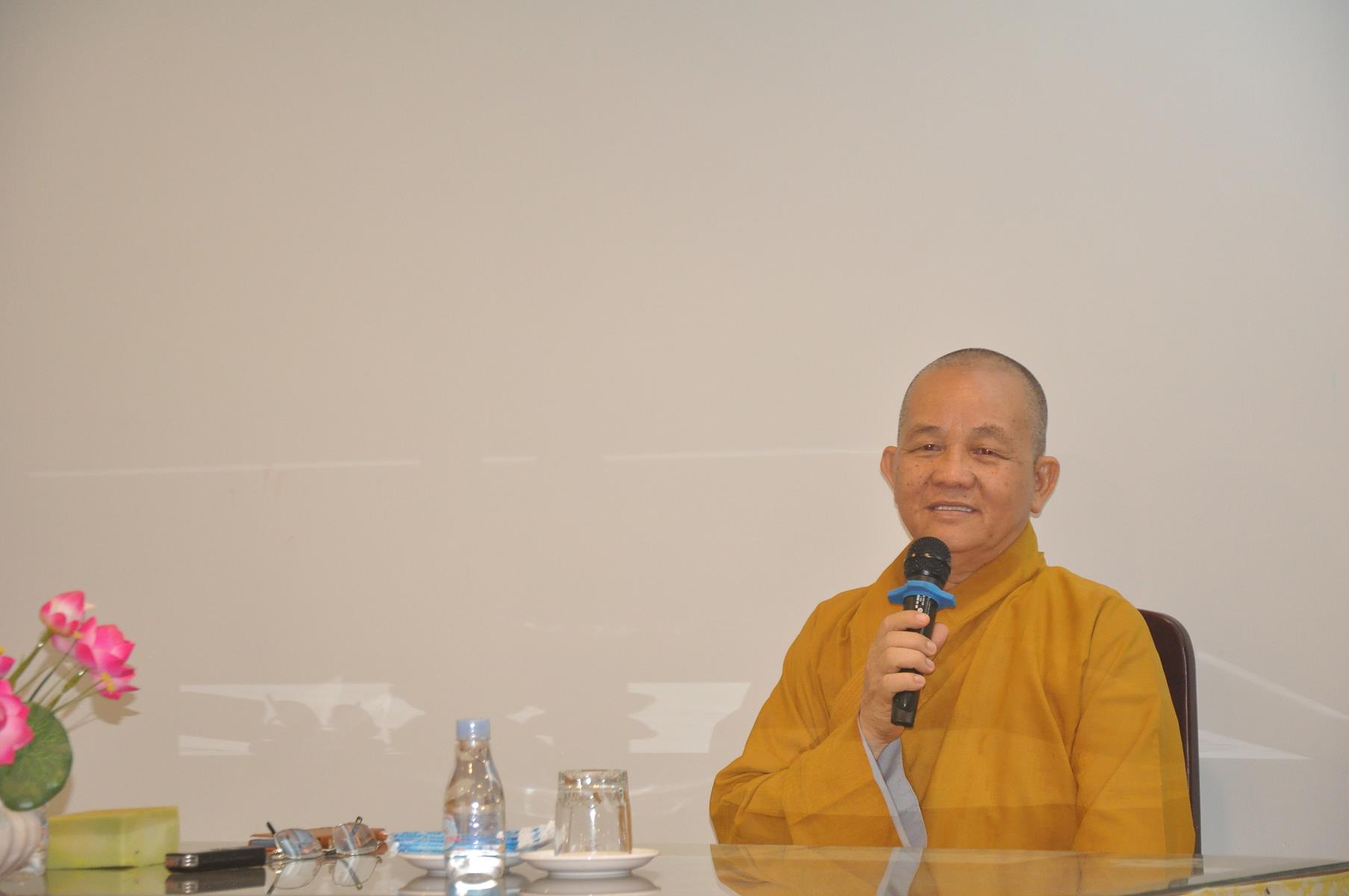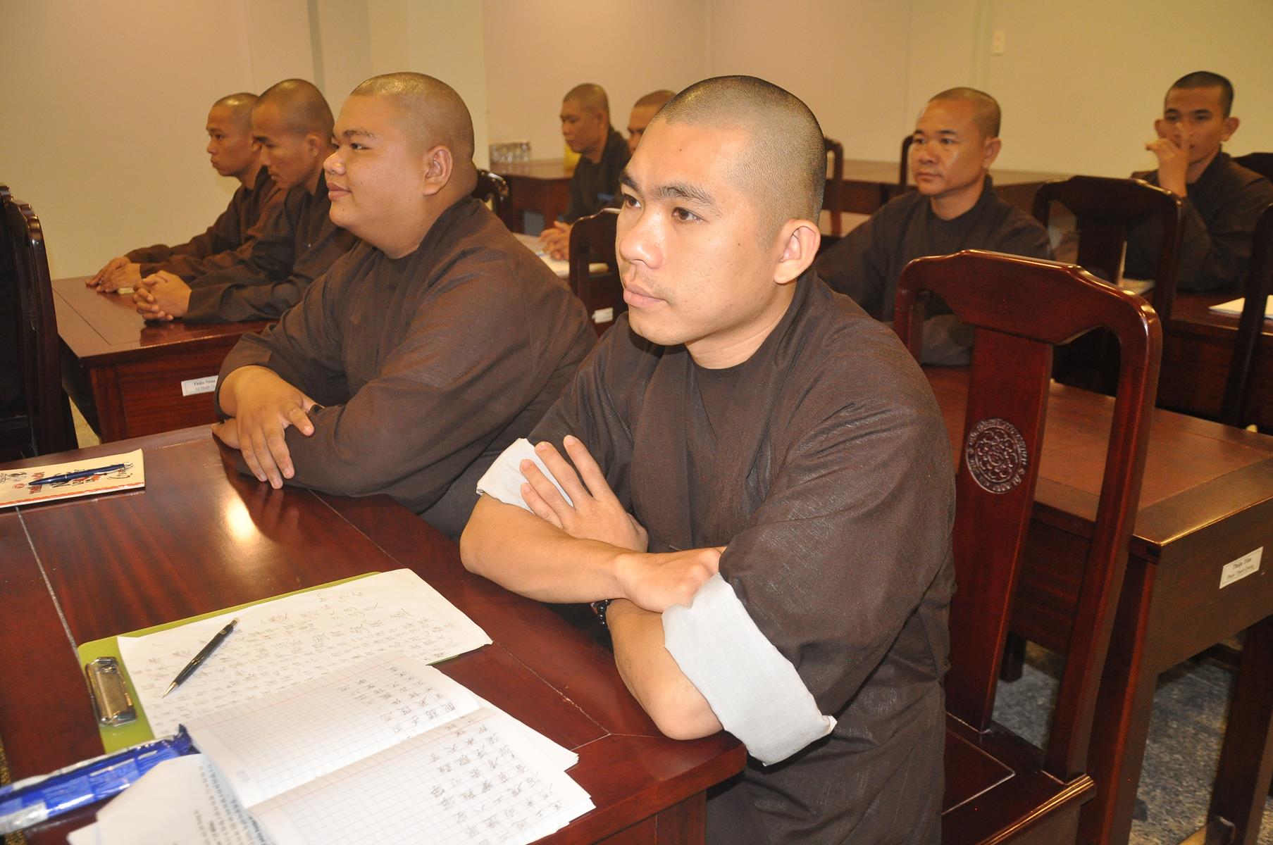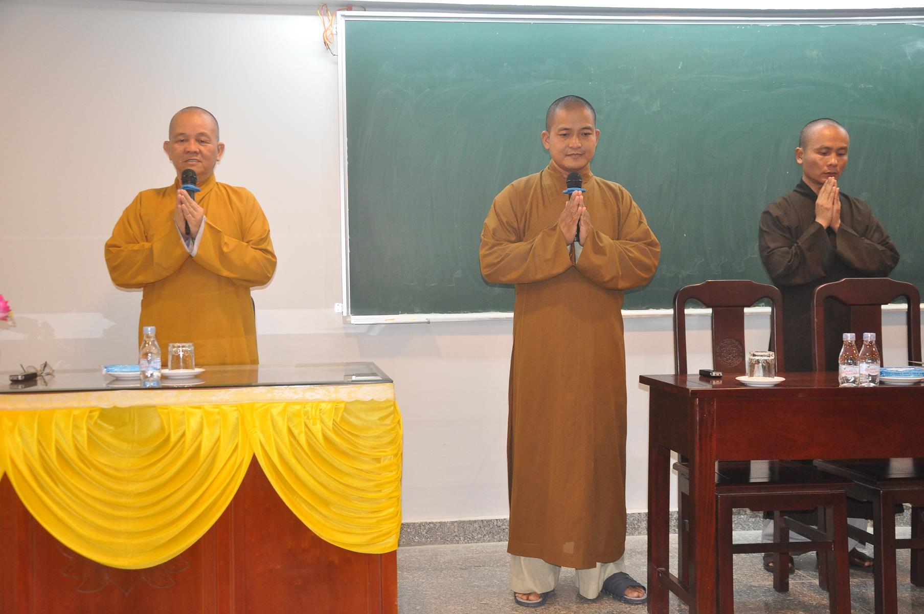 Sau những lời thăm hỏi, động viên, khích lệ đầy thương yêu, Hòa Thượng đã có những chia sẻ thật xúc động, ‘hôm nay Thầy về đây dành thời gian để chia sẻ cùng với các con sự tu, sự học. Nếu có thể gọi các con là con, thì Thầy sẽ xem các con là con của mình; nếu có thể gọi các con là em, thì Thầy sẽ xem các con là em của mình, năm nay Thầy tuổi đã ngoài 60, nhưng Thầy vẫn thấy sự học của mình chưa bao giờ là đủ, sự tu vẫn còn thiếu. Do đó, việc gì có thể làm lợi ích cho đàn hậu tấn, Thầy đều phát nguyện làm tròn công việc đó và Thầy gởi trọn niềm tin vào thế hệ tương lai, những người kế thừa sự nghiệp hoằng dương Phật pháp tại lớp Sơ Cấp này, mong các con ghi nhớ. Thầy trò chúng ta đang tiếp nhận năng lượng của Phật tổ, những vị tiền bối đối với mình, ai cũng mong muốn chúng ta làm tròn lời nguyện ban đầu’ “Hủy hình thủ chí tiết, cát ái từ sở thân, xuất gia hoằng thánh đạo, nguyện độ nhất thiết nhân”.