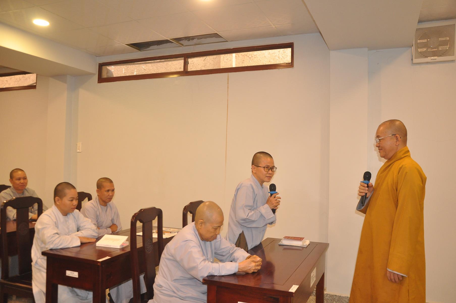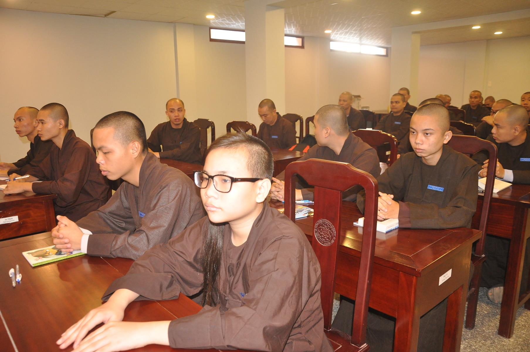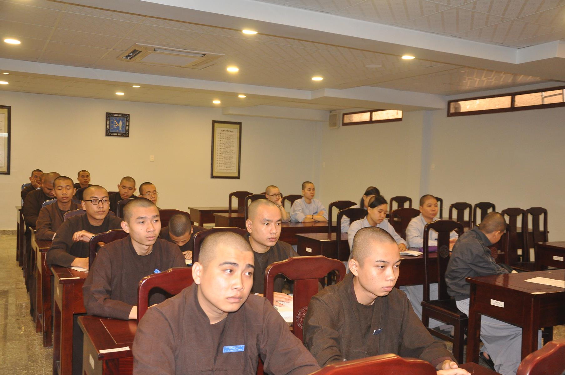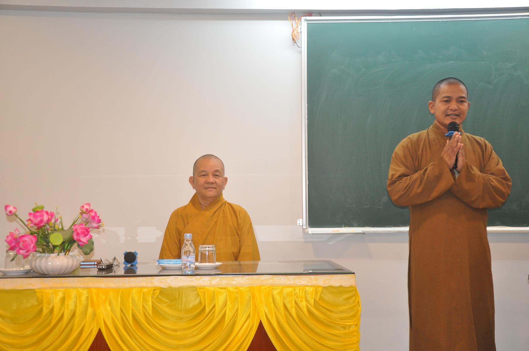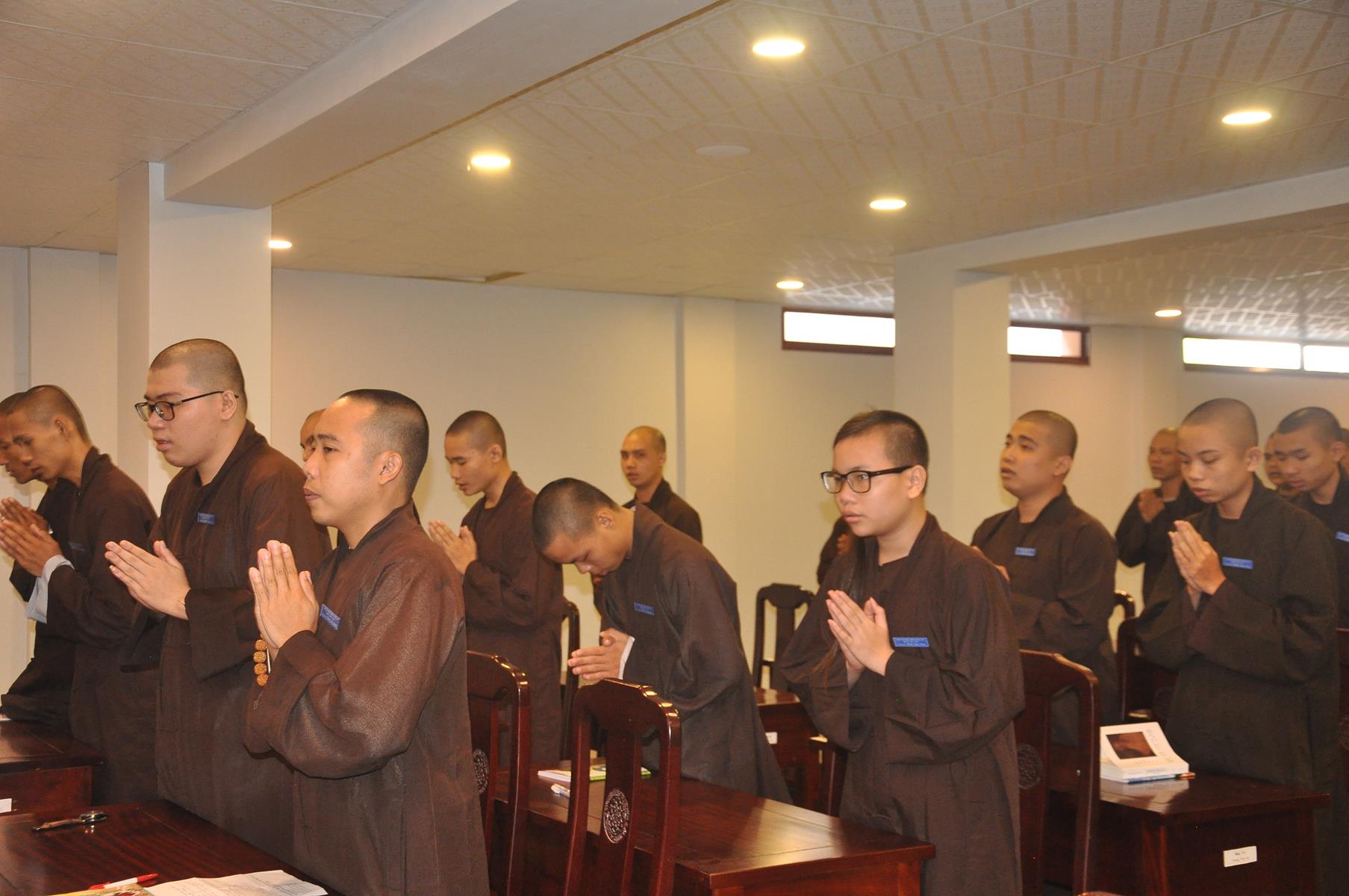 Sau những lời thăm hỏi, động viên, khích lệ đầy thương yêu, Hòa Thượng đã có những chia sẻ thật xúc động, ‘hôm nay Thầy về đây dành thời gian để chia sẻ cùng với các con sự tu, sự học. Nếu có thể gọi các con là con, thì Thầy sẽ xem các con là con của mình; nếu có thể gọi các con là em, thì Thầy sẽ xem các con là em của mình, năm nay Thầy tuổi đã ngoài 60, nhưng Thầy vẫn thấy sự học của mình chưa bao giờ là đủ, sự tu vẫn còn thiếu. Do đó, việc gì có thể làm lợi ích cho đàn hậu tấn, Thầy đều phát nguyện làm tròn công việc đó và Thầy gởi trọn niềm tin vào thế hệ tương lai, những người kế thừa sự nghiệp hoằng dương Phật pháp tại lớp Sơ Cấp này, mong các con ghi nhớ. Thầy trò chúng ta đang tiếp nhận năng lượng của Phật tổ, những vị tiền bối đối với mình, ai cũng mong muốn chúng ta làm tròn lời nguyện ban đầu’ “Hủy hình thủ chí tiết, cát ái từ sở thân, xuất gia hoằng thánh đạo, nguyện độ nhất thiết nhân”.
