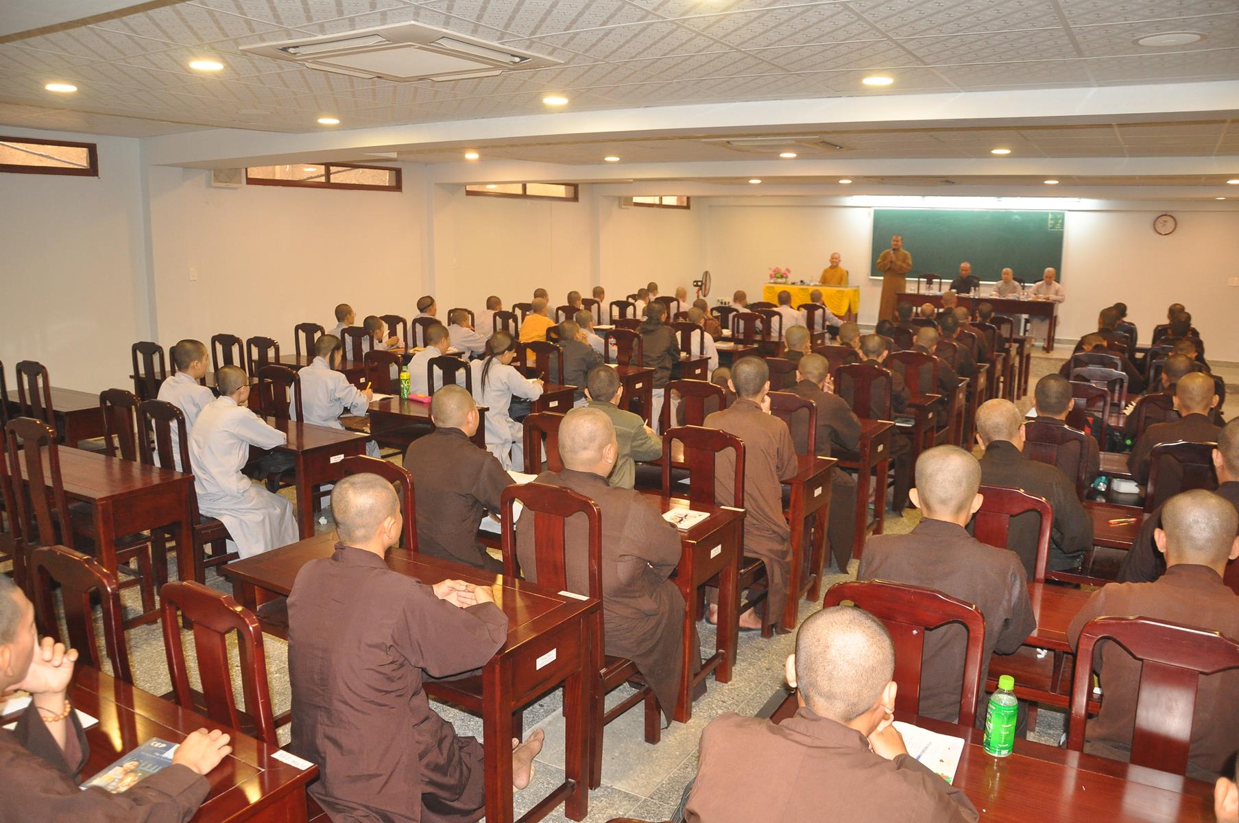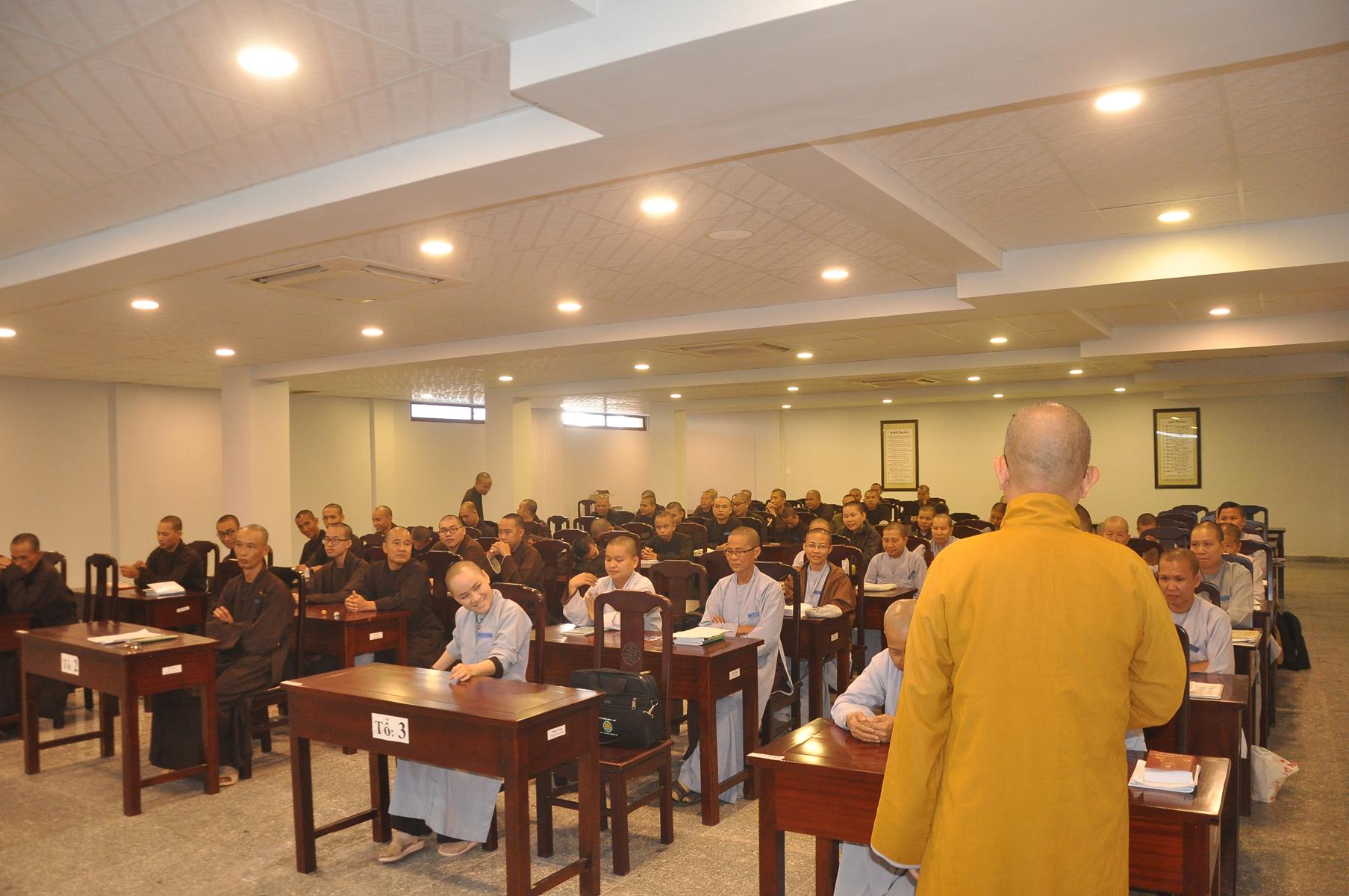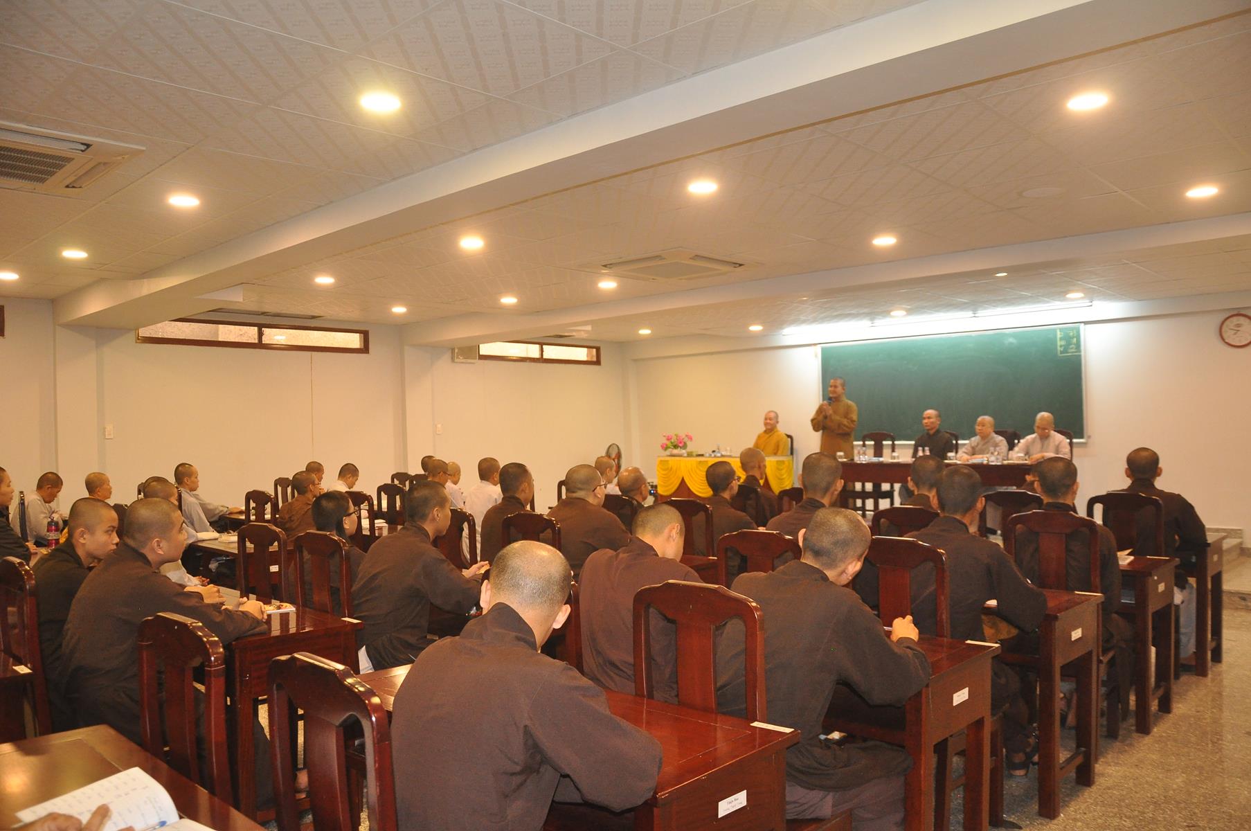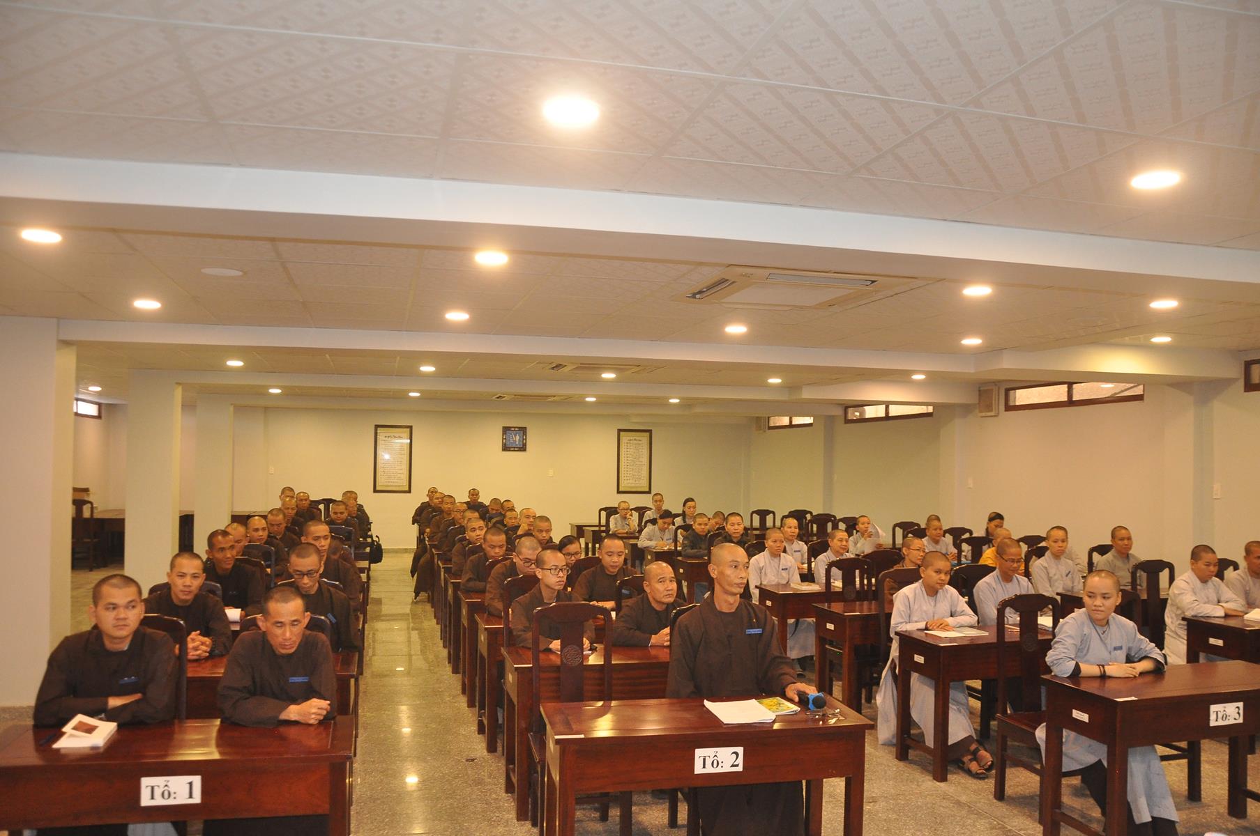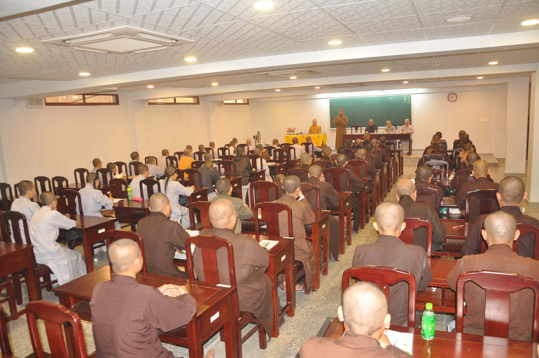 Sau những lời thăm hỏi, động viên, khích lệ đầy thương yêu, Hòa Thượng đã có những chia sẻ thật xúc động, ‘hôm nay Thầy về đây dành thời gian để chia sẻ cùng với các con sự tu, sự học. Nếu có thể gọi các con là con, thì Thầy sẽ xem các con là con của mình; nếu có thể gọi các con là em, thì Thầy sẽ xem các con là em của mình, năm nay Thầy tuổi đã ngoài 60, nhưng Thầy vẫn thấy sự học của mình chưa bao giờ là đủ, sự tu vẫn còn thiếu. Do đó, việc gì có thể làm lợi ích cho đàn hậu tấn, Thầy đều phát nguyện làm tròn công việc đó và Thầy gởi trọn niềm tin vào thế hệ tương lai, những người kế thừa sự nghiệp hoằng dương Phật pháp tại lớp Sơ Cấp này, mong các con ghi nhớ. Thầy trò chúng ta đang tiếp nhận năng lượng của Phật tổ, những vị tiền bối đối với mình, ai cũng mong muốn chúng ta làm tròn lời nguyện ban đầu’ “Hủy hình thủ chí tiết, cát ái từ sở thân, xuất gia hoằng thánh đạo, nguyện độ nhất thiết nhân”.