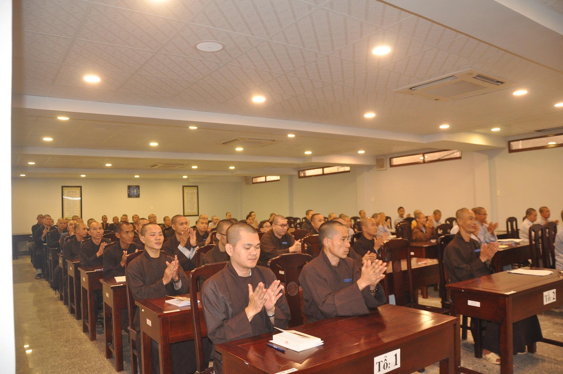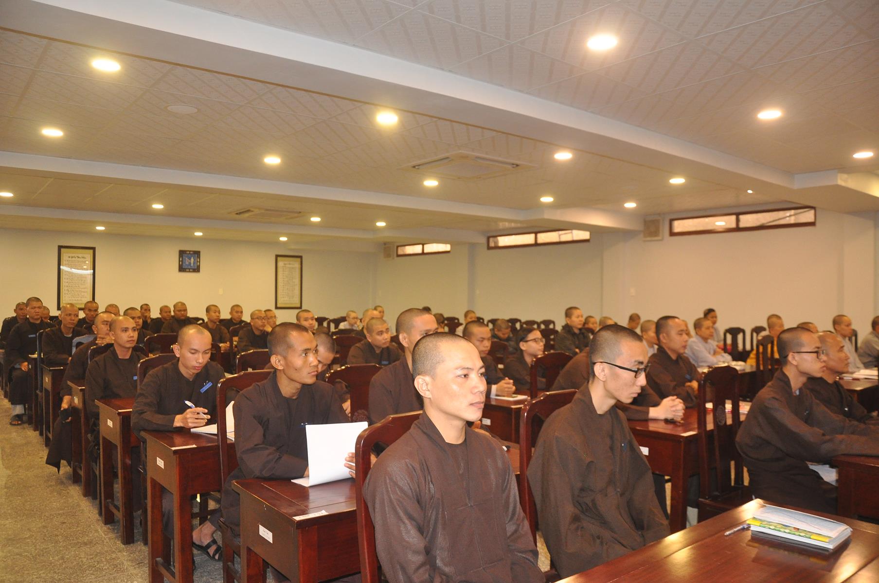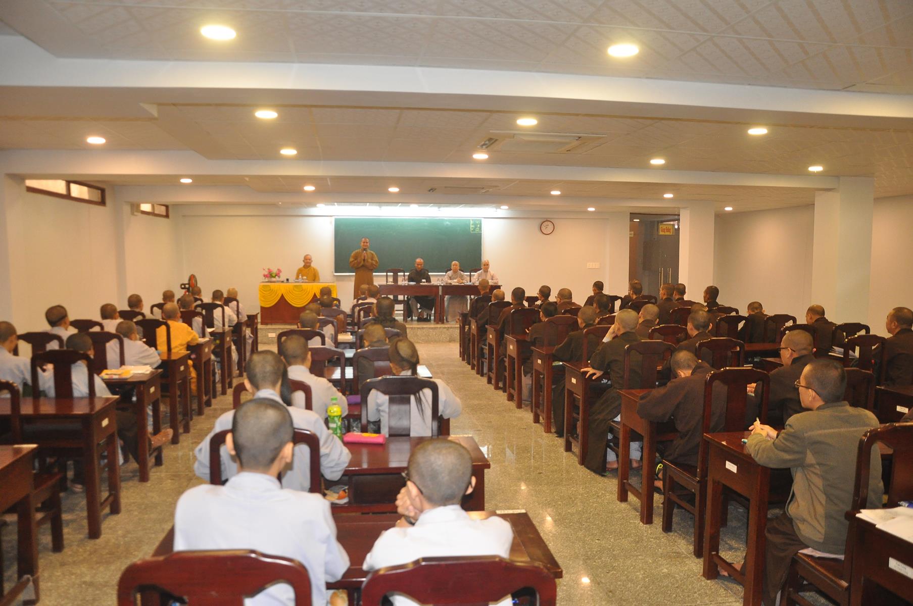 Lời đầu tiên, Hòa Thượng gởi đến Ban chủ nhiệm- Ban giáo thọ, cùng Tăng Ni sinh lời vấn an trân trọng và lời chúc đại cát tường. Ngài đã lần lượt đến thăm hỏi, chú ý lắng nghe và sẵn lòng giải thích những tâm tư nguyện vọng cho những học trò của mình xoay quanh vấn đề đời sống tu học, thọ giới…