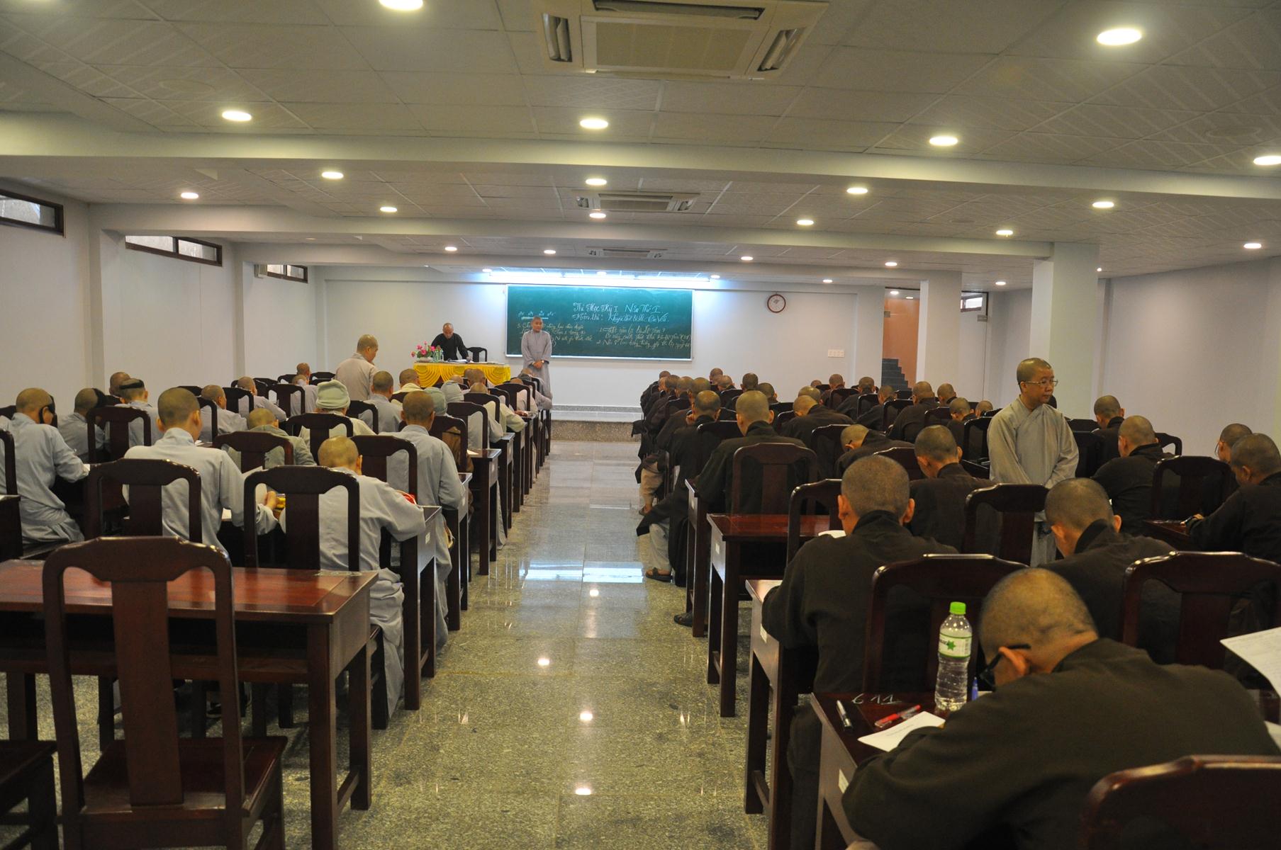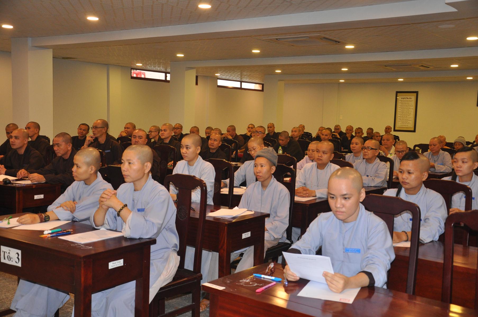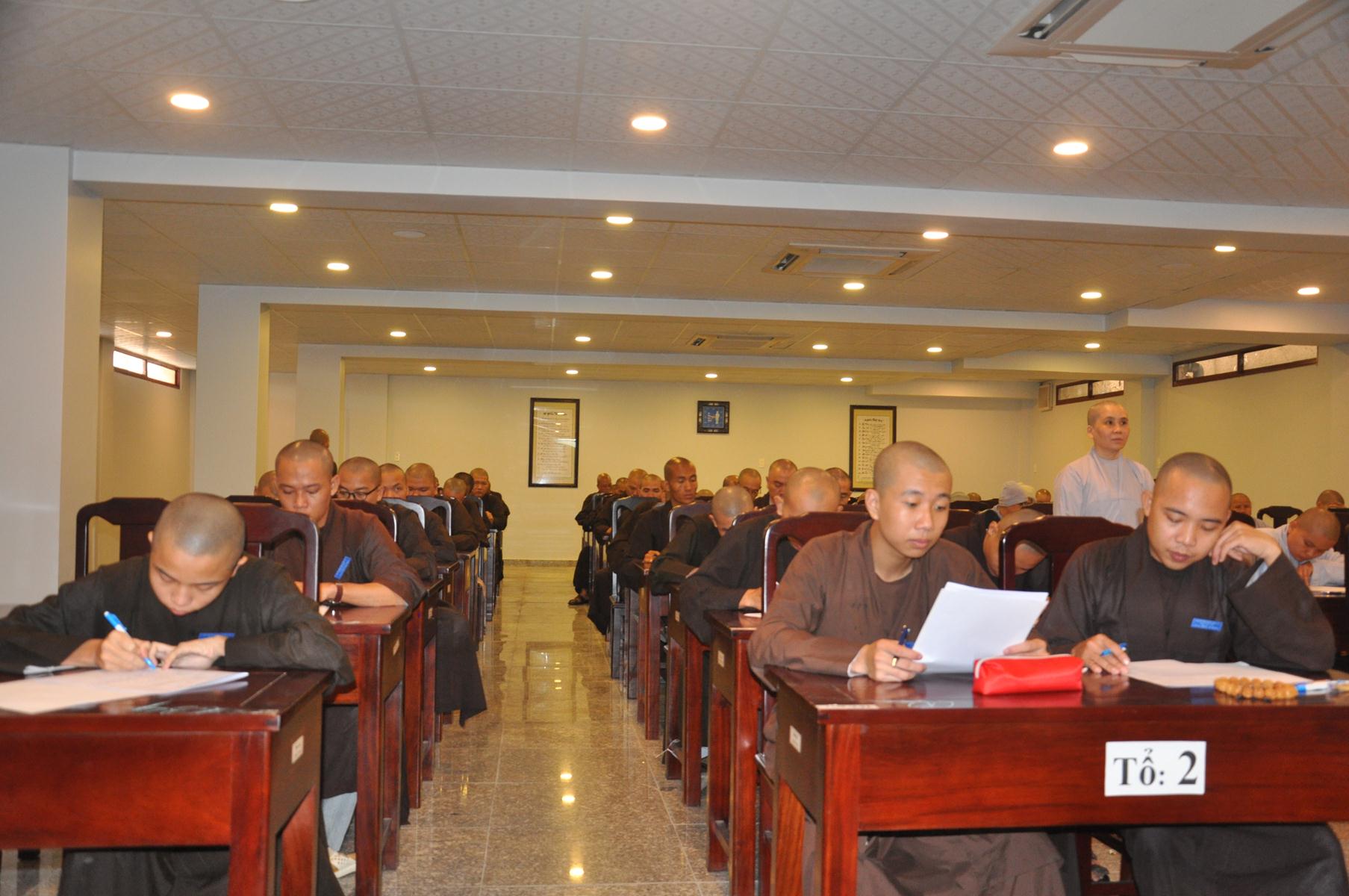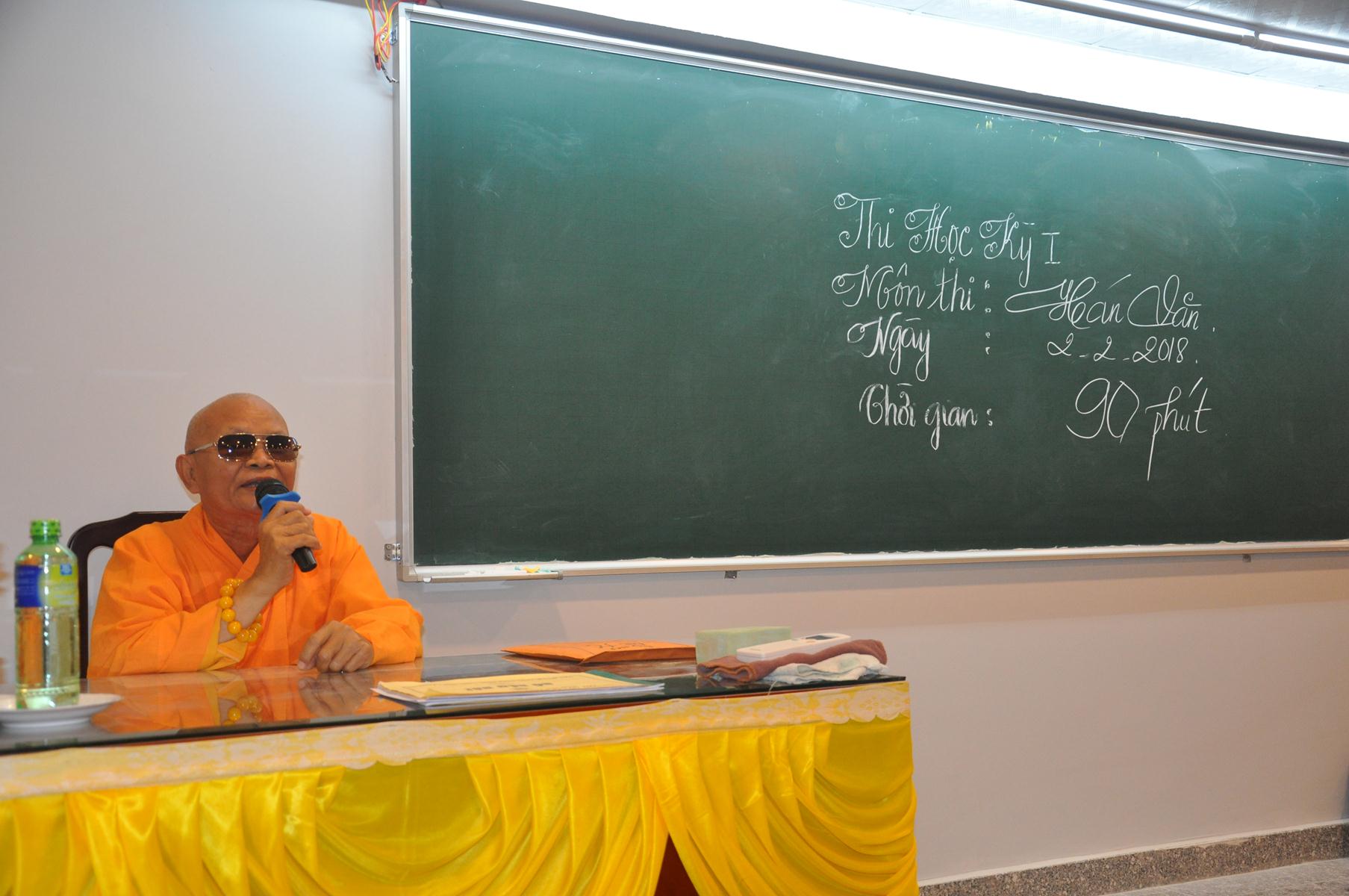 Thi học kỳ I diễn ra từ ngày 02 đến 07 tháng 2 năm 2018, với các môn thi như sau: Hán văn, Khuyến phát Bồ đề Tâm văn, Sơ đẳng Phật học Giáo khoa thư, Phật học Danh số, Kinh Pháp cú, Luật Tỳ Ni, Nhị khóa hiệp giải, Việt văn và Anh văn.