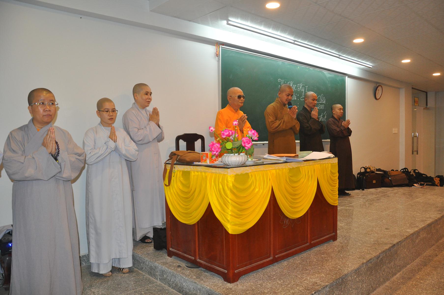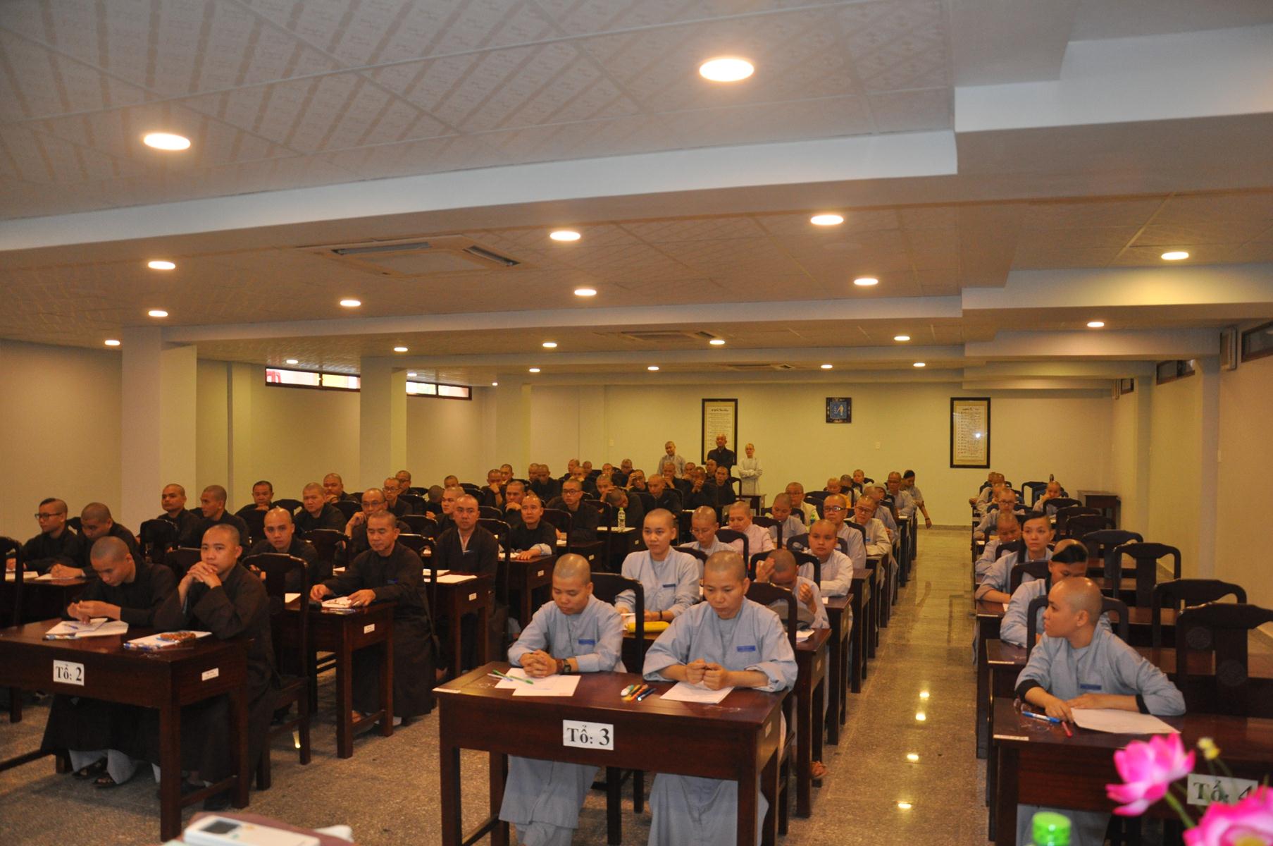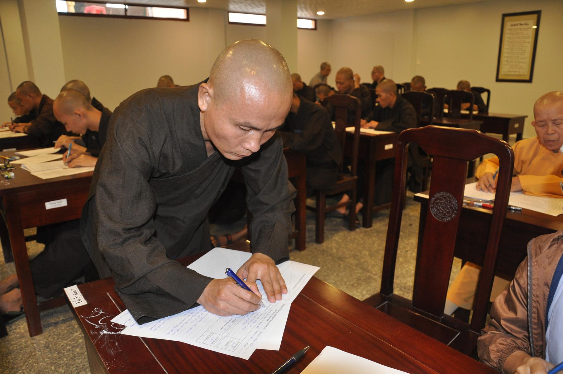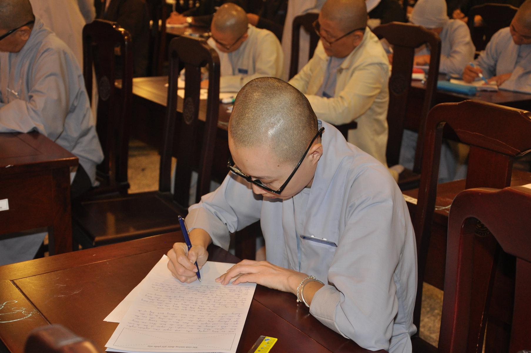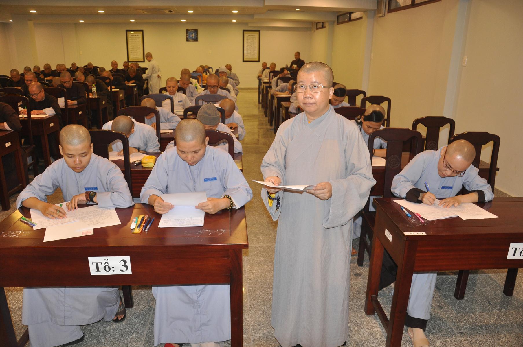 Vì đây là buổi thi đầu tiên nên chư Tăng Ni vô cùng hồi hộp và bỡ ngỡ lo âu, chính vì thế sự quan tâm của Hòa Thượng Trưởng Ban Trị Sự Phật giáo liên huyện và Chư Tôn đức trong Ban chủ nhiệm, như một nguồn động viên lớn để cả lớp yên tâm hơn trong một tuần thi. Hòa Thượng đã có lời sách tấn thiết thực cho Tăng Ni sinh trước kỳ thi. Đại đức Thích Minh Trí đã thay mặt Chư Tôn Đức Ban Chủ Nhiệm thông qua nội quy kỳ thi.