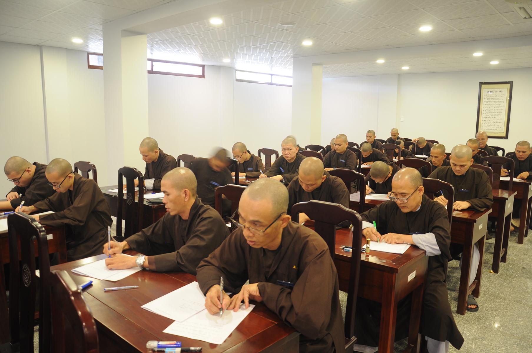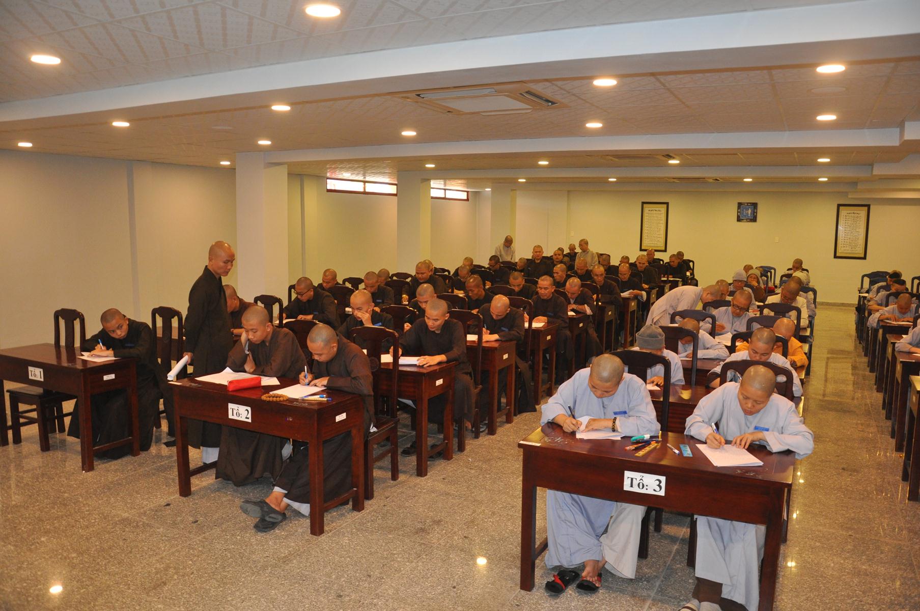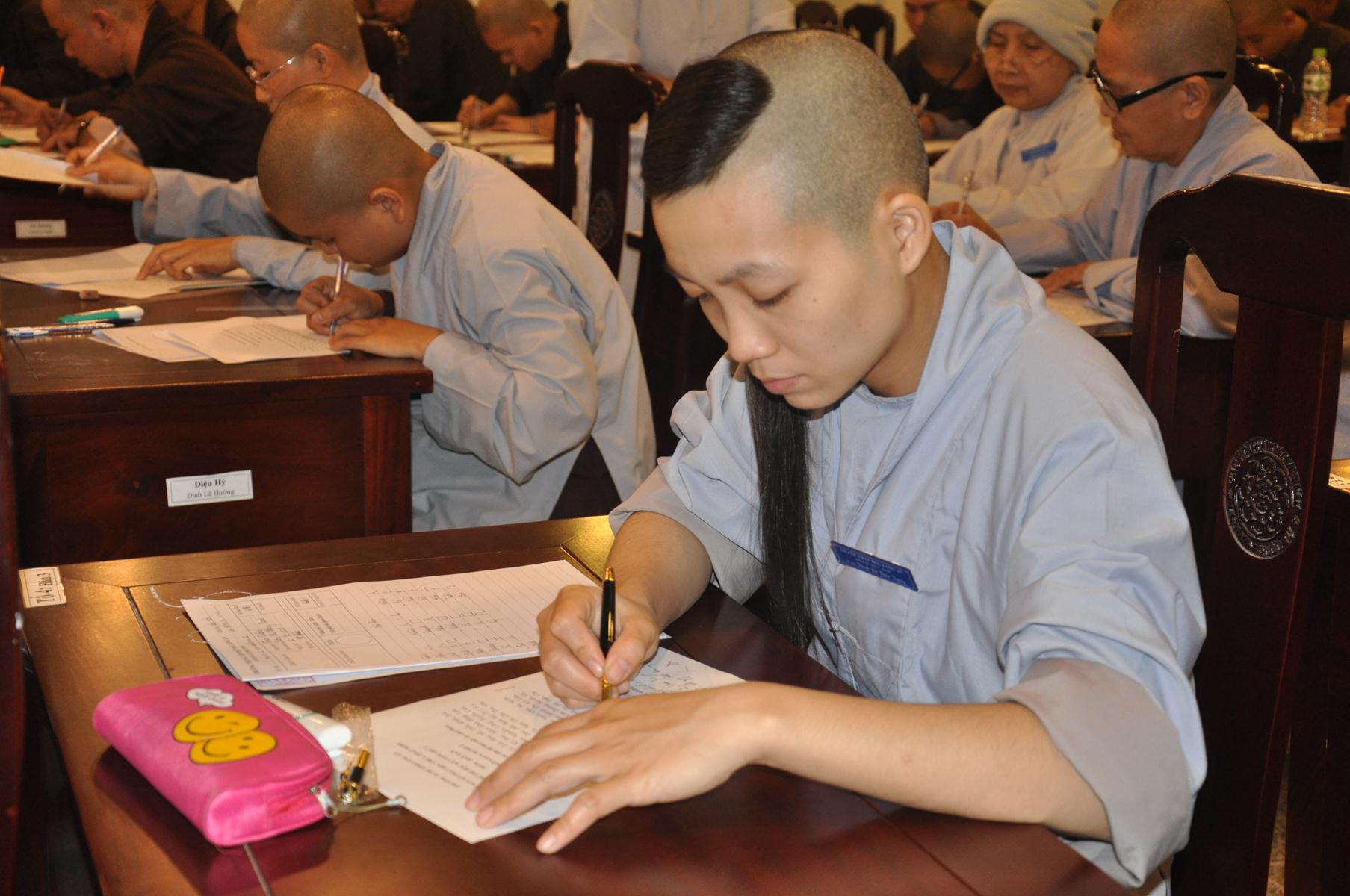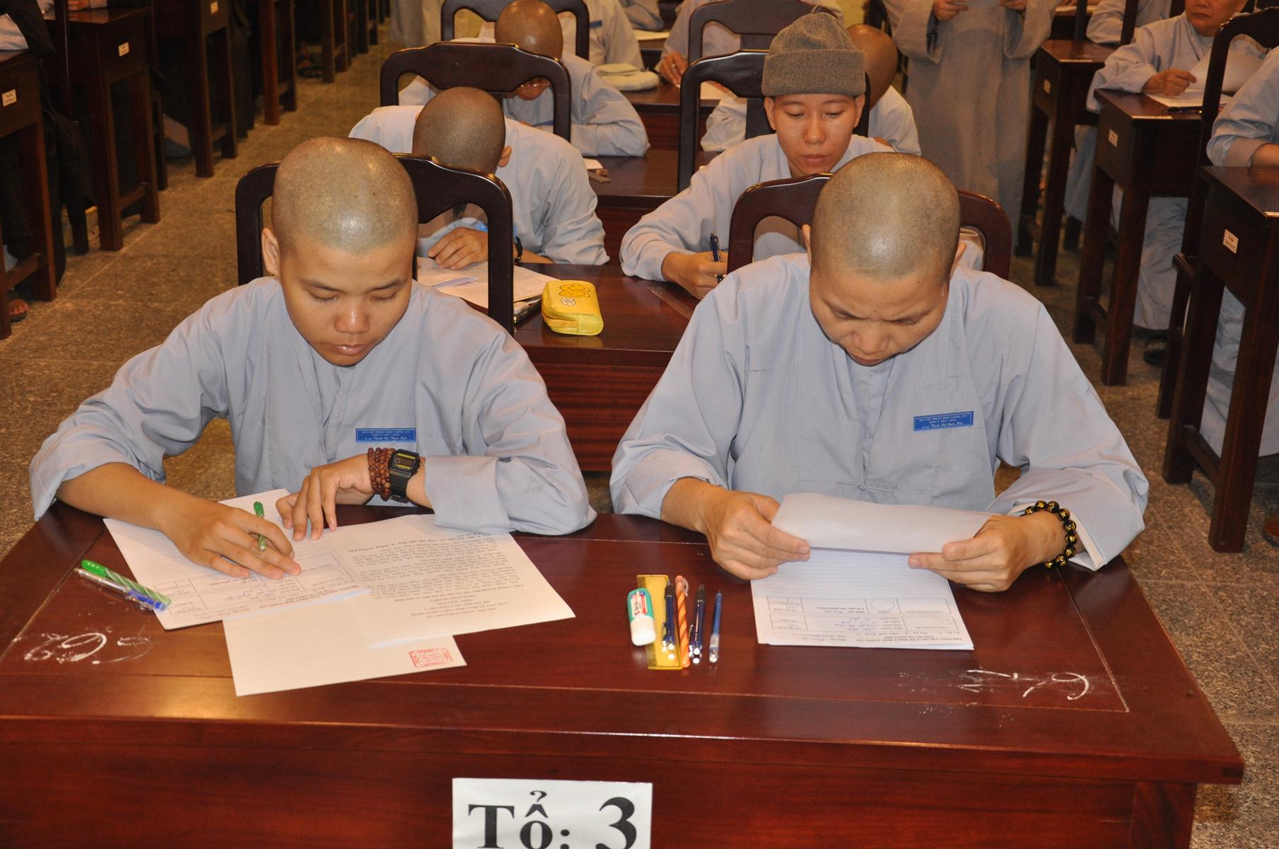 Tăng Ni sinh Trường Trung Cấp Phật Học Long An Khóa VI thi học kỳ I, năm III.