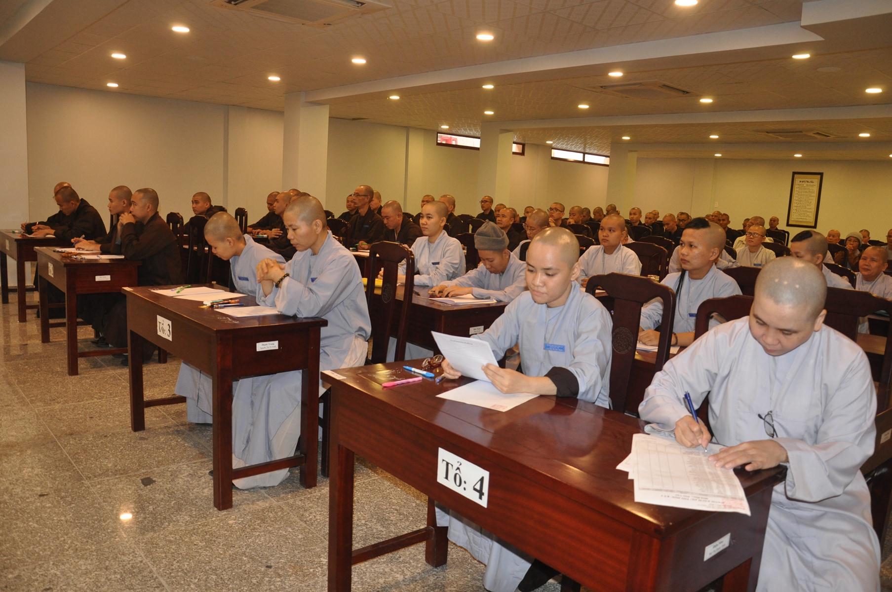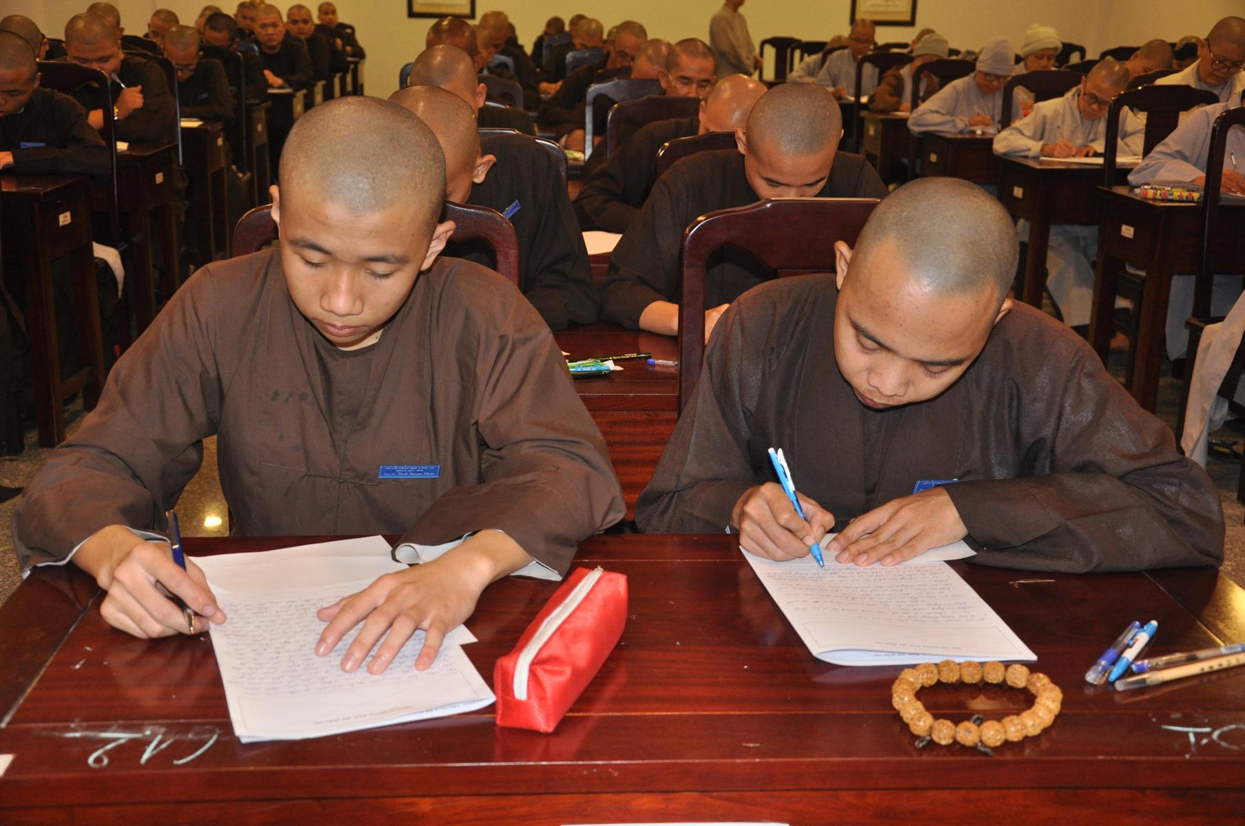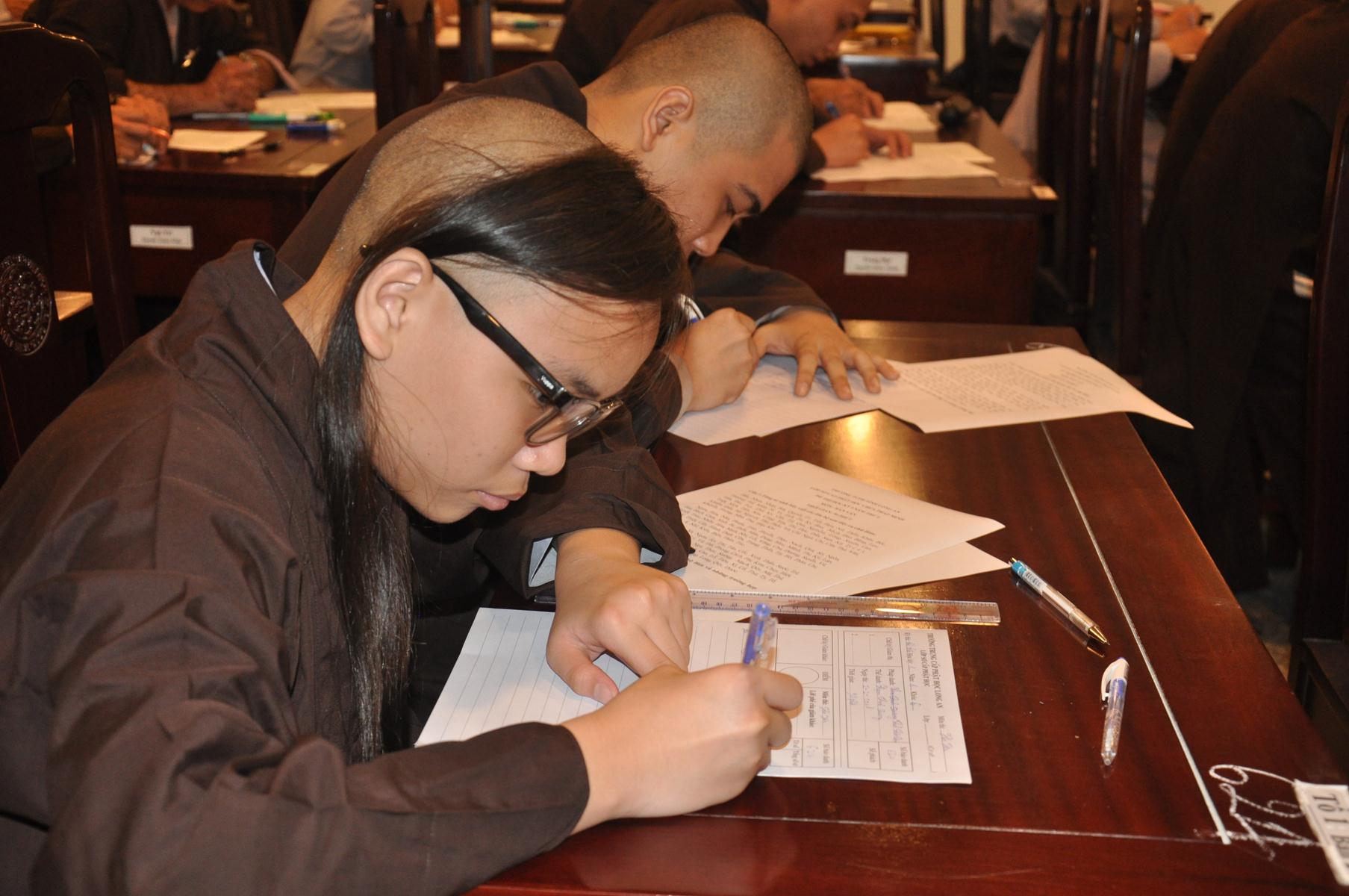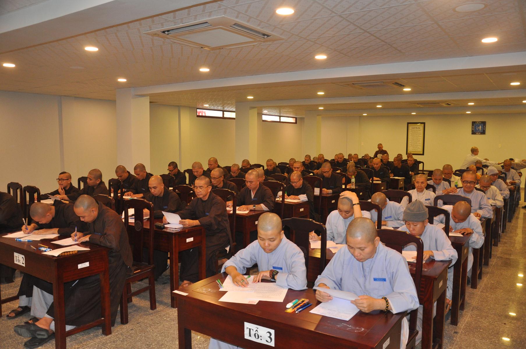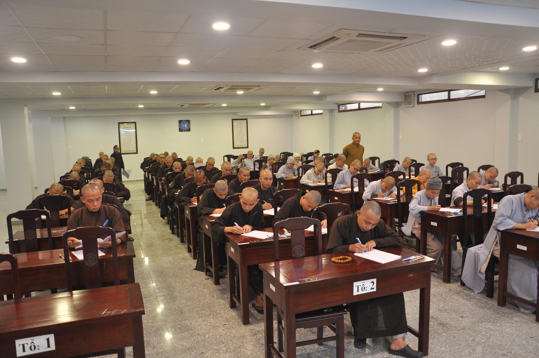 Tăng Ni sinh Trường Trung Cấp Phật Học Long An Khóa VI thi học kỳ I, năm III.
