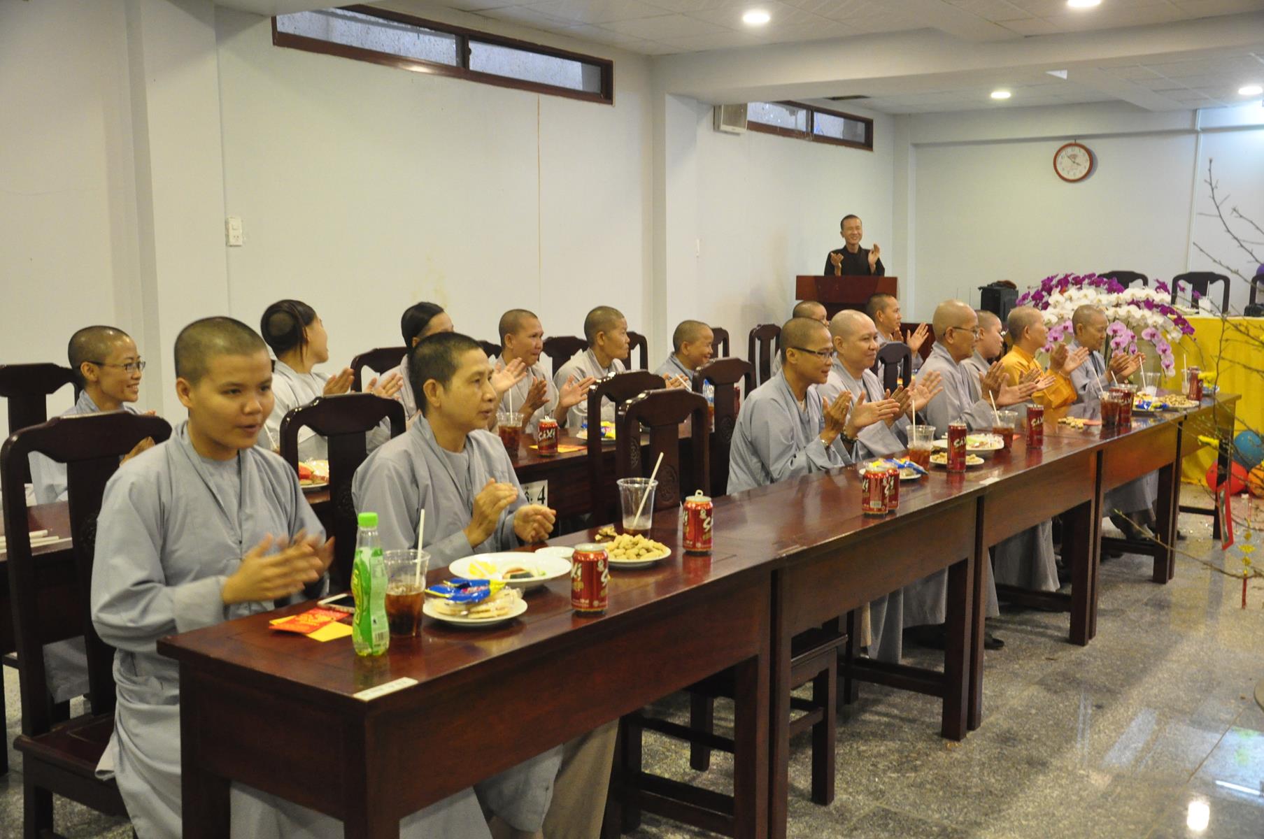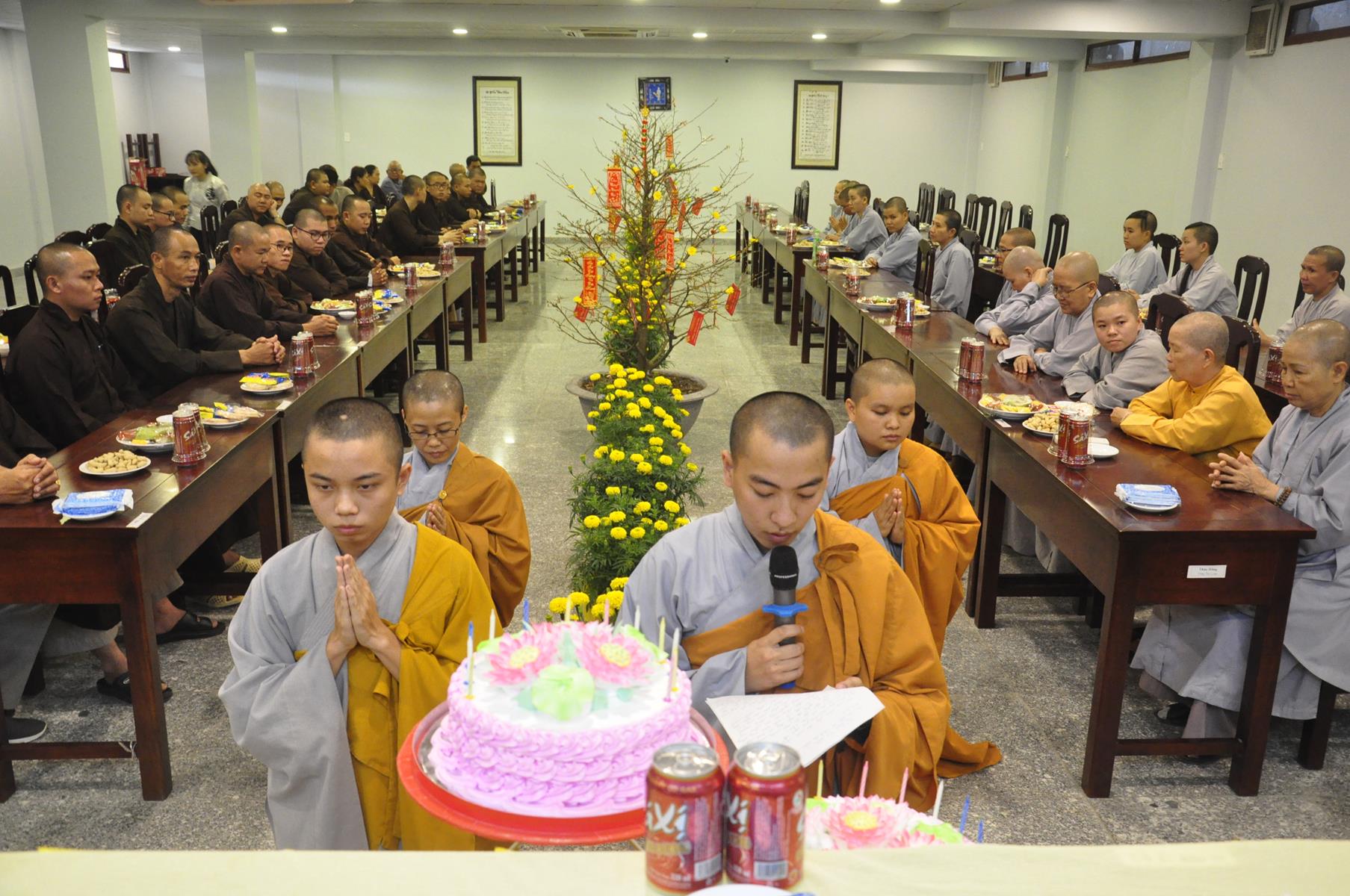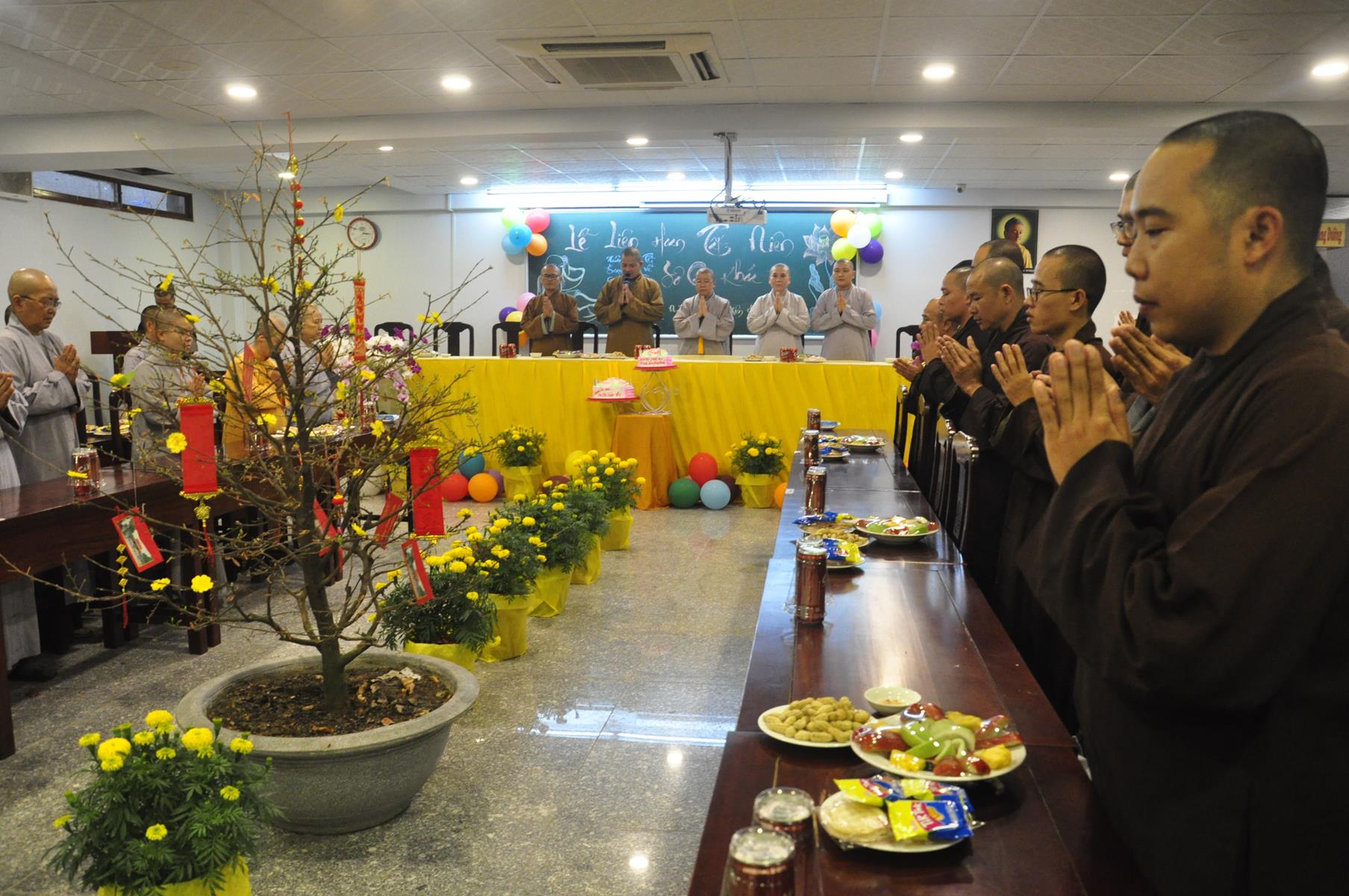 Trong không khí rộn ràng của những ngày giáp tết, và sau những ngày miệt mài với bút nghiêng đèn sách để hoàn thành học kỳ I năm thứ II, chiều ngày 28/01/2019 (nhằm ngày 23/12/Mậu Tuất) Tăng Ni sinh Lớp Sơ cấp Phật học tỉnh Long An đã tổ chức lễ Liên hoan cuối năm và bằng tất cả tấm lòng chân thành kính dâng lời mừng khánh tuế đến chư tôn đức Ban Chủ nhiệm, hứa sẽ cùng nhau sống đoàn kết, thương yêu, nâng đỡ nhau, luôn biết khiêm hạ, tôn trọng nhau trong nếp sống Tăng đoàn và cùng nhau phấn đấu tinh tấn tu học tốt hơn để không phụ lòng Hòa thượng Hiệu trưởng, chư vị Hòa thượng Chứng minh, chư tôn đức Ban chủ nhiệm, chư tôn đức giáo thọ sư, gia đình Nguyên chủ tịch nước Trương Tấn Sang, Bà Nguyễn Thị Hạnh phu nhân và bạn bè thân hữu, cùng Ban bảo trợ đã tận tình quan tâm khuyến tấn, dạy dỗ, hỗ trợ về mọi mặt để Tăng Ni sinh được yên tâm tu học tại ngôi chùa Pháp Minh.