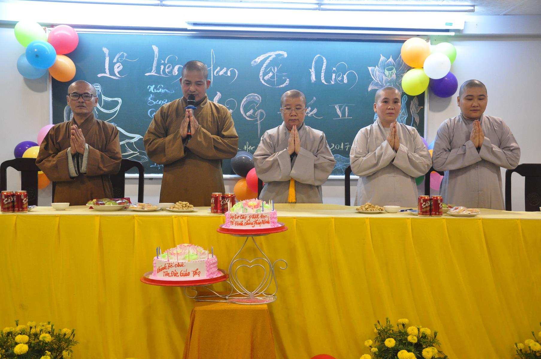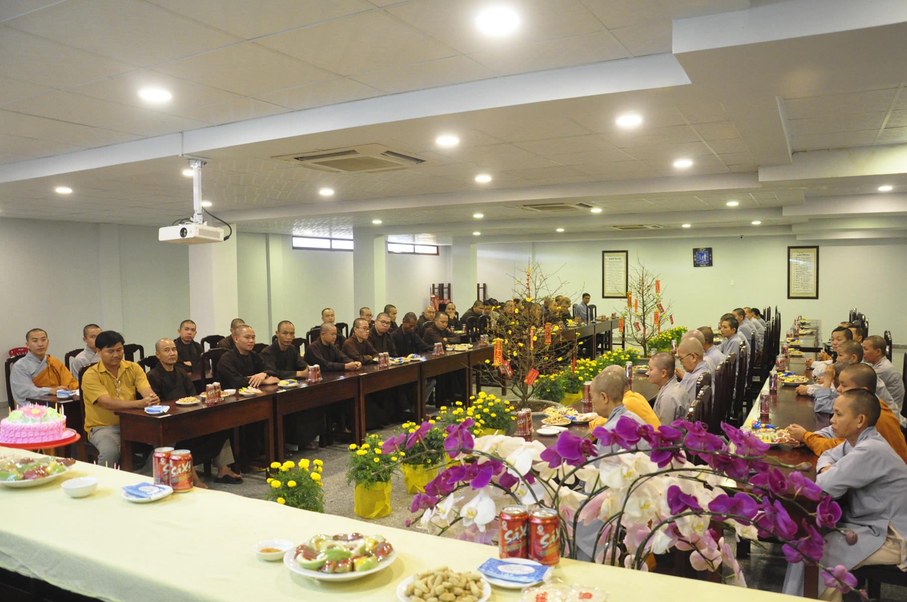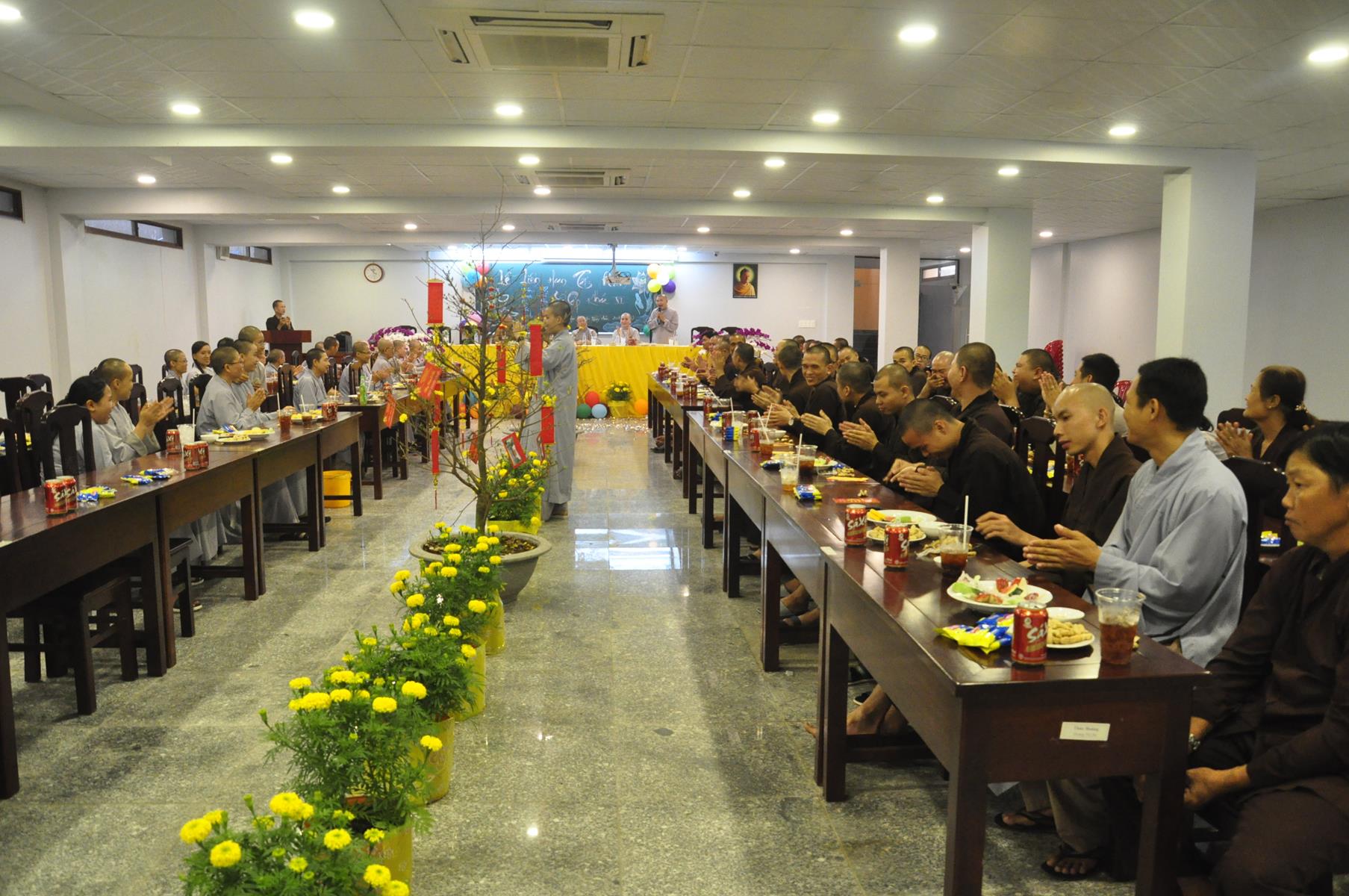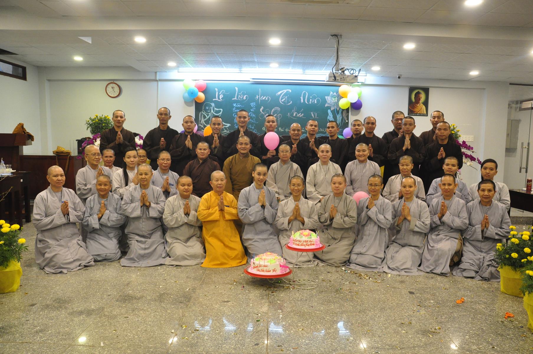 Trong không khí rộn ràng của những ngày giáp tết, và sau những ngày miệt mài với bút nghiêng đèn sách để hoàn thành học kỳ I năm thứ II, chiều ngày 28/01/2019 (nhằm ngày 23/12/Mậu Tuất) Tăng Ni sinh Lớp Sơ cấp Phật học tỉnh Long An đã tổ chức lễ Liên hoan cuối năm và bằng tất cả tấm lòng chân thành kính dâng lời mừng khánh tuế đến chư tôn đức Ban Chủ nhiệm, hứa sẽ cùng nhau sống đoàn kết, thương yêu, nâng đỡ nhau, luôn biết khiêm hạ, tôn trọng nhau trong nếp sống Tăng đoàn và cùng nhau phấn đấu tinh tấn tu học tốt hơn để không phụ lòng Hòa thượng Hiệu trưởng, chư vị Hòa thượng Chứng minh, chư tôn đức Ban chủ nhiệm, chư tôn đức giáo thọ sư, gia đình Nguyên chủ tịch nước Trương Tấn Sang, Bà Nguyễn Thị Hạnh phu nhân và bạn bè thân hữu, cùng Ban bảo trợ đã tận tình quan tâm khuyến tấn, dạy dỗ, hỗ trợ về mọi mặt để Tăng Ni sinh được yên tâm tu học tại ngôi chùa Pháp Minh.