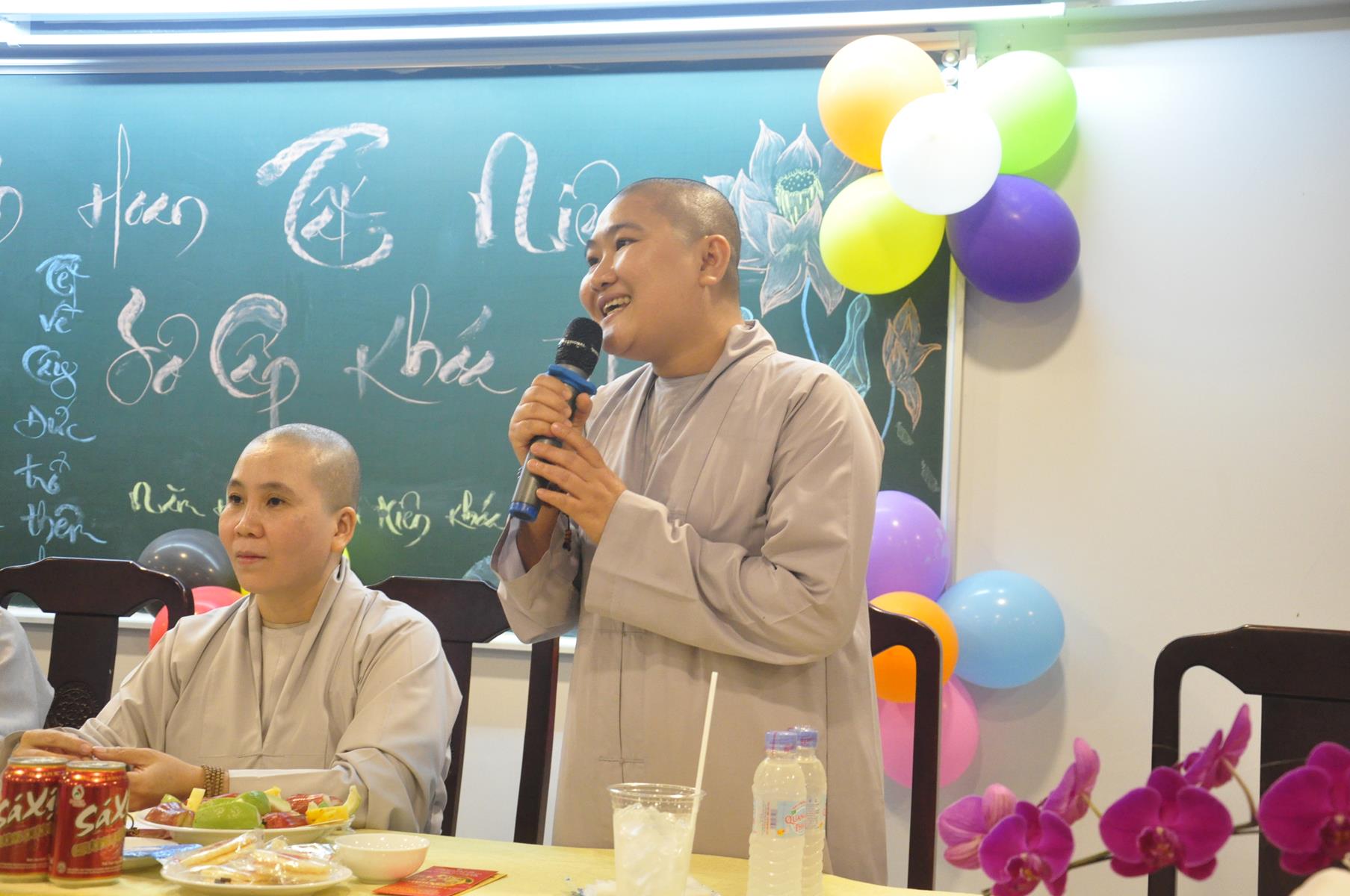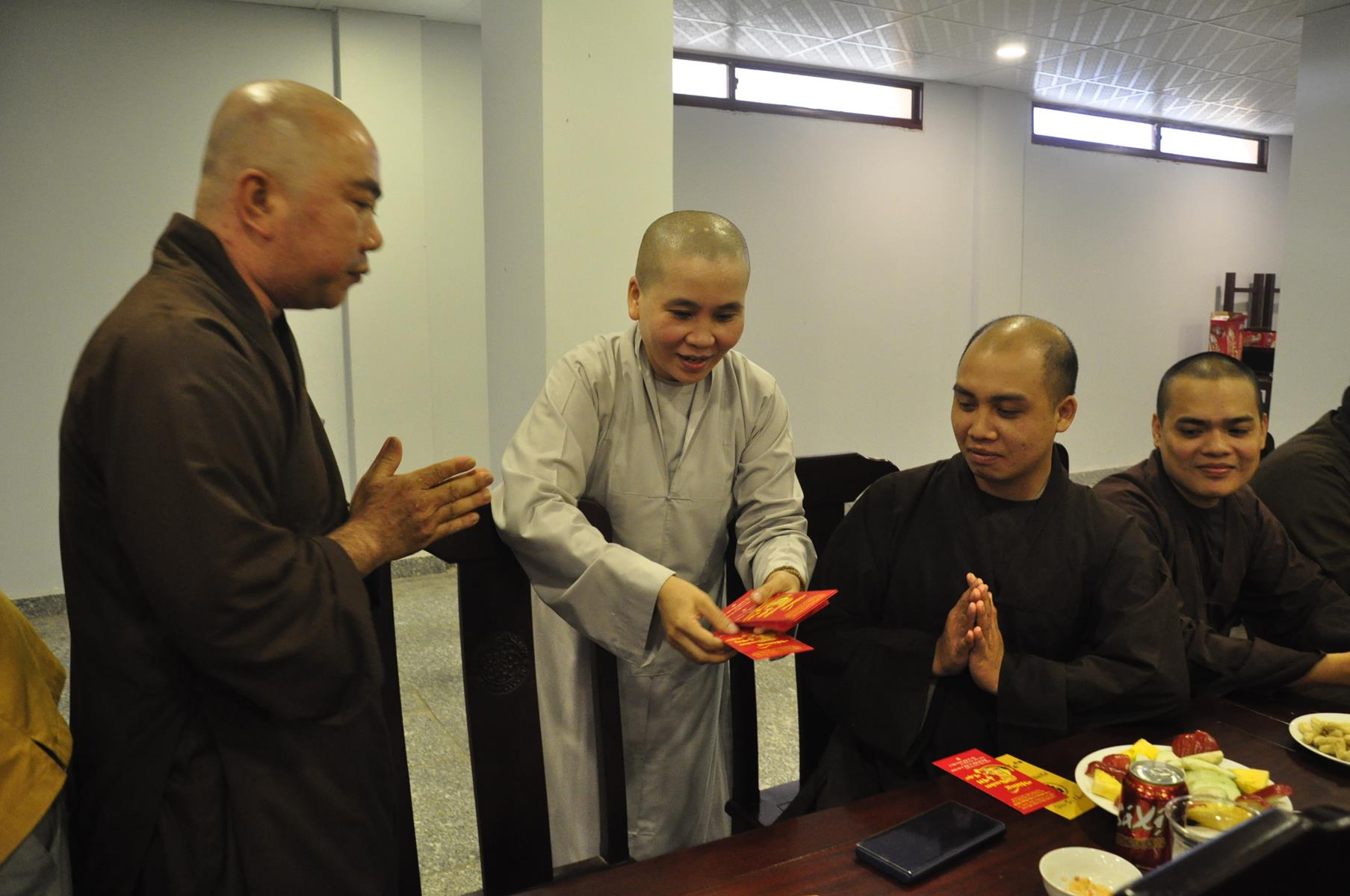 Tiếp theo là những bài hát mừng xuân của Tăng Ni sinh kính dâng lên chư tôn đức trong mừng năm mới, và lần lượt là những phong bao màu đỏ của chư tôn đức Ban Chủ nhiệm, chư tôn đức Ban bảo trợ gởi đến Tăng Ni sinh như một niềm động viên khích lệ tinh thần tu học của cả lớp.