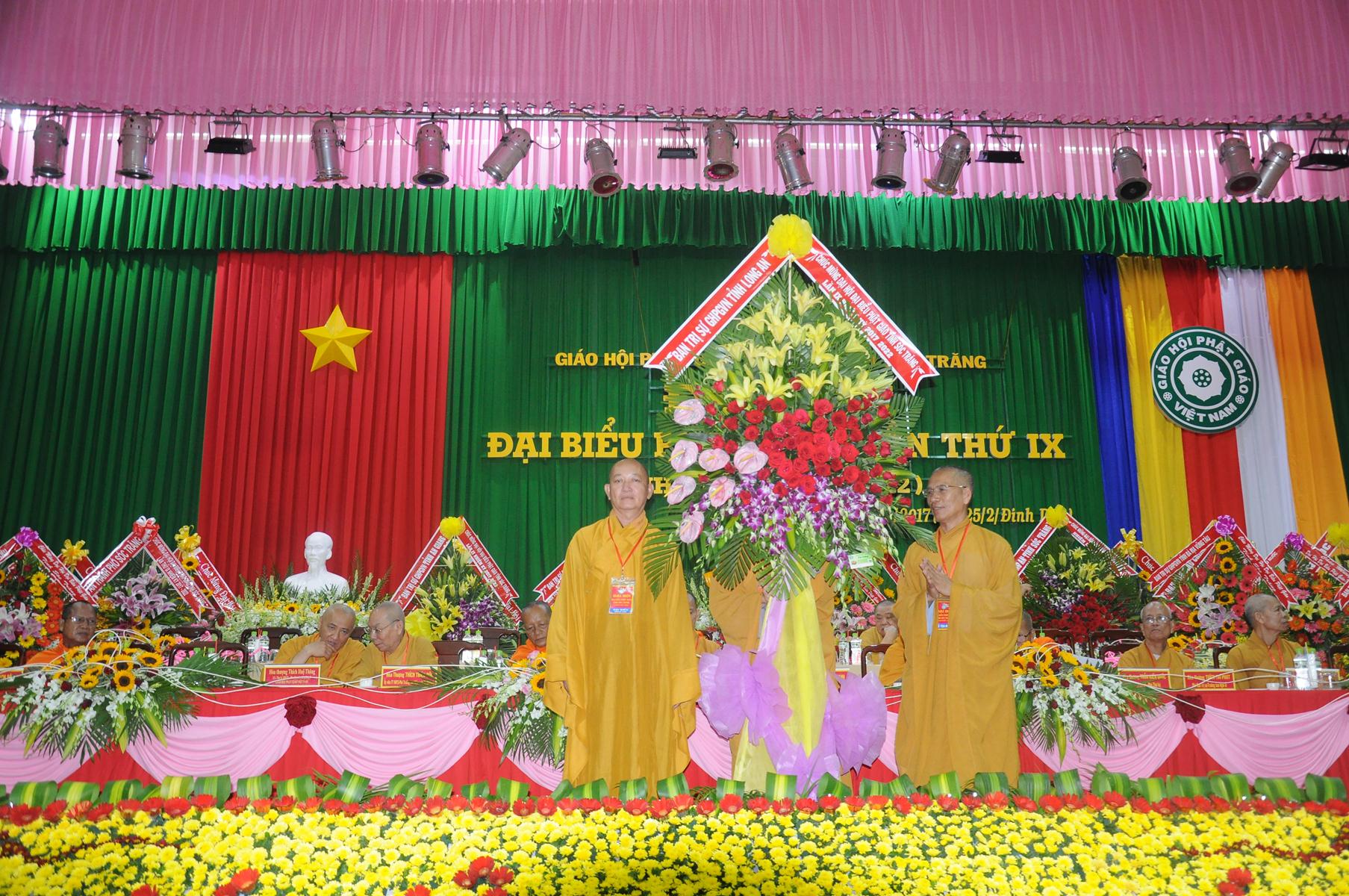 Chủ tọa đoàn có TT.Thích Thiện Thống, Phó Tổng thư ký HĐTS, Chánh văn phòng II T.Ư GHPGVN; HT.Thích Huệ Thông, Ủy viên thư ký HĐTS, Phó văn phòng II T.Ư GHPGVN; HT.Thích Thiện Đức, UVTT HĐTS; HT.Thích Trí Phát, HT.Thích Thiện Thành, HT.Tăng Nô, HT.Thích Minh Hồng, TT.Thích Thiện Thạnh, TT.Thích Minh Hạnh, TT.Thích Nhựt Quang – đồng Phó BTS Phật giáo tỉnh Sóc Trăng; HT.Dương Dal, Chứng minh Phật giáo tỉnh Sóc Trăng; HT.Trần Kiến Quốc, Ủy viên HĐTS, Phó BTS, Phó Thư ký Phật giáo tỉnh Sóc Trăng.