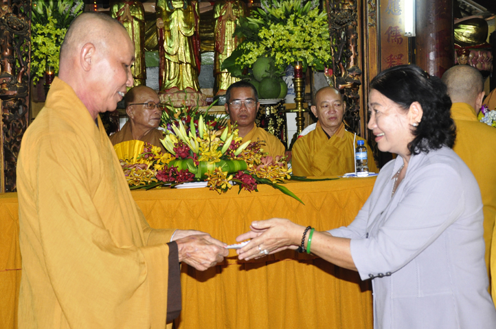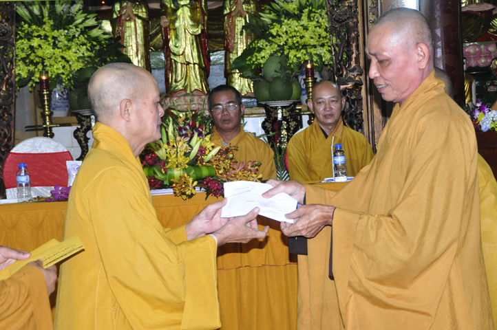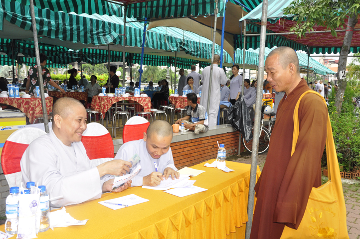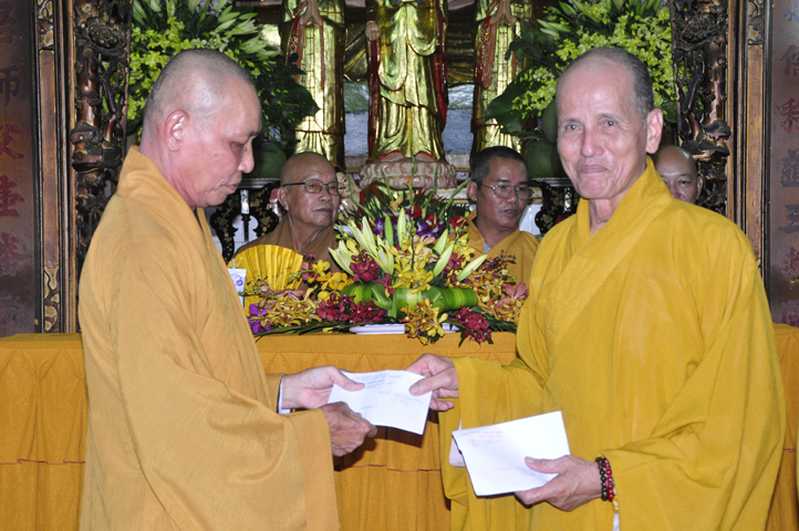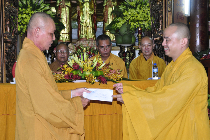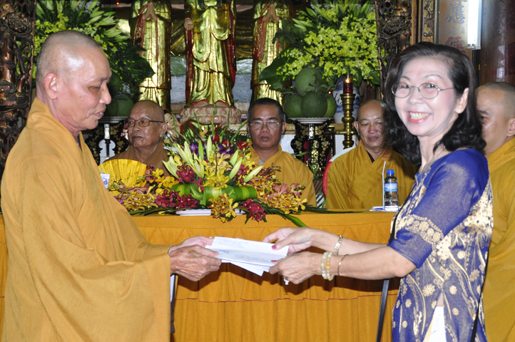 Trong buổi lễ ban tổ chức cũng đón nhận nhiều lẳng hoa chúc mừng từ lãnh đạo tỉnh, thành phố và cũng đón nhận tịnh tài từ Chư tôn đức Tăng Ni, Phật tử trao tặng.
