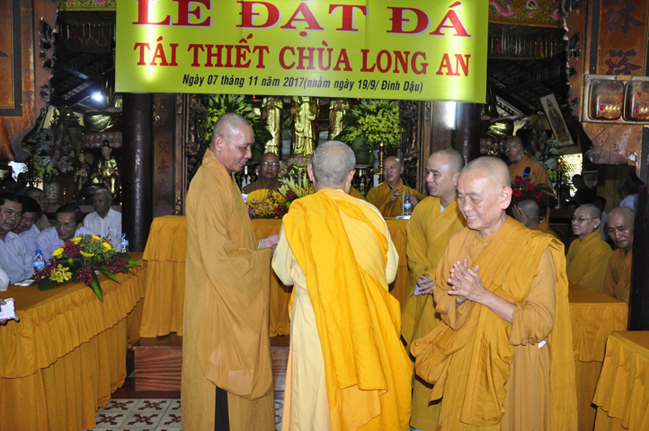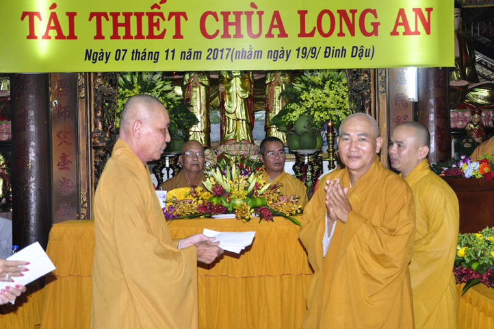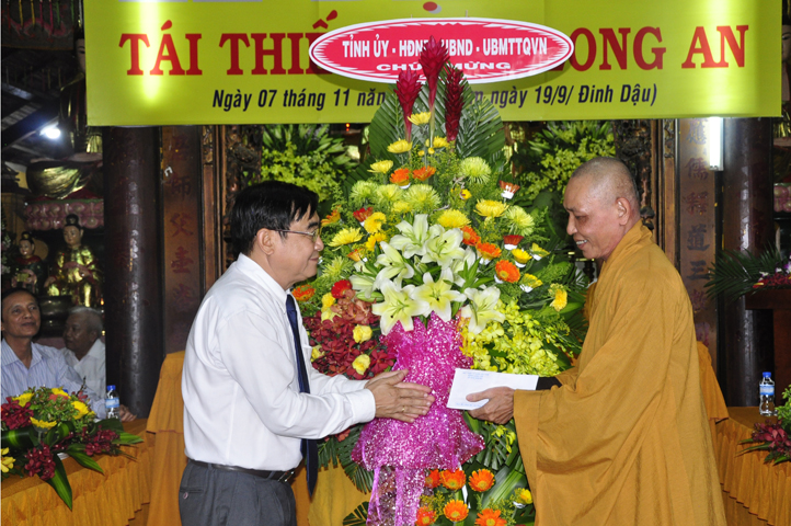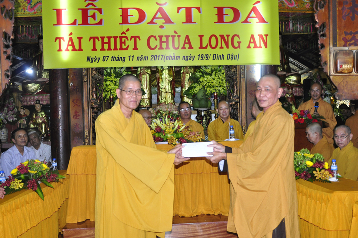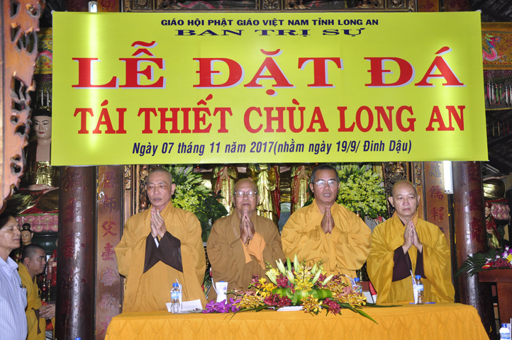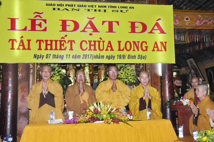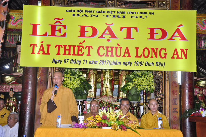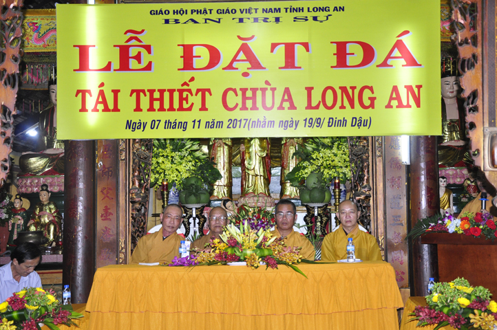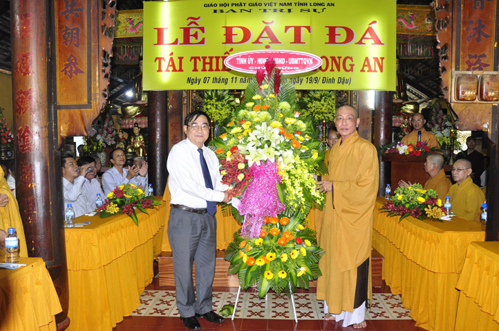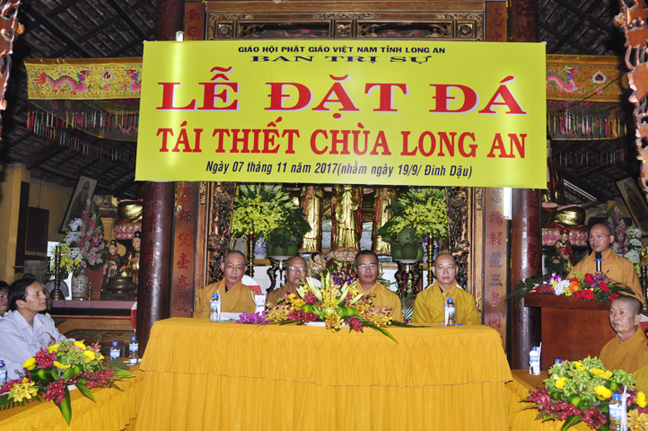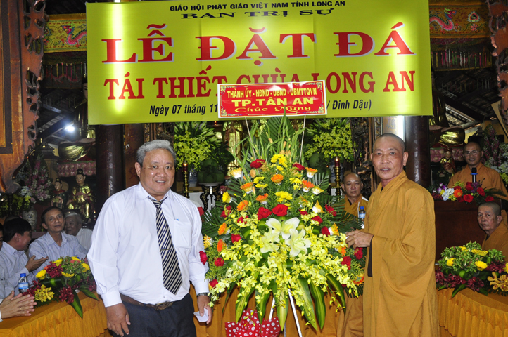 Đại diện chính quyền sở tại, Ông Lê Thành Phước- Chủ tịch UBMTTQVN Tp. Tân An đã có lời chúc mừng đến ban tái thiết công trình. Ông ghi nhận những đóng góp tích cực của Chư Tăng và Phật tử chùa Long An trong thời gian qua. Đồng thời ông cũng cảm thông trước sự khó khăn của ban tái thiết và kính chúc công trình mau hoàn thành.