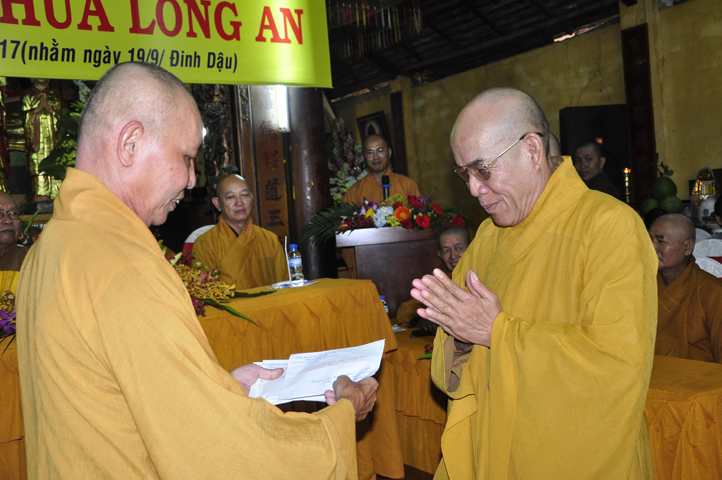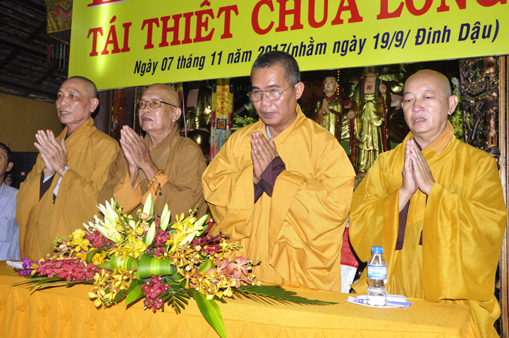 Quang lâm chứng minh tham dự có Hoà thượng HT. Thích Thiện Huệ – Chứng minh ban Trị sự GHPGVN tỉnh Long An, trụ trì chùa Long An; HT. Thích Huệ Hồng – Chứng minh ban trị sự GHPGVN tỉnh Long An ; HT. Thích Thiện Tâm – Phó trưởng ban Trị sự GHPGVN tỉnh Long An; HT. Thích Quảng Ý – Trưởng Ban Trị sự GHPGVN liên huyện Tân Thạnh, Kiến Tường, Vĩnh Hưng ; TT. Thích Quảng Tâm Phó thường trực Ban Trị sự GHPGVN tỉnh Long An; TT. Thích Minh Thọ- Ủy viên HĐTSTƯ, Phó ban Trị sự GHPGVN tỉnh Long An; ĐĐ. Thích Lệ Trí – Phó ban Trị sự GHPGVN tỉnh Long An cùng Chư tôn giáo phẩm trong thường trực Ban Trị sự GHPGVN tỉnh, huyện, chư tôn đức tăng ni trì các tự viện huyện đồng về tham dự.