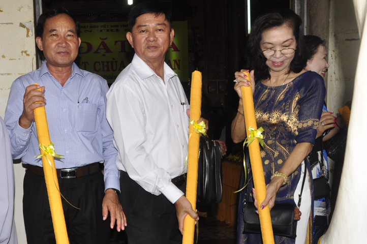 Về phía lãnh đạo chính quyền có Ông Đỗ Hữu Lâm- Phó Bí thư tỉnh Long An; Ông Dương Quốc Xuân- Nguyên Chủ Tịch UBND tỉnh Long An; Ông Công Hoàng Bạch- Phó ban Dân vận Tỉnh Ủy tỉnh Long An; Ông Võ Lê Tuấn – Nguyên Ủy viên thường vụ Tỉnh Ủy, Nguyên Chủ tịch MTTQ tỉnh Long An; Ông Trần Văn Thuần- Phó Giám đốc Sở Nội Vu, trưởng ban Tôn giáo tỉnh Long An; Ông Nguyễn Thanh Sơn- Ủy viên Thường trực,Trưởng ban Dân tộc Tôn giáo UBMT tỉnh Long An; Ông Trần Hoàng Nhân- Bí thư huyện Ủy huyện Bến Lức tỉnh Long An ông Lê Thành Phước- Chủ tịch UBMTTQVN Tp. Tân An cùng quý vị khách quý lãnh đạo Chính quyền sở tại tham dự.