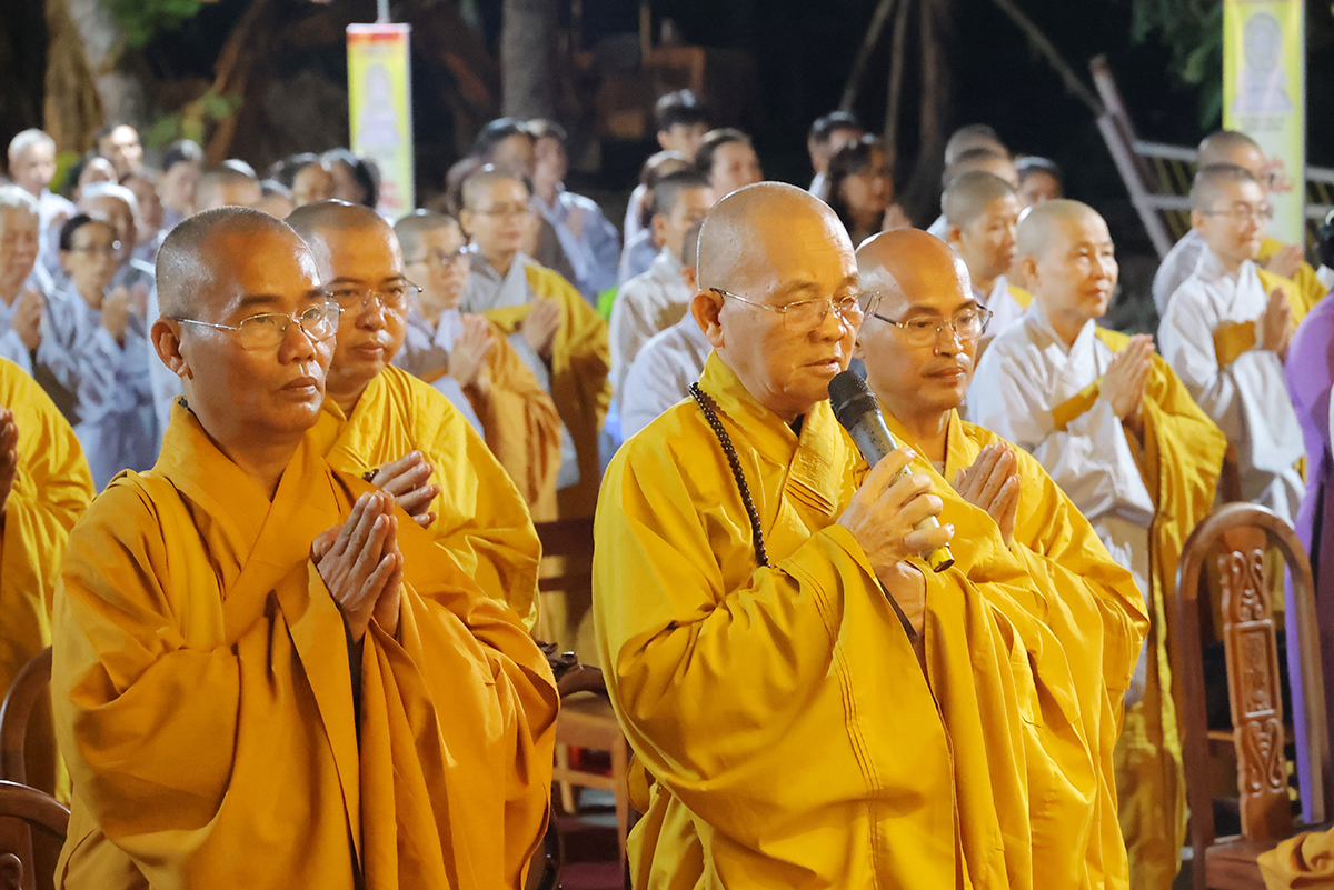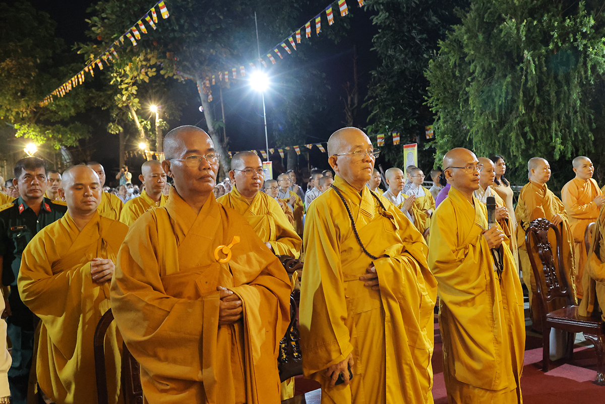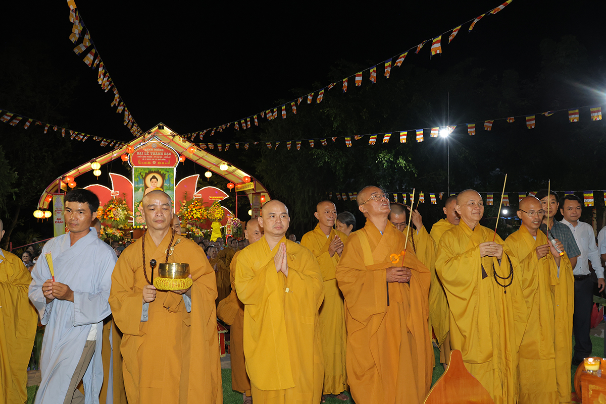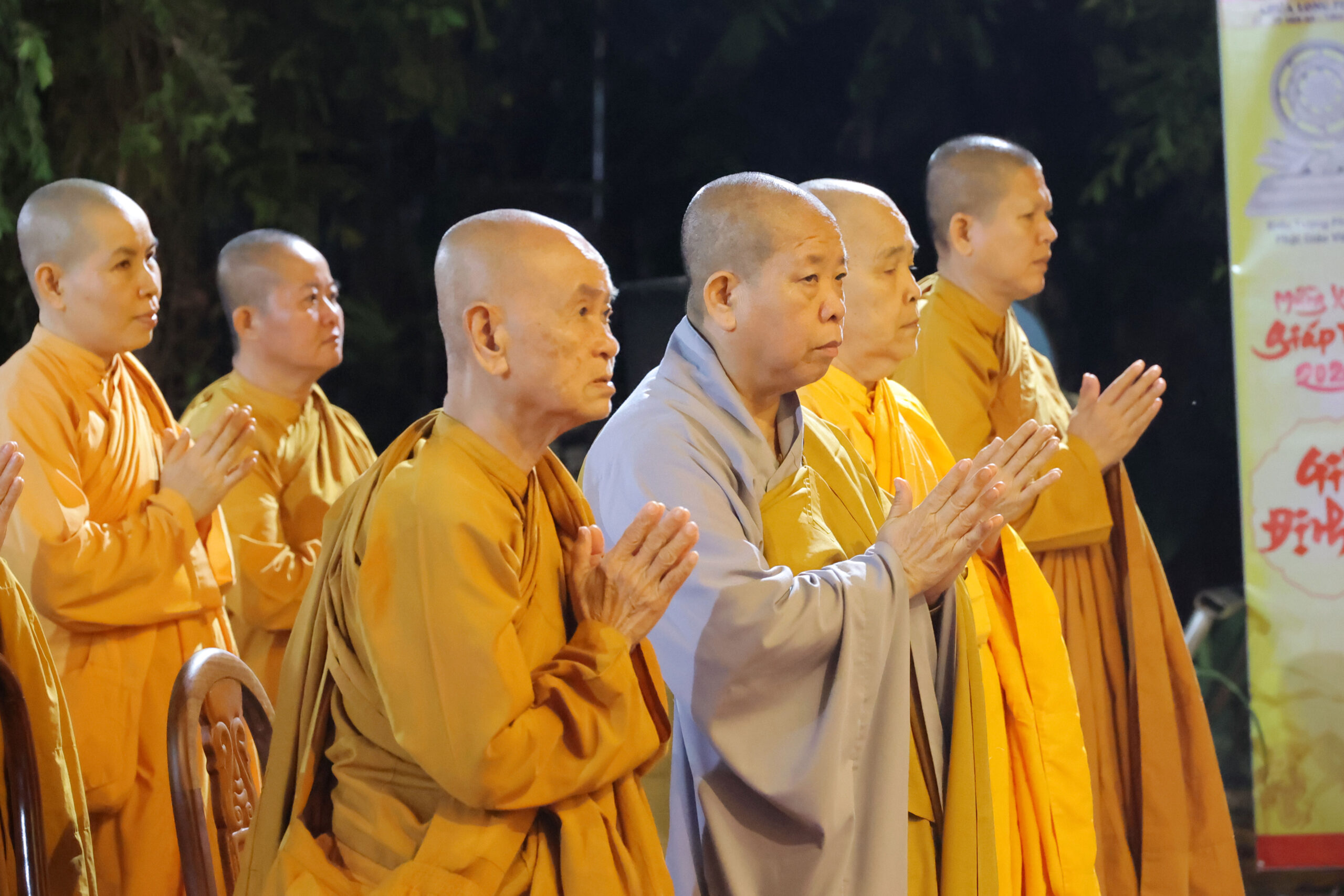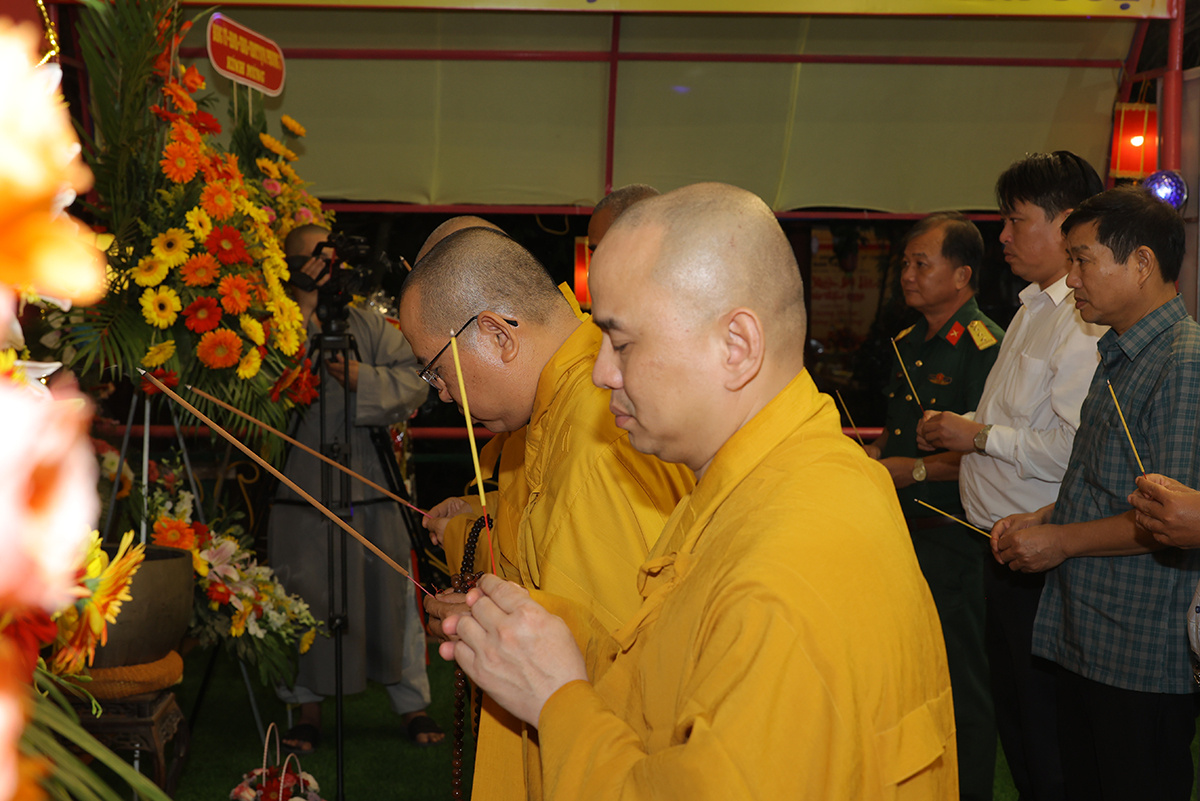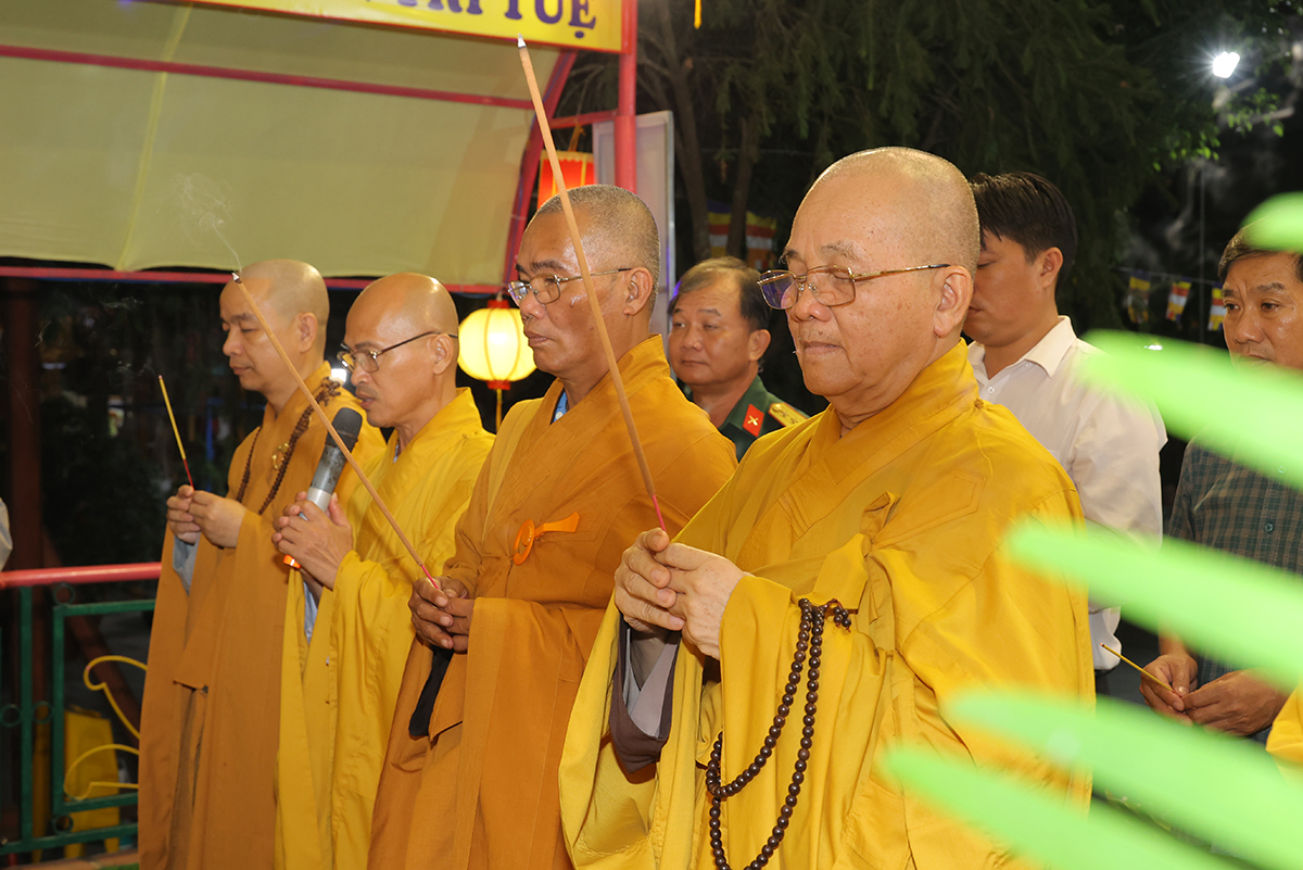 Trong không khí trang nghiêm, chư Tôn đức giáo phẩm đã dâng hương tưởng niệm lên đức Phật Bổn sư Thích Ca Mâu Ni và chư vị tổ sư, đồng cầu nguyện cho thế giới hoà bình, nhân dân an lạc.