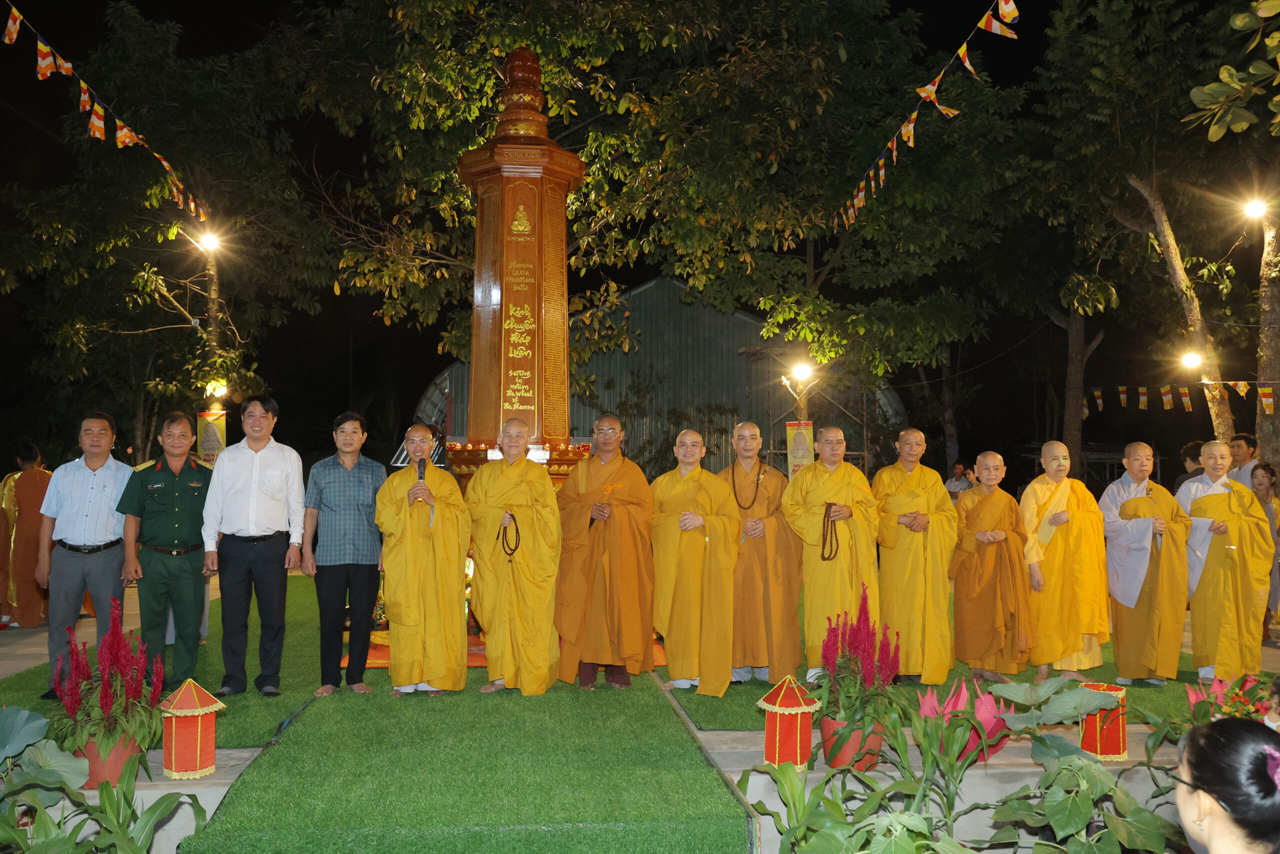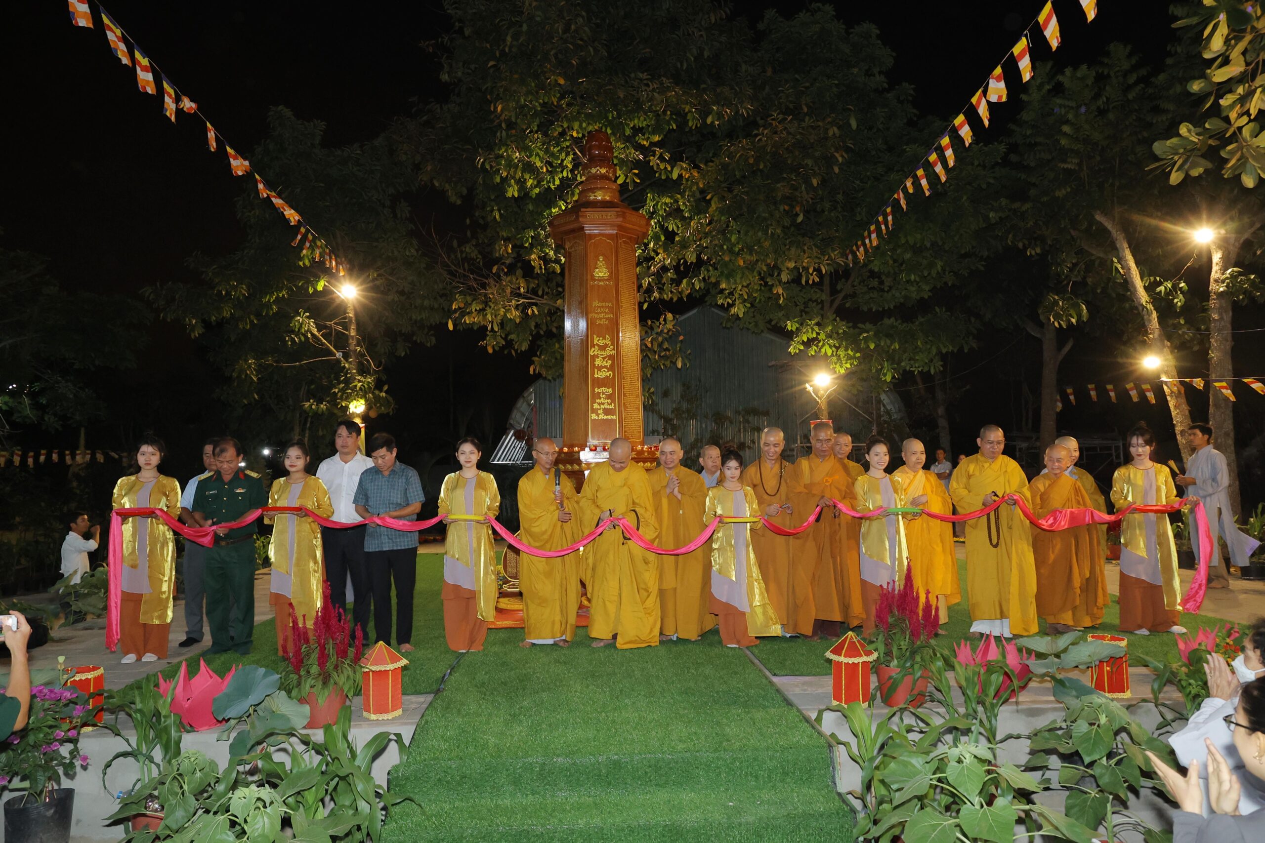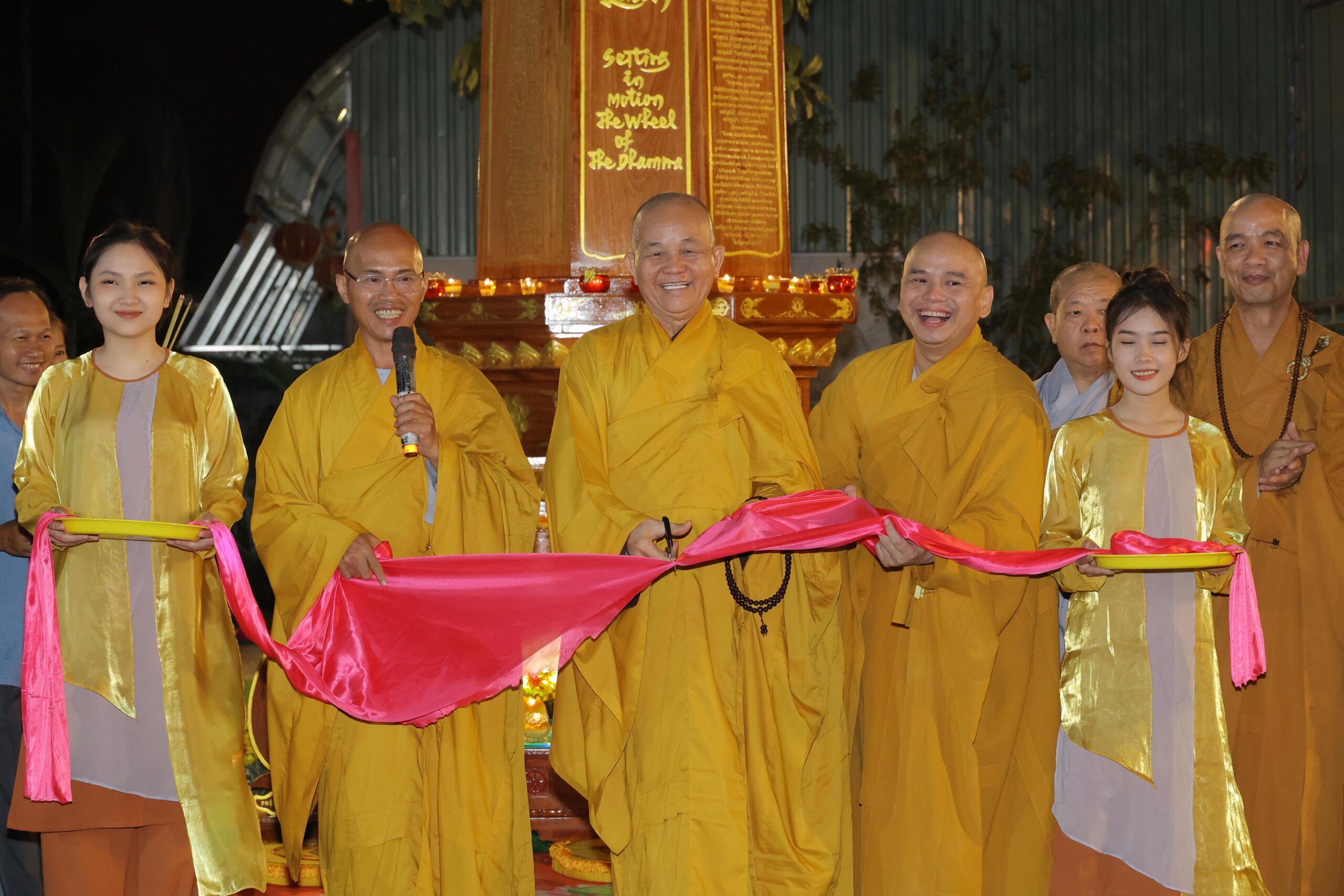 Tại buổi lễ, chư Tôn đức đã cắt băng khánh thành trụ kinh Chuyển Pháp Luân điêu khắc bằng gỗ đầu tiên sau khi được Giáo hội Phật giáo Việt Nam chuẩn y.